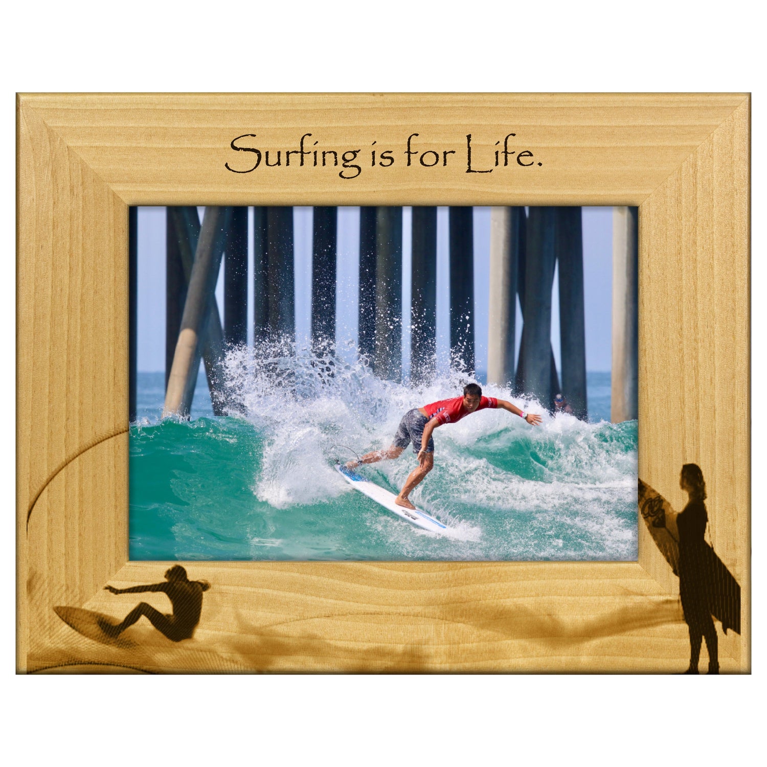 Capture your favorite surfing memories with our Surfing is for Life engraved wooden picture frame. This frame adds a touch of coastal charm to any space while celebrating your passion for the waves.