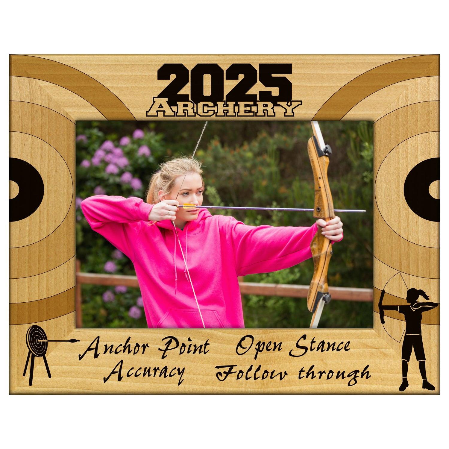 Showcase your passion for archery with our beautifully engraved wood picture frame, designed to highlight your favorite moments in style. This frame features intricate archery-themed engravings that add a unique touch to any decor.