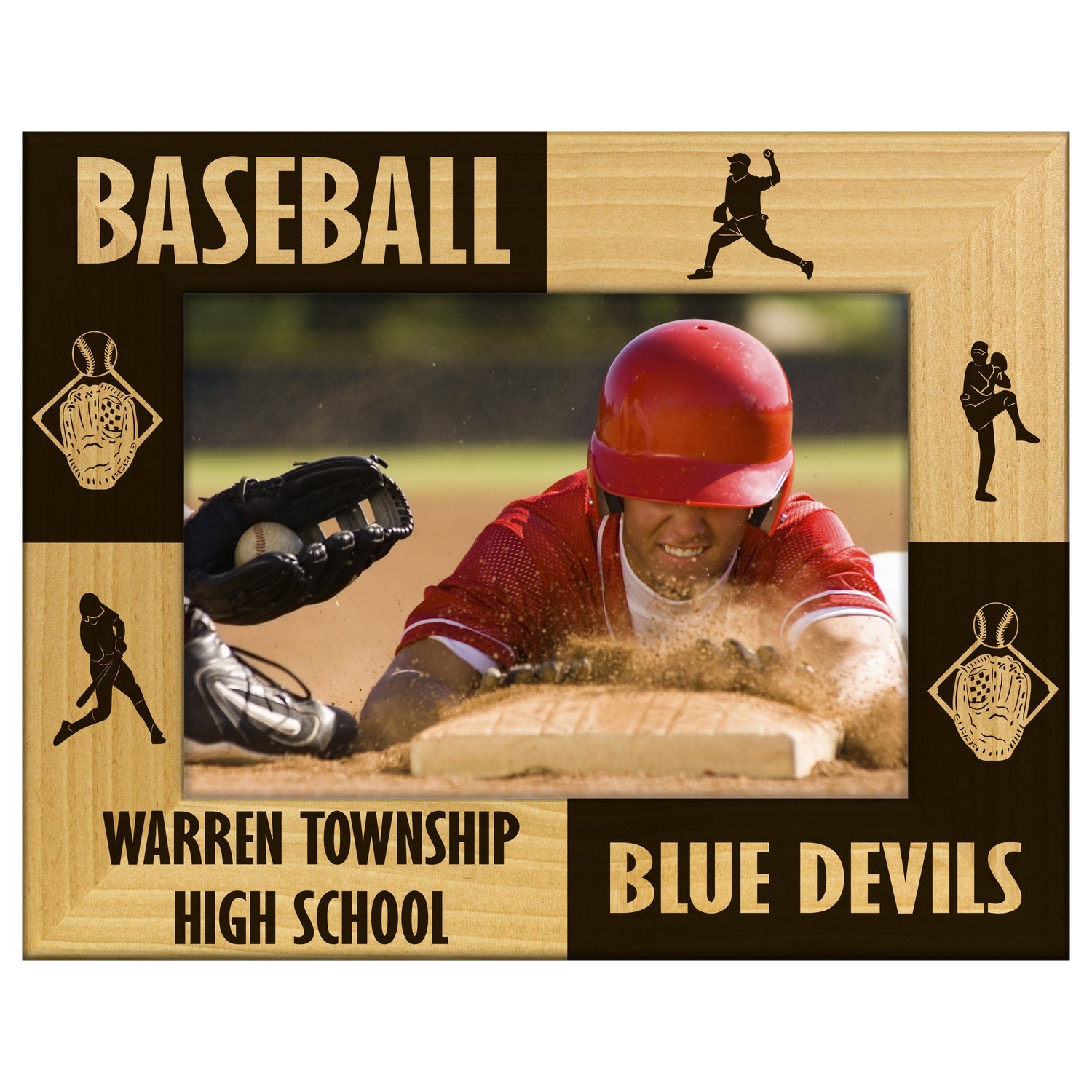 Capture your favorite baseball memories with our beautifully engraved wood picture frame. This frame features a unique baseball design that adds a sporty touch to any room. Perfect for displaying team photos, action shots, or cherished moments from the field.