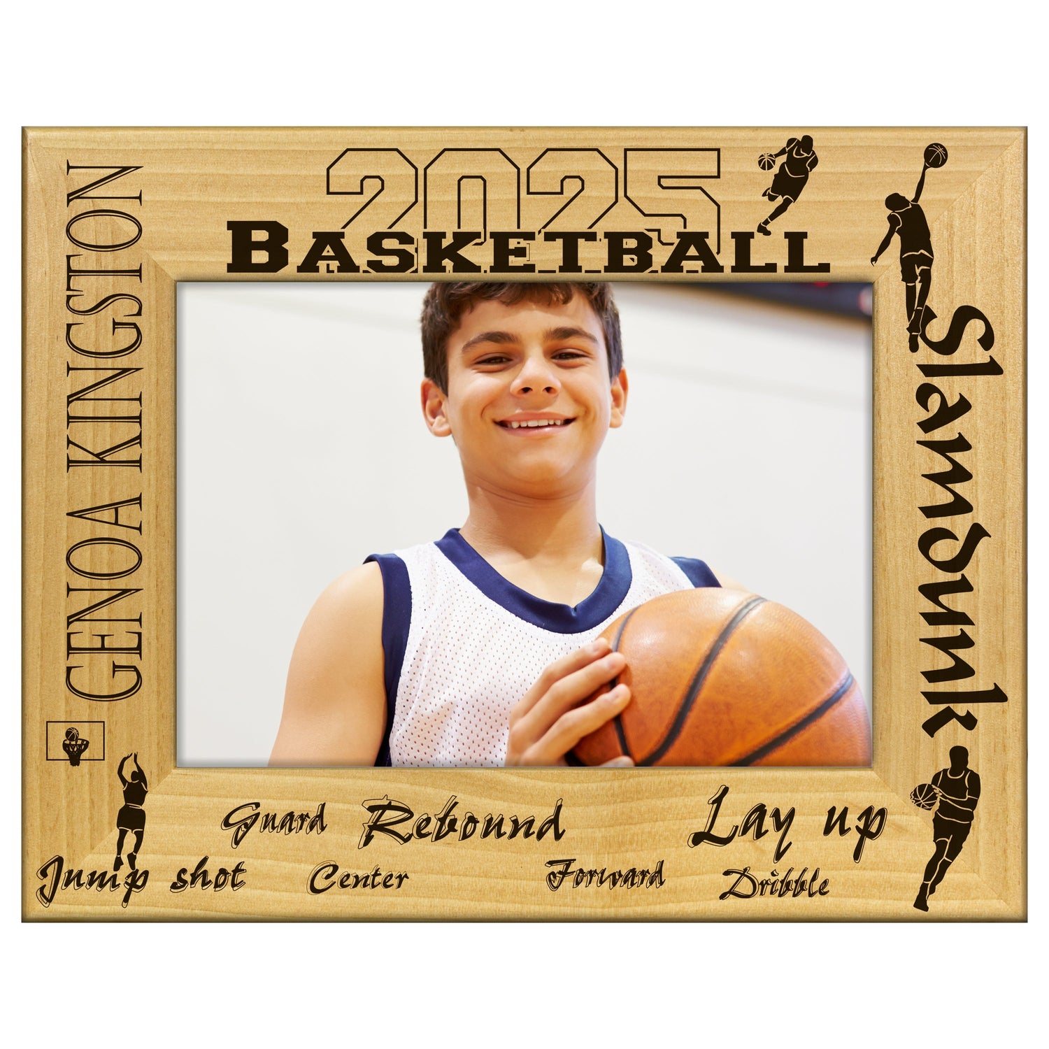 Showcase your love for the game with our basketball engraved wood frame. This stylish frame features a unique basketball design, perfect for displaying your favorite photos or memorabilia.