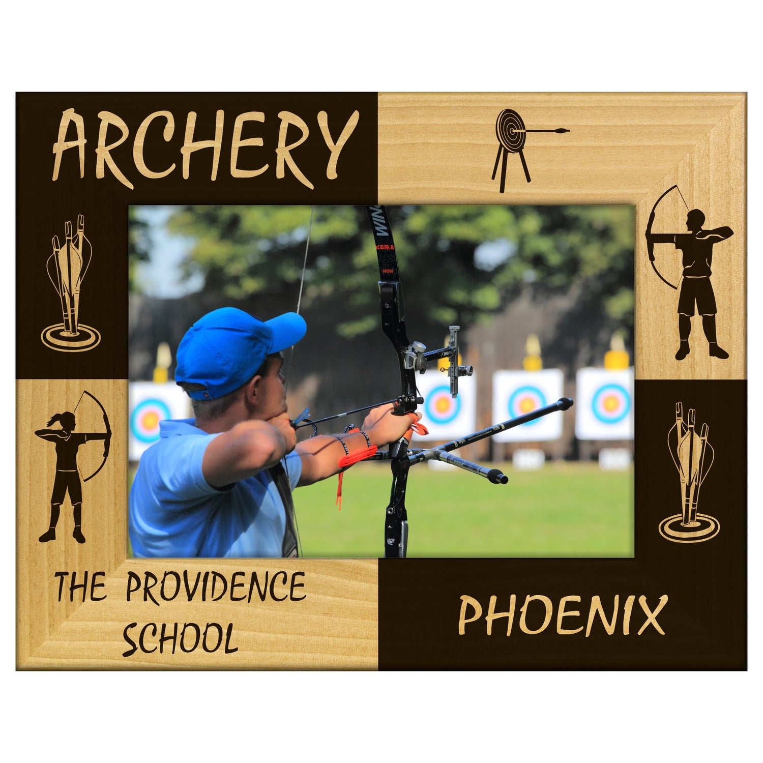 Capture your favorite archery moments with our beautifully engraved wood picture frame. This frame features engraved archery designs that add a unique touch to your decor. Perfect for showcasing cherished photos from competitions, practice sessions, or memorable outings, making it a great gift for archery enthusiasts.