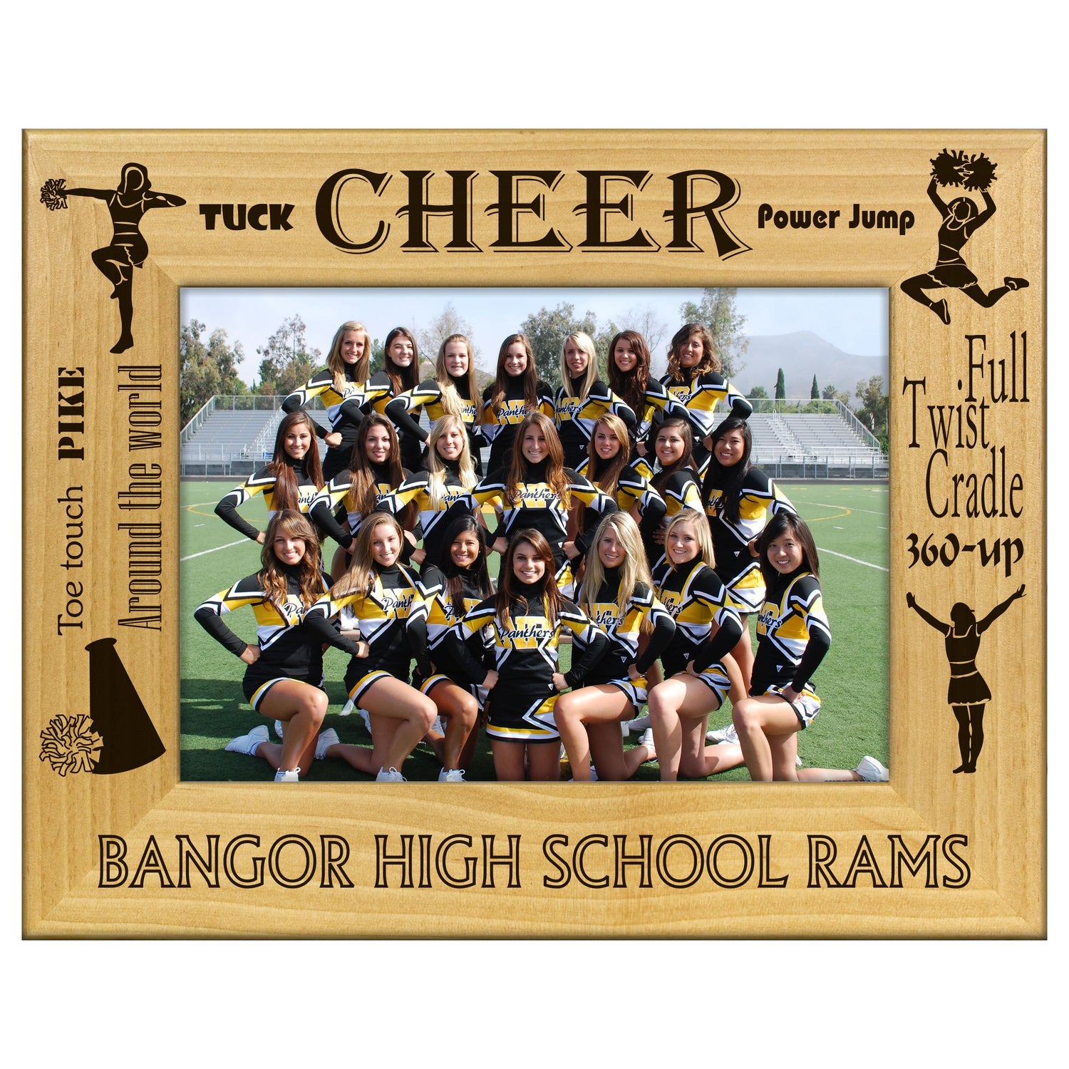 Capture the spirit of cheerleading with our engraved wood picture frame, designed to showcase your favorite team moments. This stylish frame features uplifting cheer phrases that inspire and motivate, making it the perfect gift for cheerleaders, coaches, or fans.