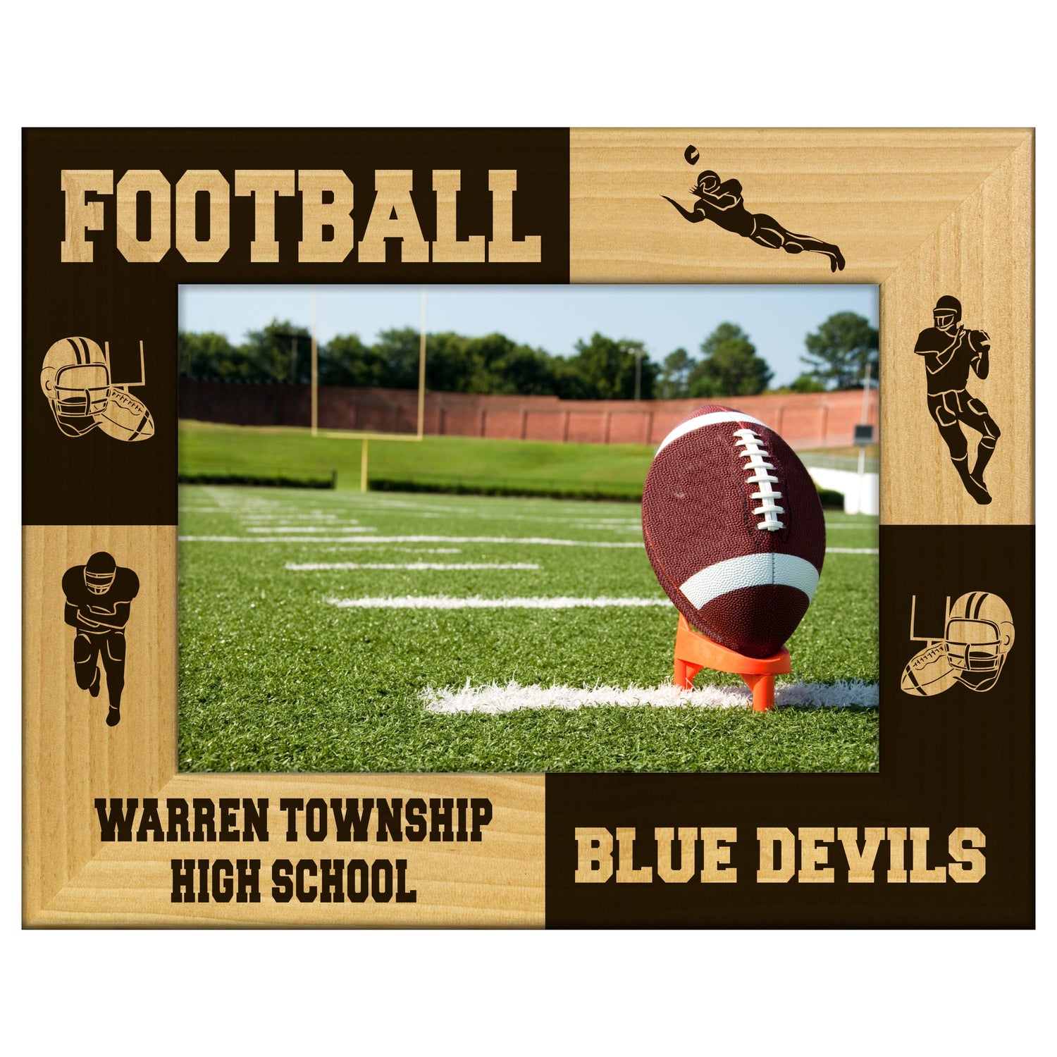 Capture your favorite football memories with our reverse engraved wood picture frame. This unique frame features a stylish design that showcases your cherished photos while adding a personal touch with its elegant engraving. Perfect for displaying team spirit or gifting to a fellow football fan.