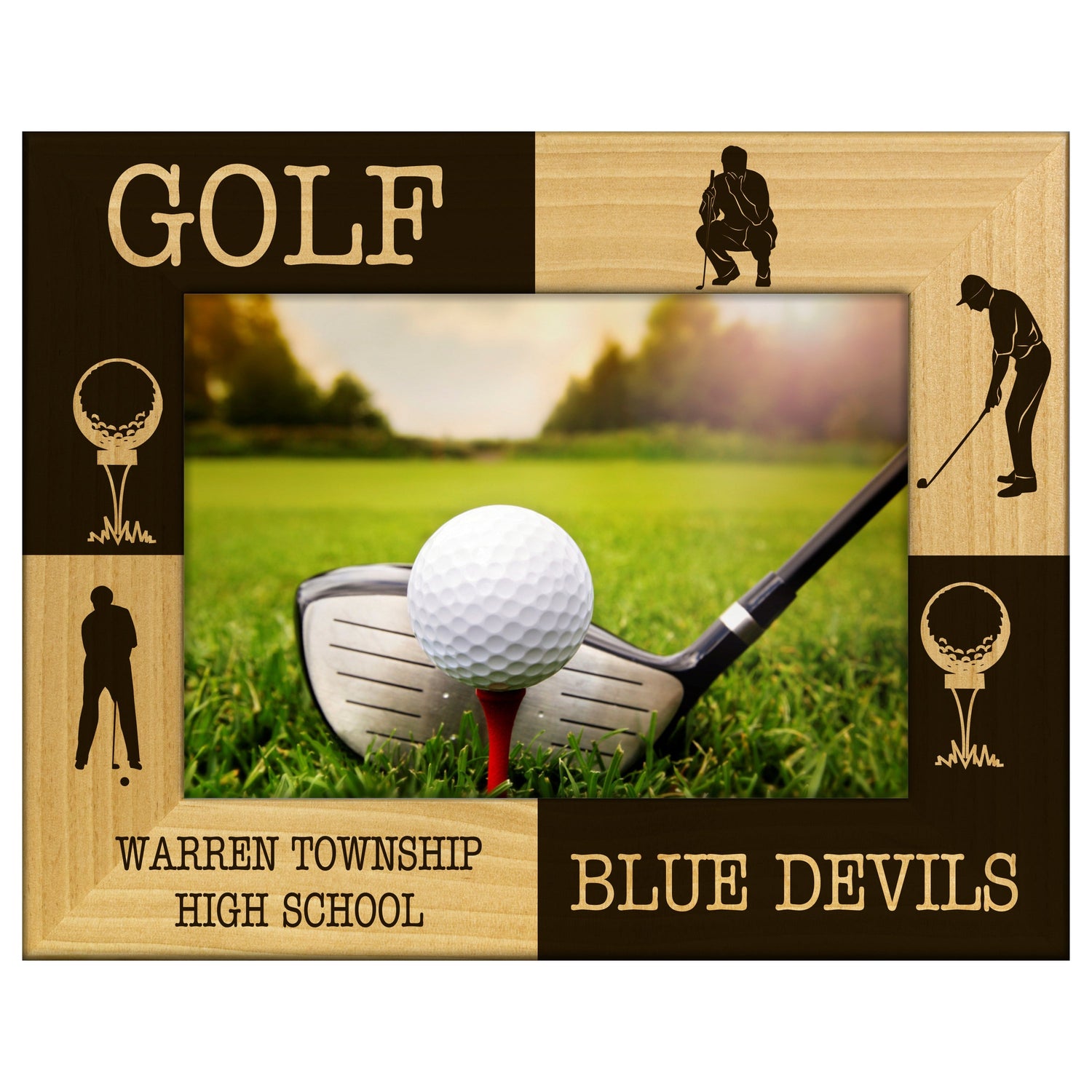 Elevate your golf memories with our stunning reverse engraved wood picture frame. This frame features a unique engraving that beautifully showcases your favorite golf moments.