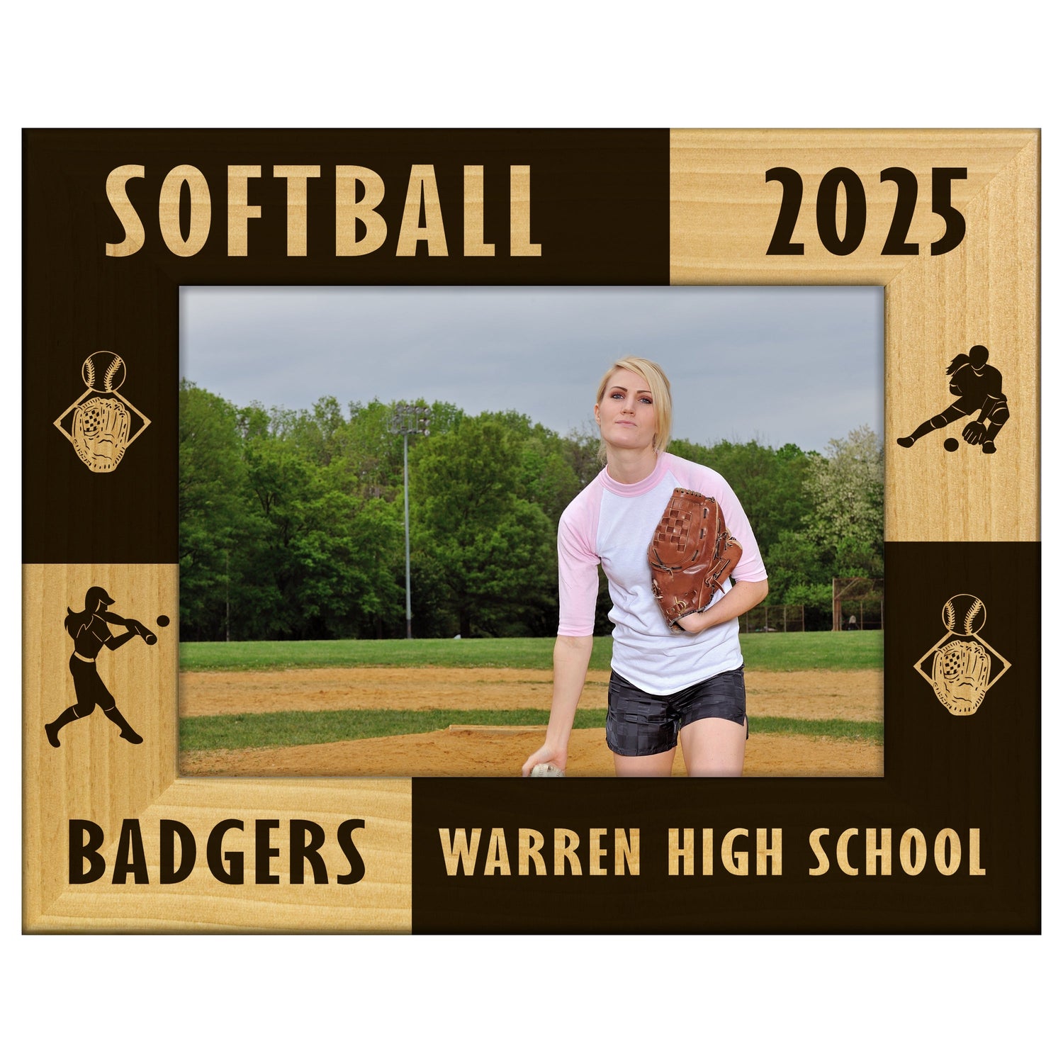 Capture your favorite softball memories with our beautifully engraved wooden picture frame. This frame features a unique softball design that adds a personal touch to your cherished photos. Perfect for showcasing team photos, action shots, or special moments, it makes a great gift for players, coaches, or fans alike.