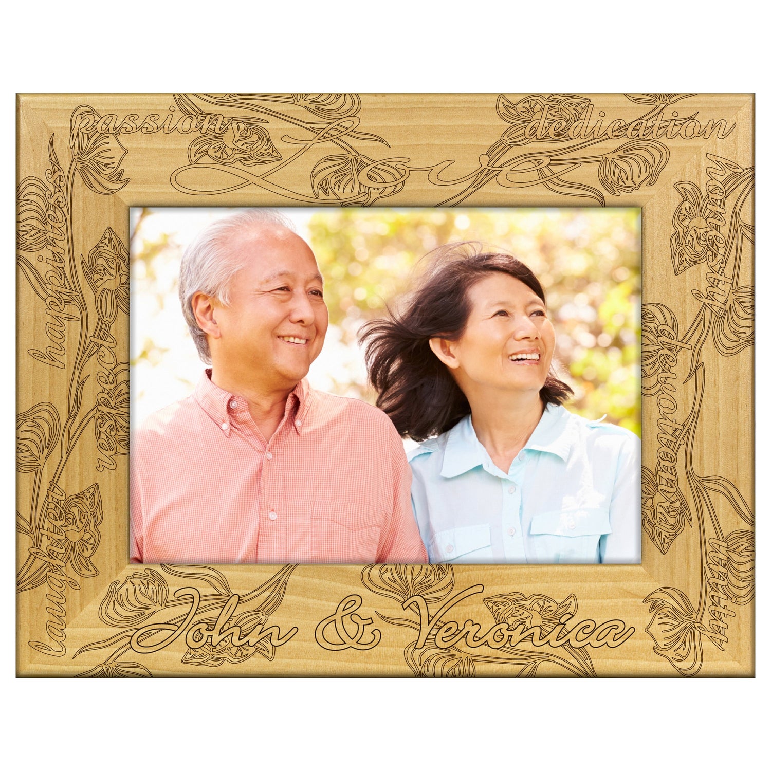 Capture your most cherished moments with our beautifully engraved wooden picture frame, featuring the heartfelt words Love, Passion, and Dedication. This frame is not just a home for your photos; it's a statement piece that adds warmth and character to any space.