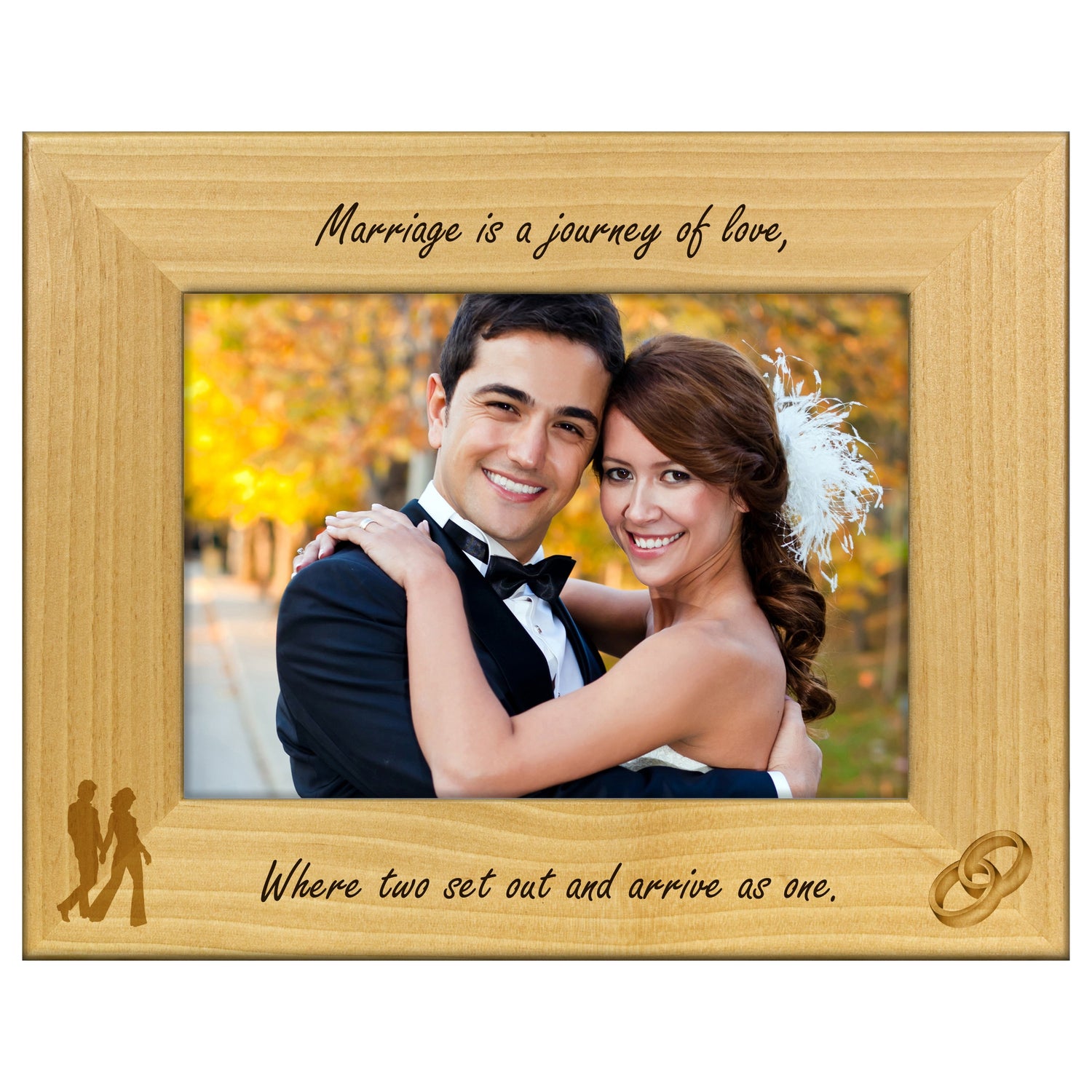 Celebrate the beautiful journey of marriage with our exquisite engraved wooden frame. This frame features a heartfelt design that captures the essence of love and commitment. Perfect for displaying your favorite wedding photo or a cherished moment.