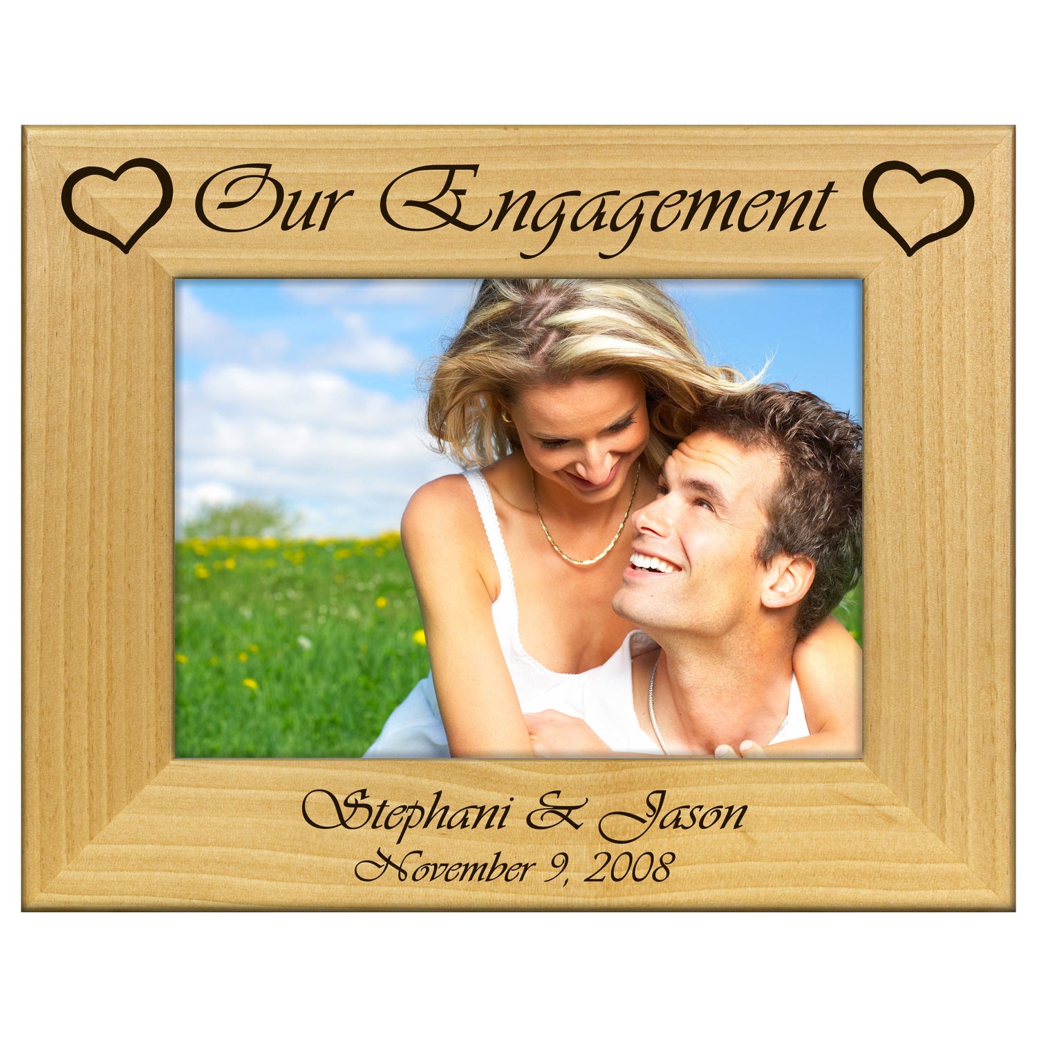 Celebrate your love story with our Engagement Engraved Wooden Picture Frame, a perfect blend of rustic charm and personal touch. This frame features a beautifully engraved design that captures the essence of your special moment.