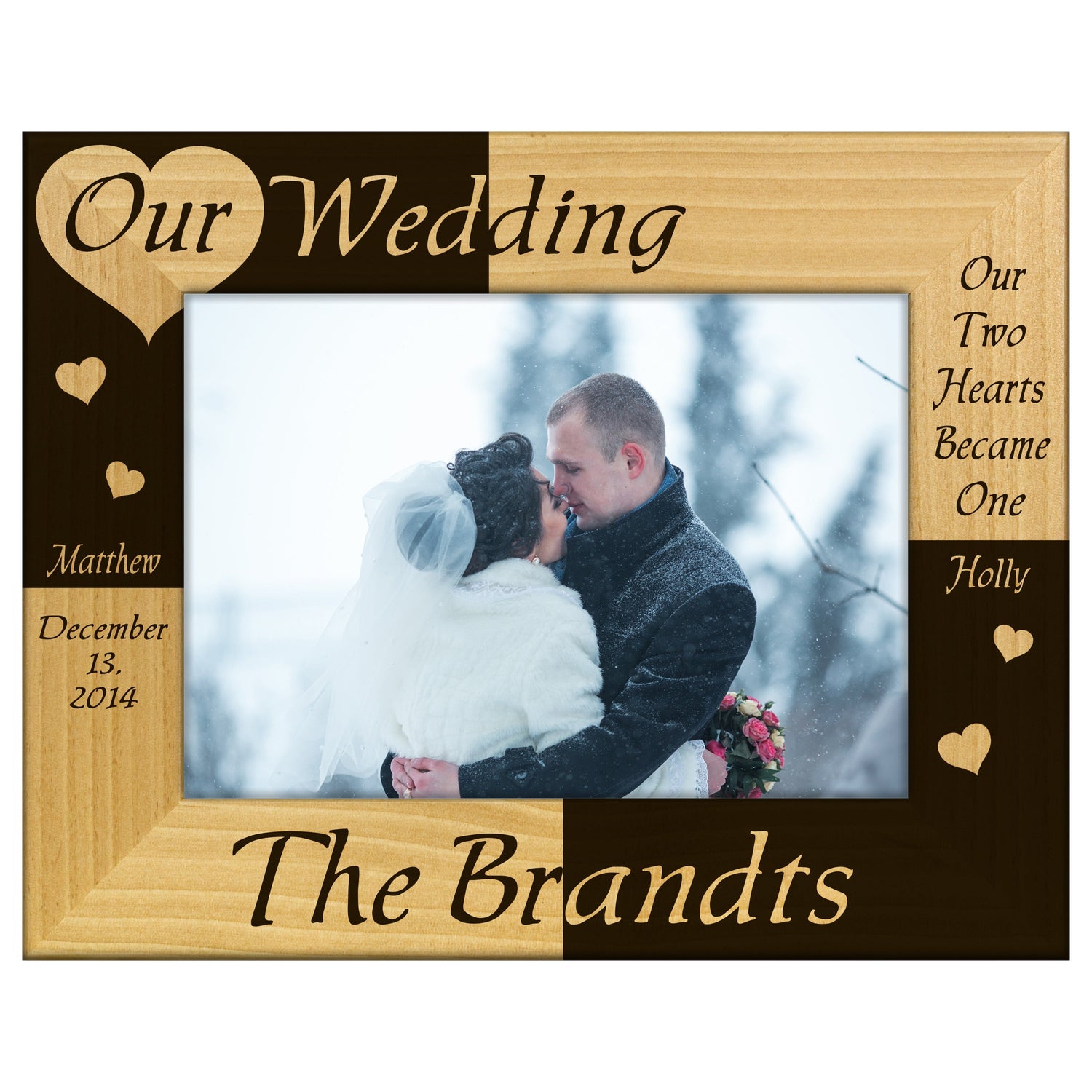 Celebrate your special day with our wedding engraved wooden picture frame, a perfect keepsake to cherish your most treasured memories. This frame features a beautiful engraving that adds a personal touch, making it an ideal gift for newlyweds or a stunning addition to your home decor.