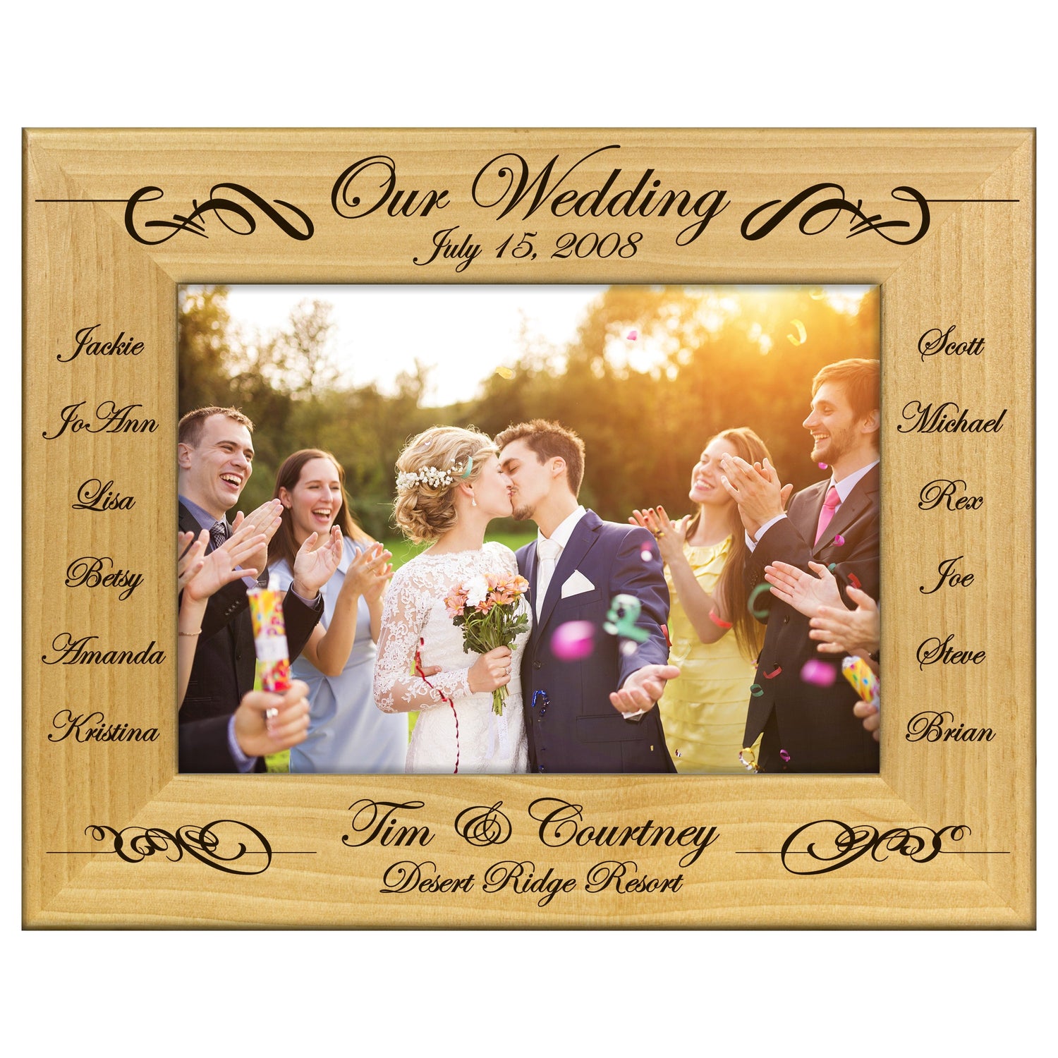 Celebrate your special day with our wedding party engraved wooden picture frame, a perfect keepsake for capturing those unforgettable moments. This frame can be personalized with names and a date, making it a unique addition to your home decor or a thoughtful gift for your wedding party.