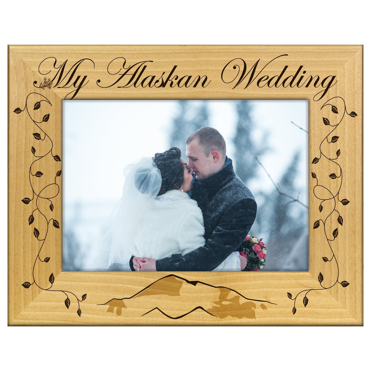 Capture the magic of your special day with the My Alaskan Wedding engraved wooden picture frame. This frame features a beautiful engraving that adds a personal touch to your cherished memories.
