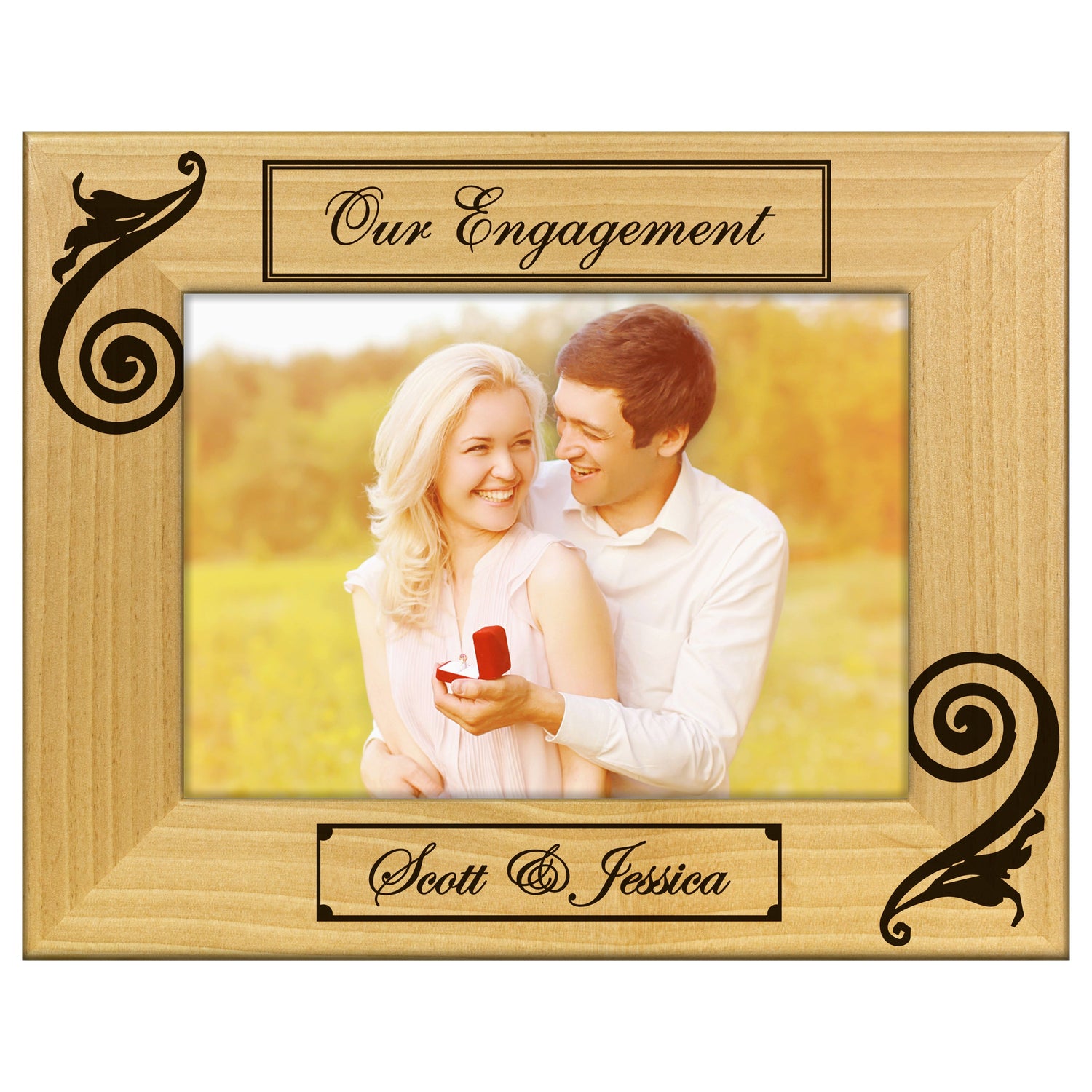 Capture your love story with the Regal Engagement Engraved Wooden Picture Frame, a perfect blend of elegance and sentiment. This frame features a beautifully engraved design that adds a personal touch to your cherished memories.