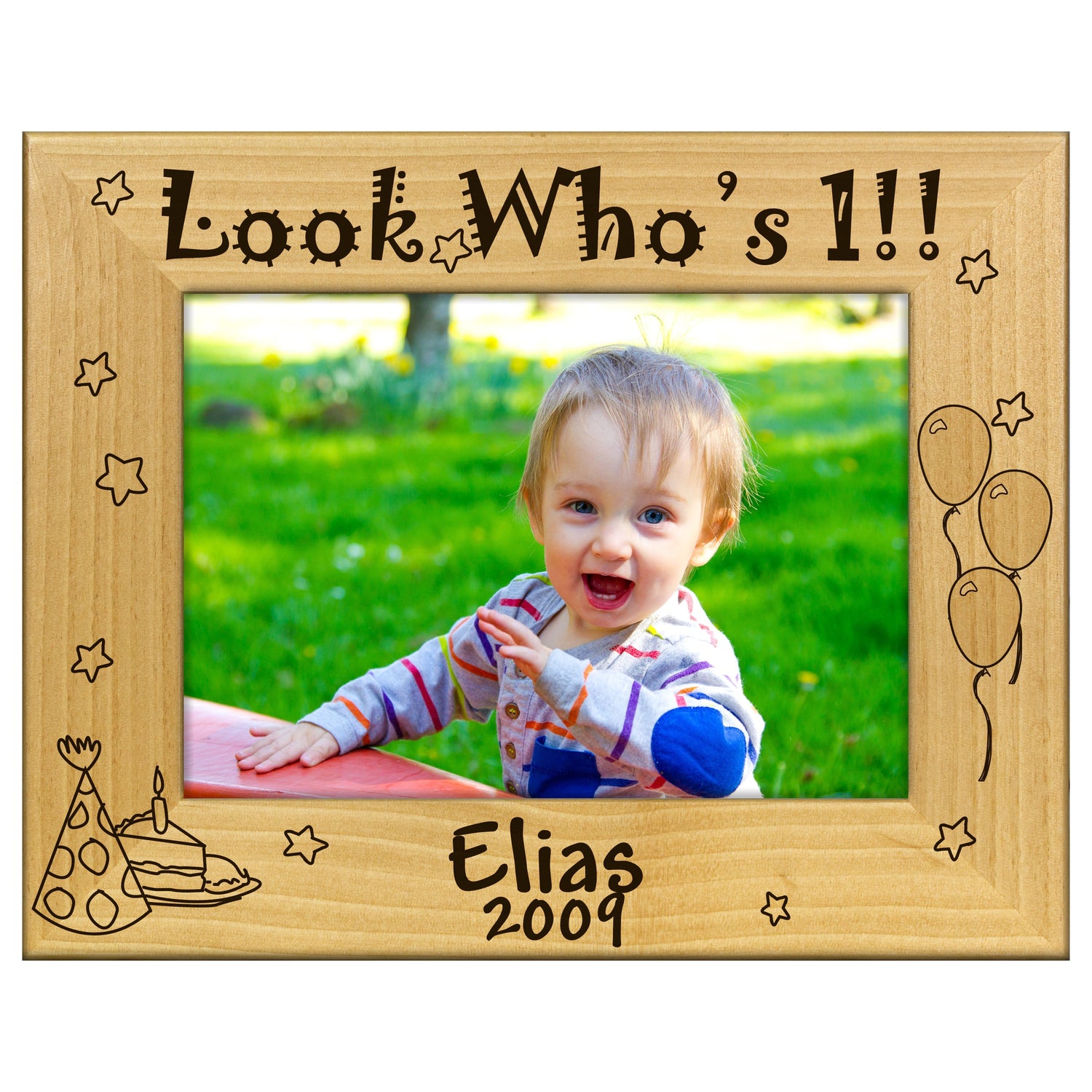 Celebrate special moments with our Look Who's One engraved wooden picture frame. This charming frame adds a personal touch to your child's first birthday memories.