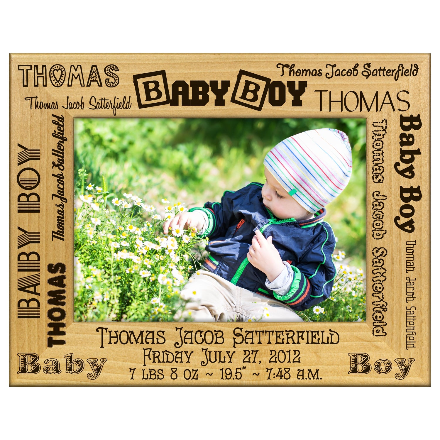 Capture your little one's precious moments with our fun baby boy engraved wooden picture frame. This charming frame features playful designs that celebrate your baby boy's adventures.