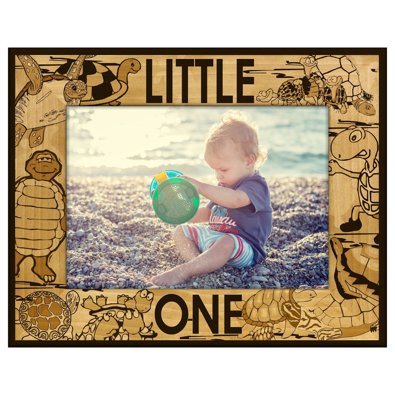 Capture your cherished memories with the Little One Turtle engraved wooden picture frame. This adorable frame features a charming turtle design, making it a perfect addition to any nursery or child's room.