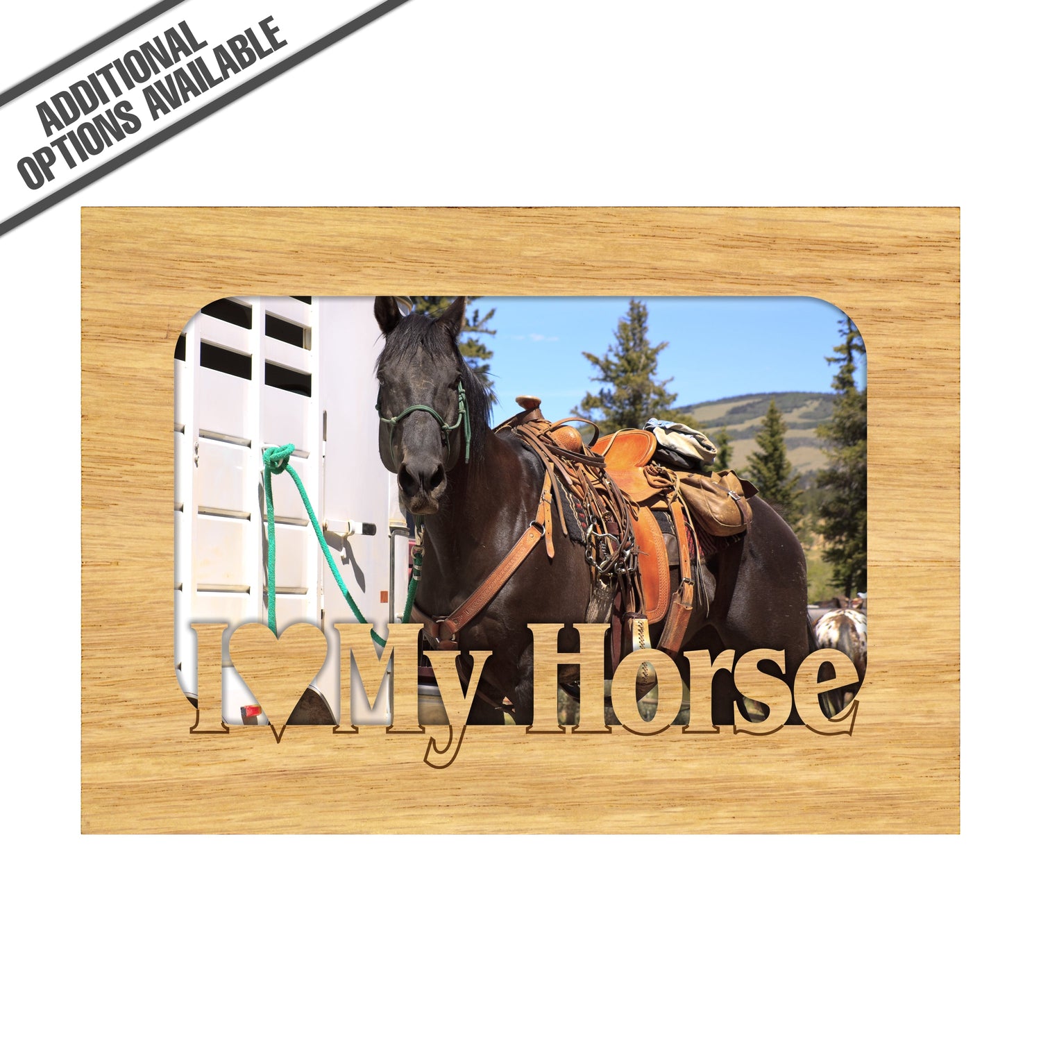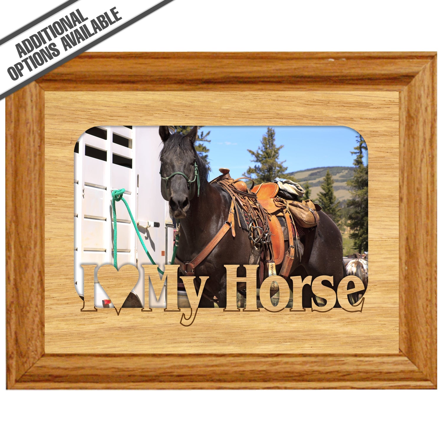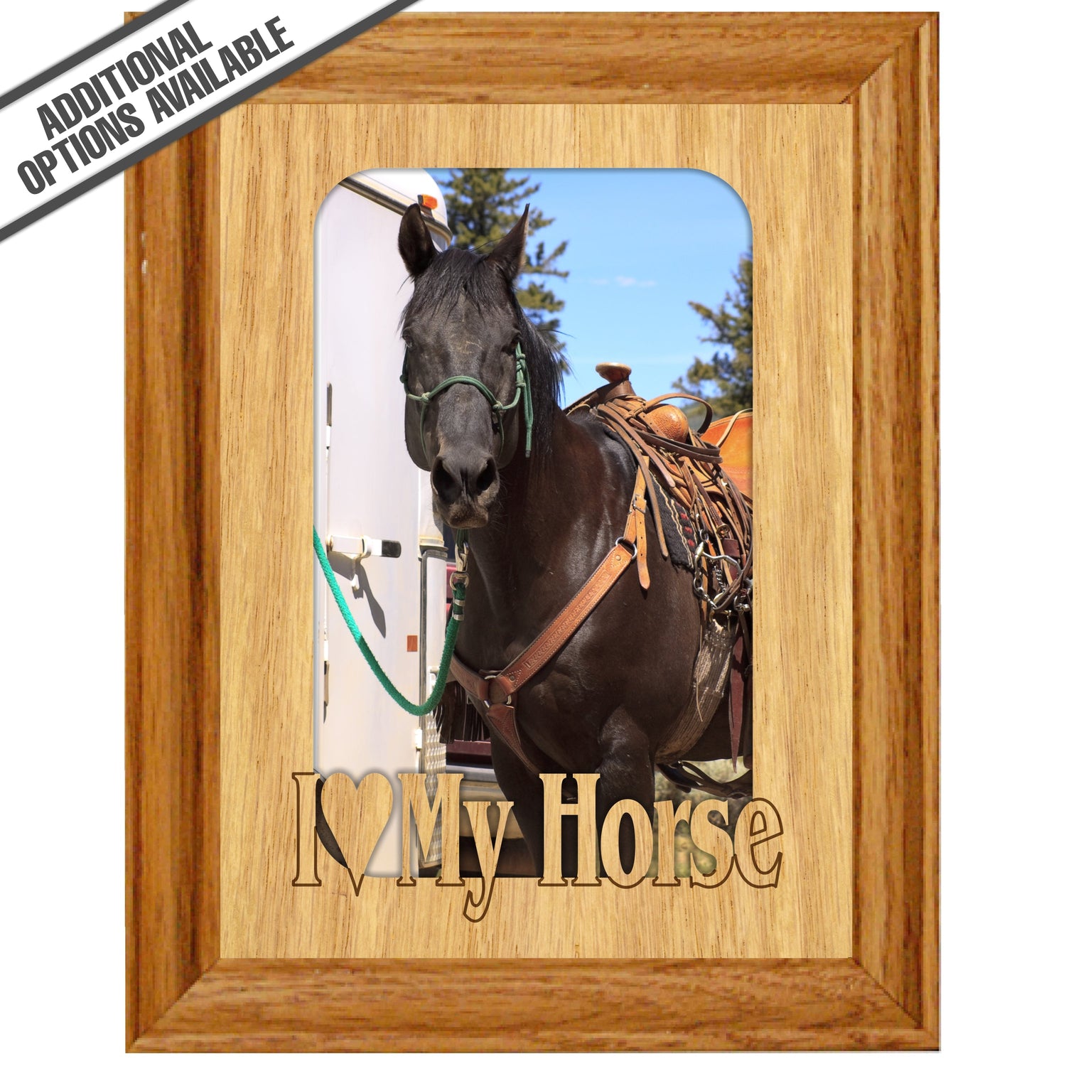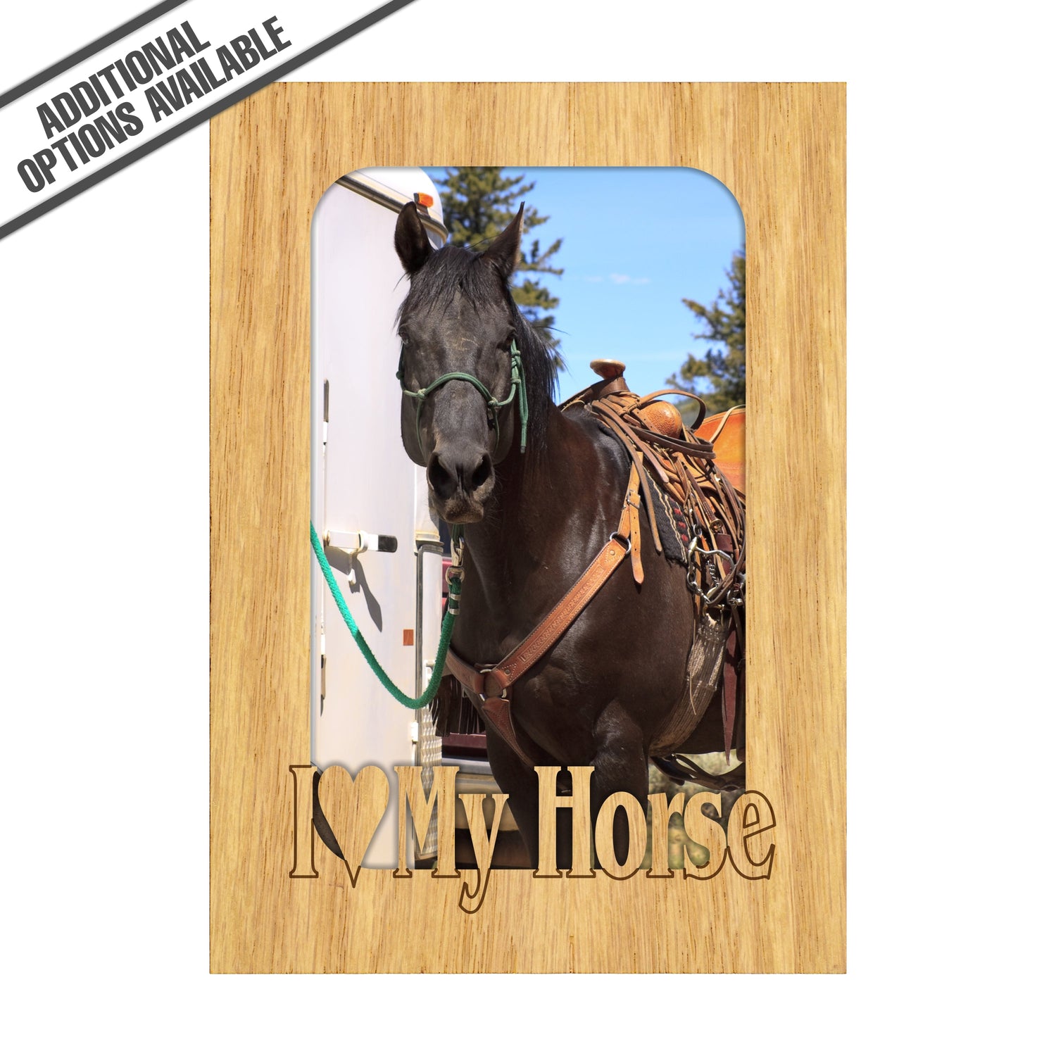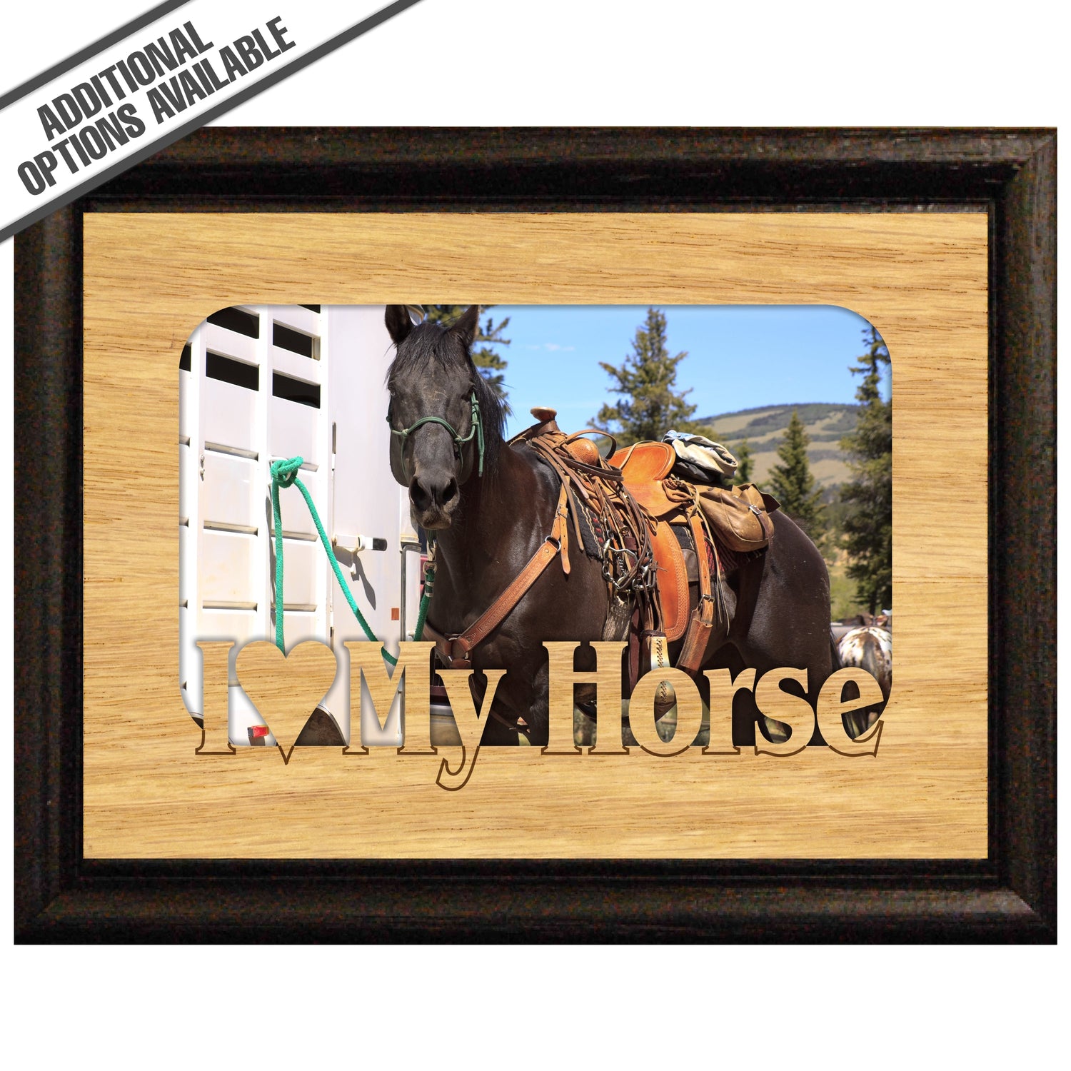 Celebrate your love for your equine companion with our "I Love My Horse" wooden frame. This charming frame is perfect for showcasing your favorite horse photos, adding a personal touch to your home or office. Crafted from high-quality wood, it features a rustic design that complements any decor while expressing your passion for horses. Gift it to a fellow horse lover or treat yourself to a delightful way to cherish those unforgettable moments with your beloved steed. Our FrameWorks magnetic mattes are the best way to accentuate any picture. Prefect for a fridge, locker, file cabinet and more, with a strong magnetic backing. Our FrameWorks material is lightweight making it a great souvenir to pack or mail.