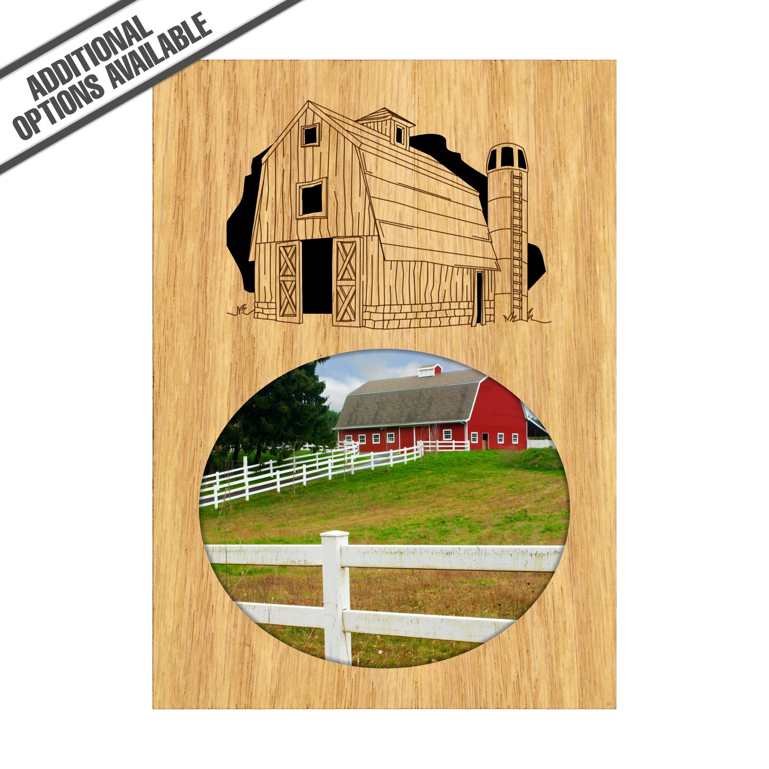 Elevate your home decor with our charming Farm Barn photo frame, featuring a beautifully crafted wooden frame that showcases an engraved image of a standard red barn. This delightful piece captures the essence of countryside living, making it a perfect addition to any room. Ideal for displaying cherished memories or artwork, its warm tones and classic design will complement both traditional and modern interiors. Bring a touch of rural charm into your space and celebrate the beauty of farm life with this exquisite frame. Our FrameWorks magnetic mattes are the best way to accentuate any picture. Prefect for a fridge, locker, file cabinet and more, with a strong magnetic backing. Our FrameWorks material is lightweight making it a great souvenir to pack or mail.