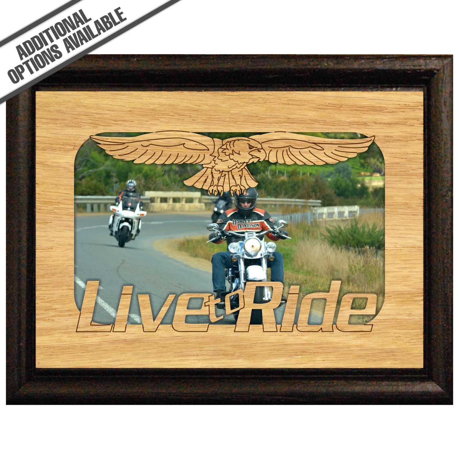 Capture the spirit of adventure with our Live to Ride picture frame, designed specifically for motorcycle enthusiasts! This beautifully crafted wooden frame can showcase your stunning image of your motorcycles adventures, making it the perfect addition to your home or office. Celebrate your passion for the open road while displaying your favorite memories in style. Whether as a gift for a fellow rider or a treat for yourself, this frame is a must-have for anyone who lives life in the fast lane! Our FrameWorks magnetic mattes are the best way to accentuate any picture. Prefect for a fridge, locker, file cabinet and more, with a strong magnetic backing. Our FrameWorks material is lightweight making it a great souvenir to pack or mail.