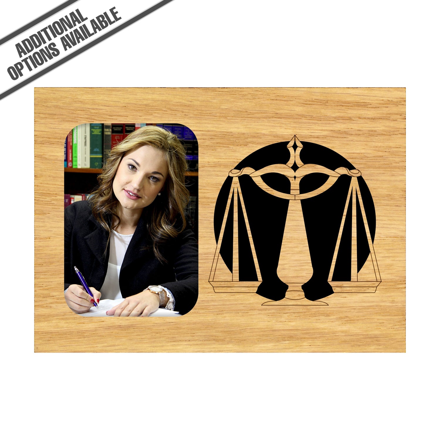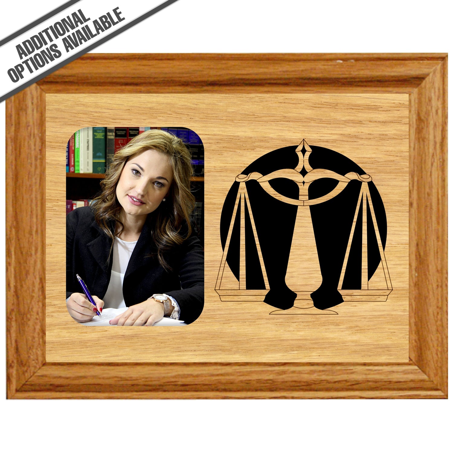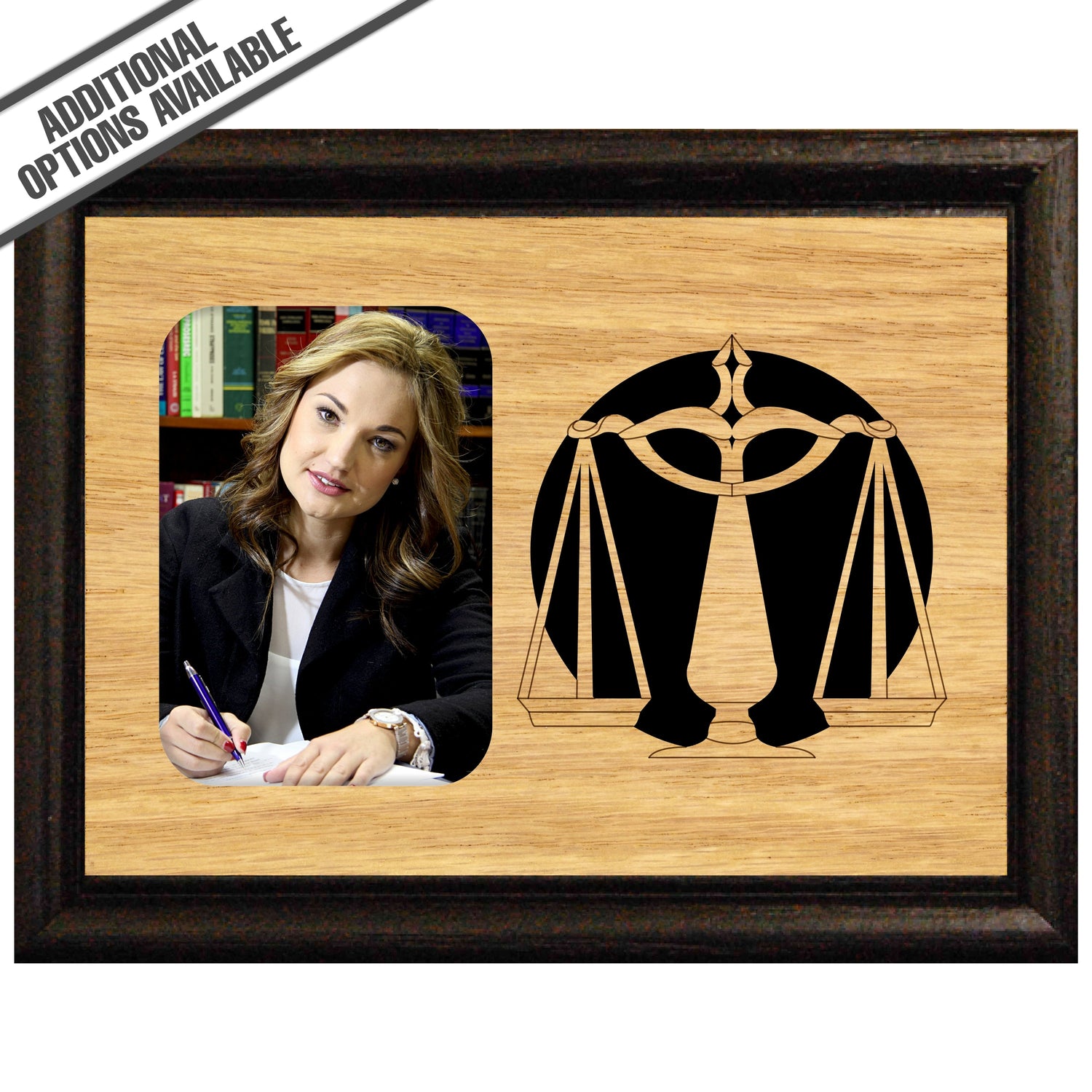 Celebrate the achievements of the legal professional in your life with our elegant wooden frame, featuring an engraved image of the Scales of Justice. This sophisticated gift frame is perfect for lawyers and judges, showcasing their dedication and success in a stylish manner. Crafted from high-quality wood, it adds a touch of professionalism to any workspace or home office. Elevate their decor while honoring their commitment to justice with this timeless piece. Our FrameWorks magnetic mattes are the best way to accentuate any picture. Prefect for a fridge, locker, file cabinet and more, with a strong magnetic backing. Our FrameWorks material is lightweight making it a great souvenir to pack or mail.