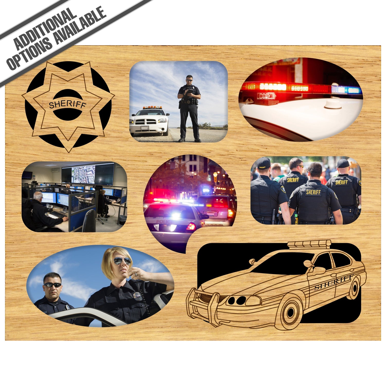 Celebrate the dedication and bravery of your favorite police officer with our exquisite Police Officer wooden frame. This frame features a beautifully engraved 7-pointed badge, making it a perfect gift for any law enforcement professional. Crafted from high-quality wood, Its durable construction ensures it will stand the test of time, while the elegant engraving adds a personal stylish tribute to the noble service of police officers. This frame is an ideal way to honor their commitment while adding a touch of elegance to their home or office decor. Our FrameWorks magnetic mattes are the best way to accentuate any picture. Prefect for a fridge, locker, file cabinet and more, with a strong magnetic backing. Our FrameWorks material is lightweight making it a great souvenir to pack or mail.