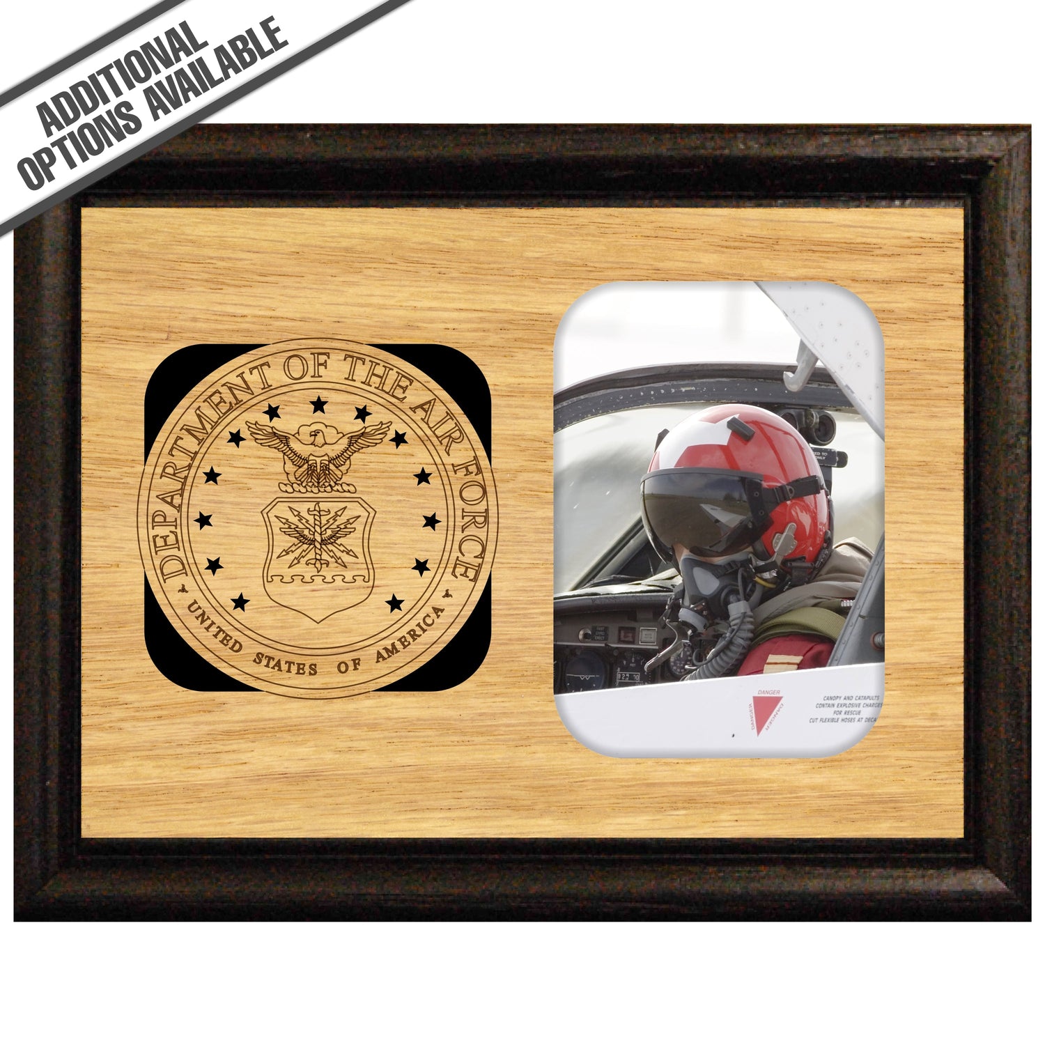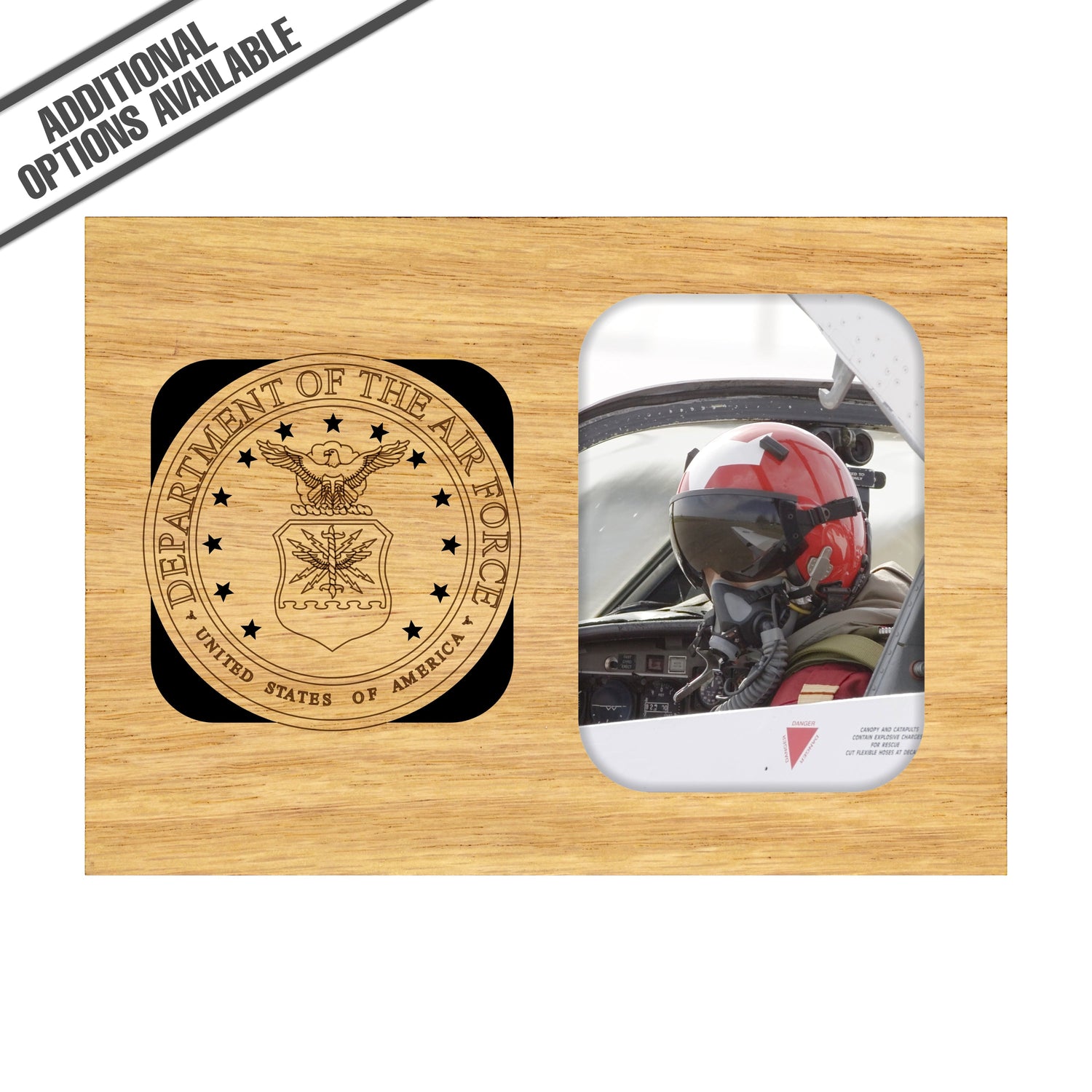 Celebrate your service and dedication with our wood frame featuring the US Air Force logo. Crafted from high-quality materials, this elegant frame not only showcases your achievements but also adds a touch of pride to your home or office decor. This frame is a unique keepsake that honors your commitment to the Air Force. Perfect for gifting or personal use, this frame is a timeless tribute to your military journey or that of a loved one. Our FrameWorks magnetic mattes are the best way to accentuate any picture. Prefect for a fridge, locker, file cabinet and more, with a strong magnetic backing. Our FrameWorks material is lightweight making it a great souvenir to pack or mail.