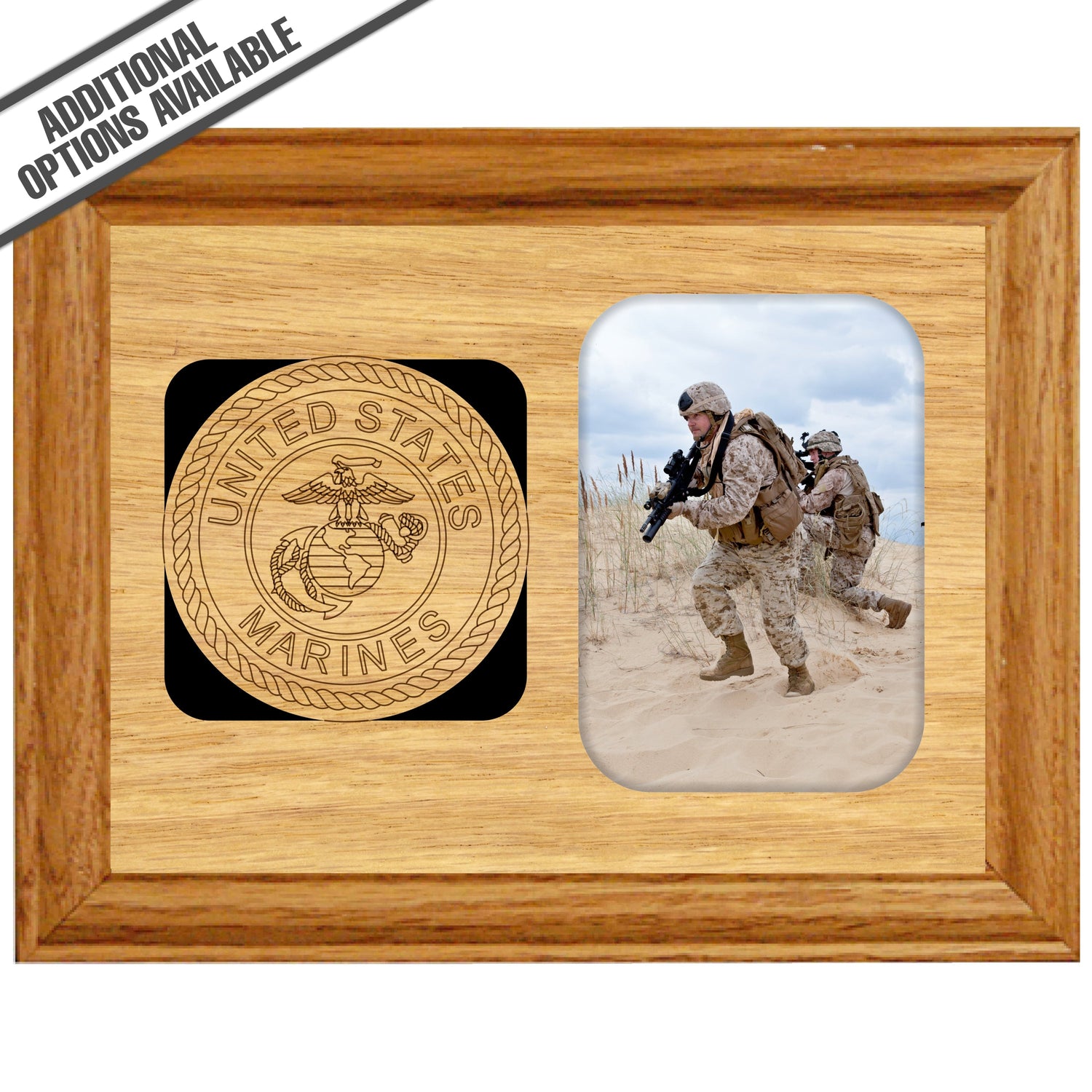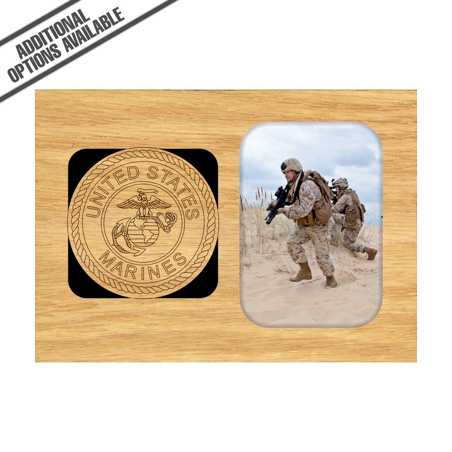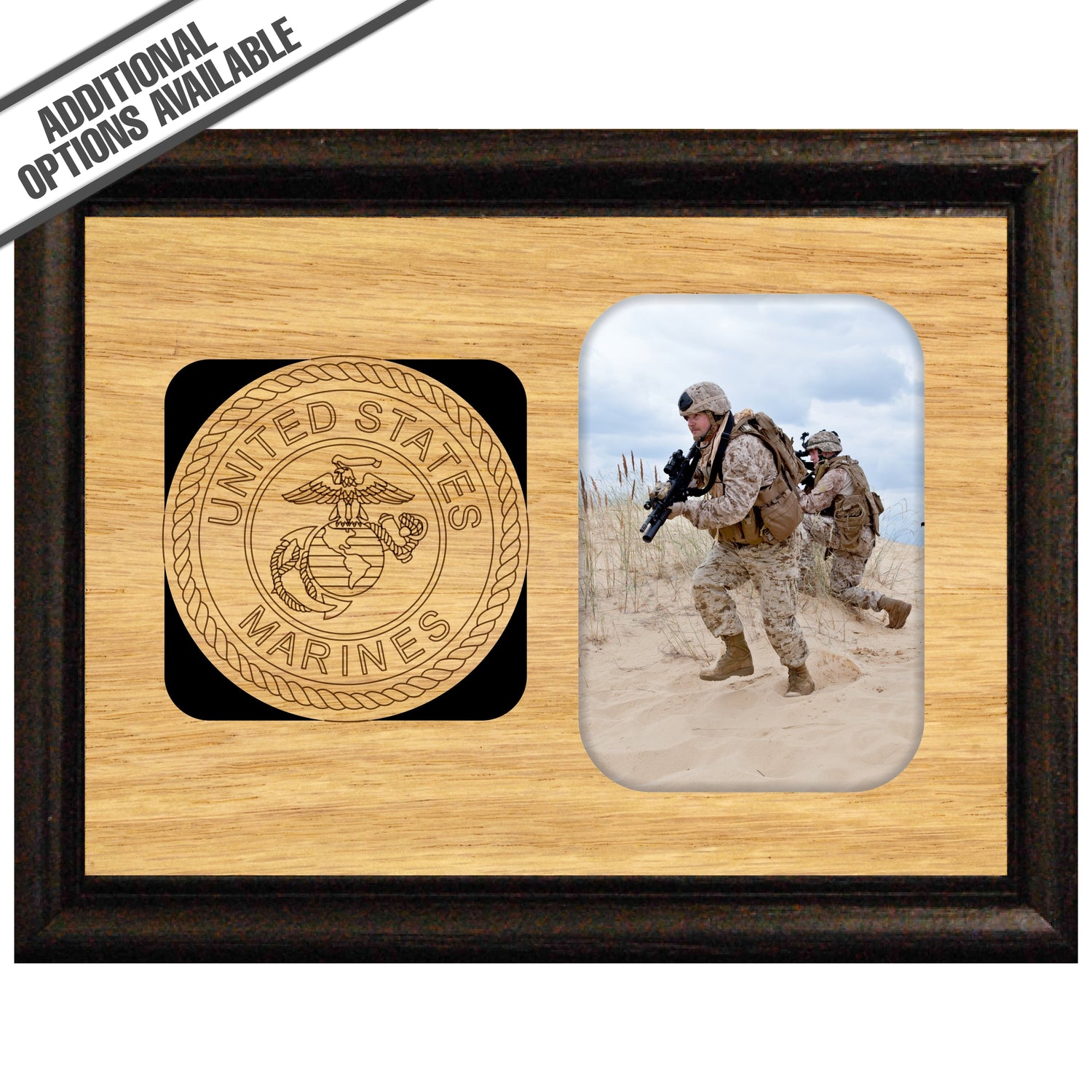 Showcase your pride and honor with our exquisite wooden frame featuring a distinguished engraved US Marines emblem. Crafted from high-quality wood, this frame not only provides a sturdy and elegant display for your cherished memories but also serves as a tribute to the bravery and dedication of the Marine Corps. Perfect for home or office decor, it makes an ideal gift for veterans, active-duty personnel, or anyone who appreciates the valor of our armed forces. Elevate your space with this timeless piece that embodies strength and patriotism. Our FrameWorks magnetic mattes are the best way to accentuate any picture. Prefect for a fridge, locker, file cabinet and more, with a strong magnetic backing. Our FrameWorks material is lightweight making it a great souvenir to pack or mail.