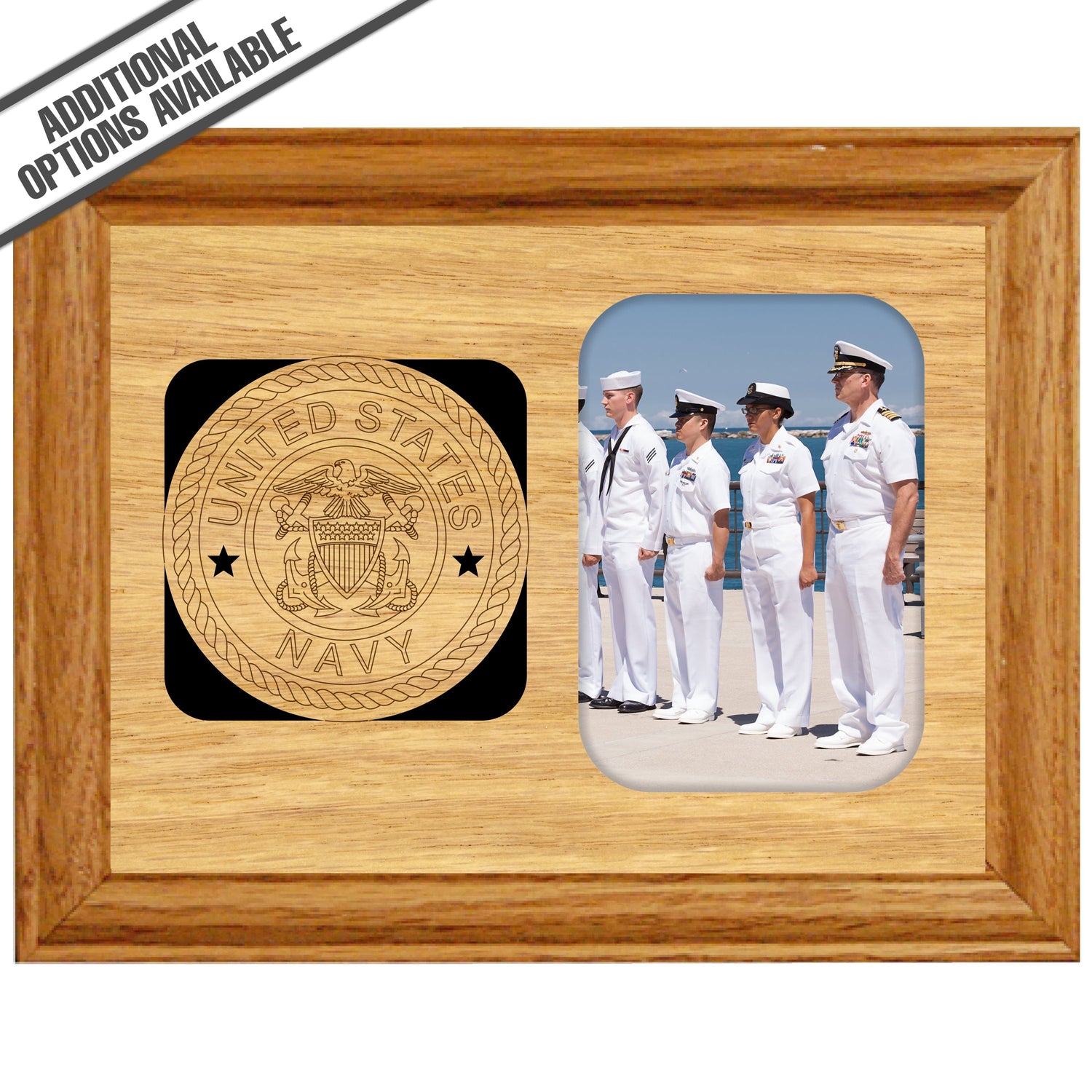 Celebrate the valor and dedication of the US Navy with our exquisite US Navy wooden frame, featuring an elegantly engraved Navy Badge. This distinguished frame is designed to showcase your cherished memories while honoring the spirit of service and sacrifice. Crafted with high-quality materials, it provides a sophisticated display for your favorite photos. Making it a perfect gift for veterans, active-duty personnel, or proud family members. Elevate your decor and pay tribute to the brave men and women of the Navy with this timeless piece. Our FrameWorks magnetic mattes are the best way to accentuate any picture. Prefect for a fridge, locker, file cabinet and more, with a strong magnetic backing. Our FrameWorks material is lightweight making it a great souvenir to pack or mail.
