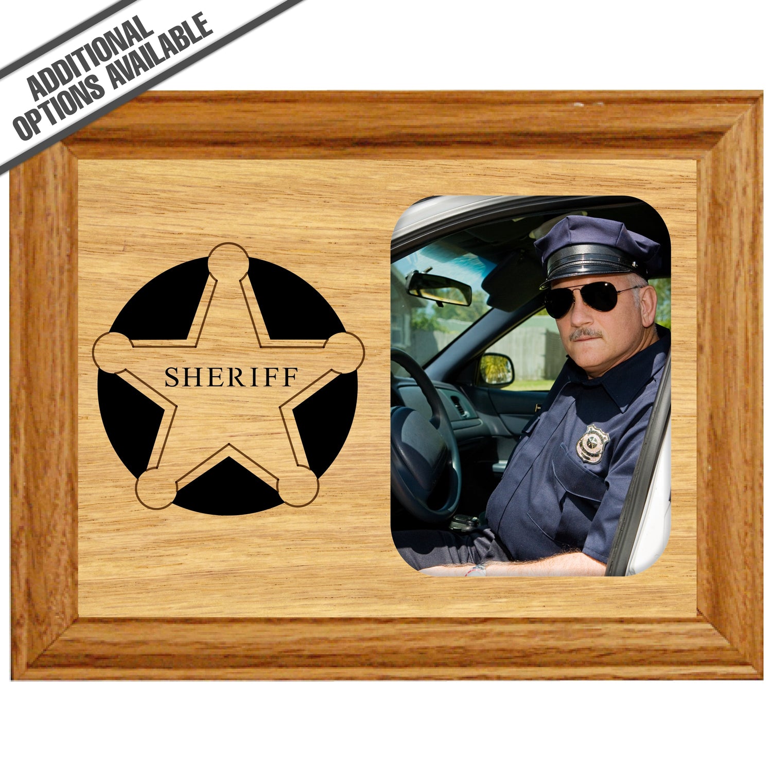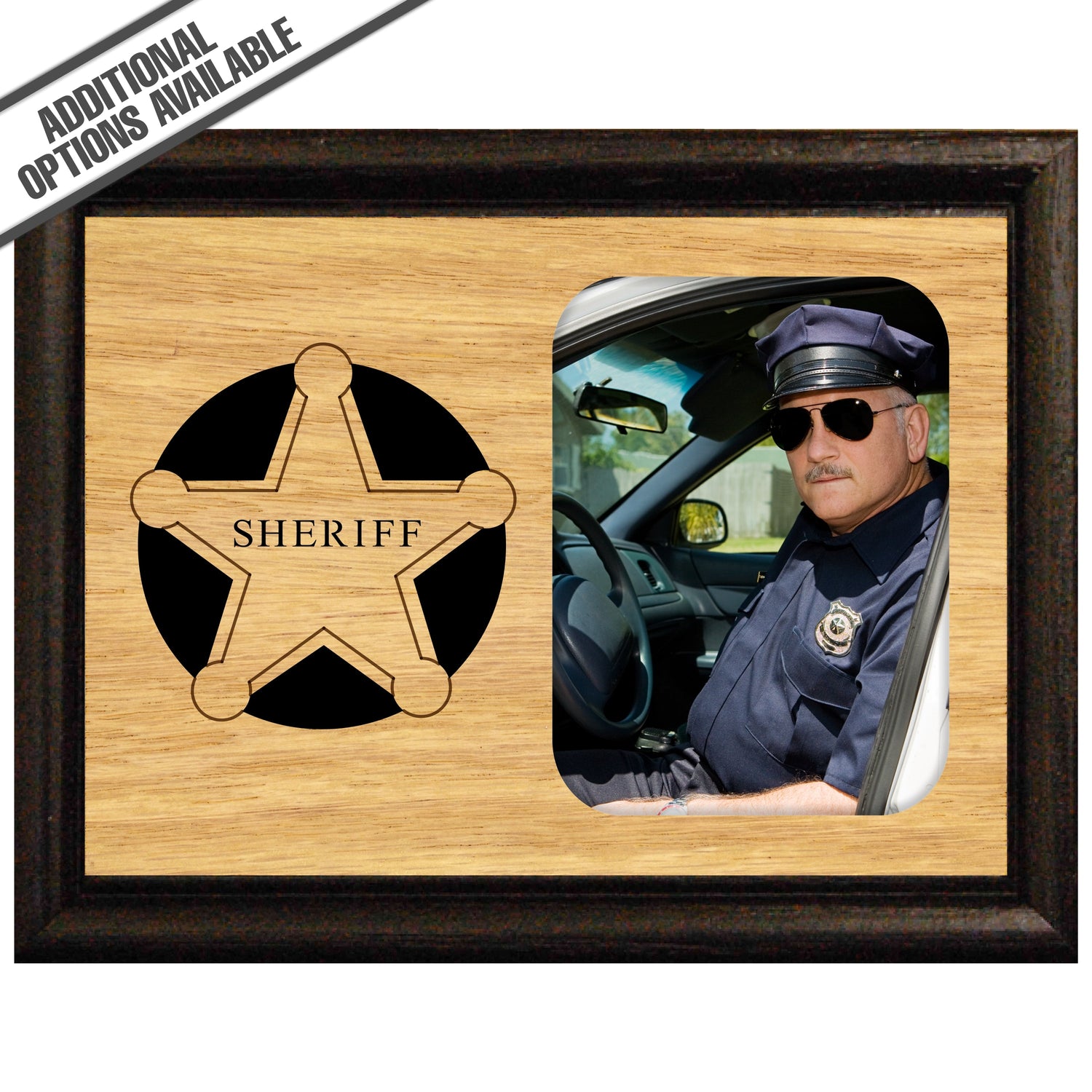 Celebrate the dedication and bravery of your favorite police officer with our exquisite Police Officer wooden frame. This frame features a beautifully engraved 5-pointed badge, making it a perfect gift for any law enforcement professional. Crafted from high-quality wood, Its durable construction ensures it will stand the test of time, while the elegant engraving adds a personal stylish tribute to the noble service of police officers. This frame is an ideal way to honor their commitment while adding a touch of elegance to their home or office decor. Our FrameWorks magnetic mattes are the best way to accentuate any picture. Prefect for a fridge, locker, file cabinet and more, with a strong magnetic backing. Our FrameWorks material is lightweight making it a great souvenir to pack or mail.