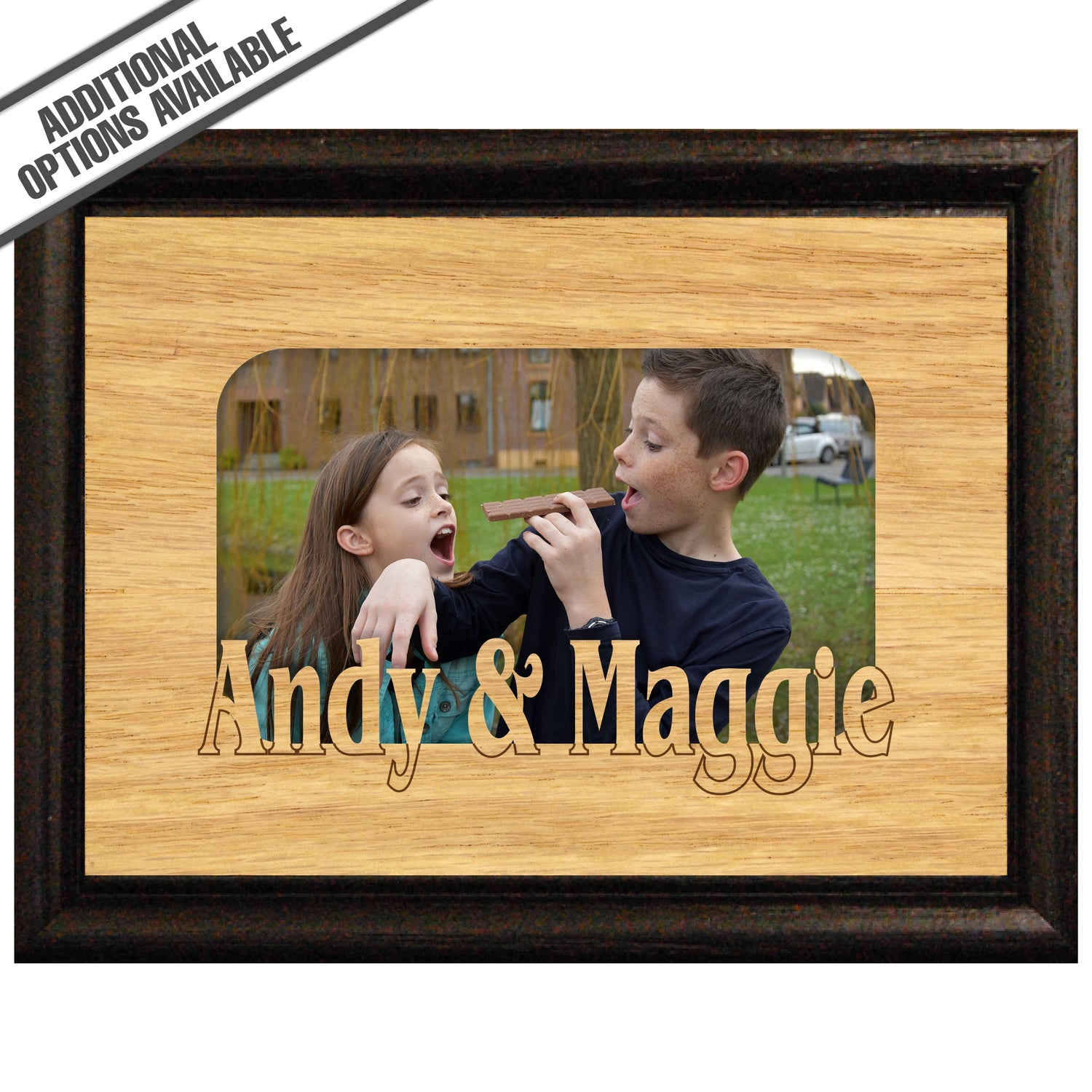 Elevate your home decor with our exquisite wooden frame featuring the multiple names. This personalized two-name insert adds a unique touch to any space, making it a perfect gift for couples, friends, or family members. Crafted from high-quality wood, the frame not only showcases your cherished names but also complements various interior styles, from rustic to modern. Celebrate your special bond with this timeless piece that is sure to become a treasured keepsake.Our FrameWorks magnetic mattes are the best way to accentuate any picture. Prefect for a fridge, locker, file cabinet and more, with a strong magnetic backing. Our FrameWorks material is lightweight making it a great souvenir to pack or mail.