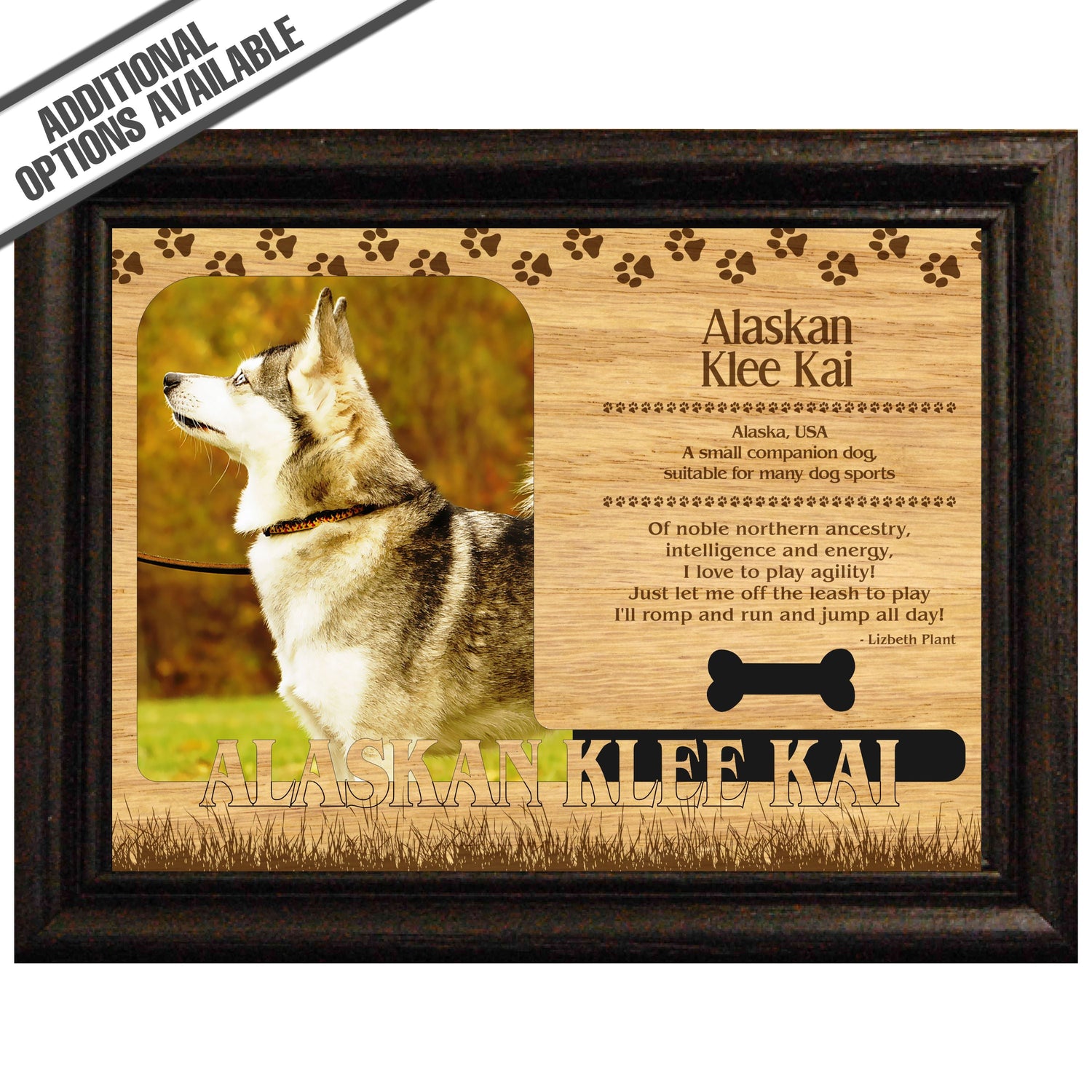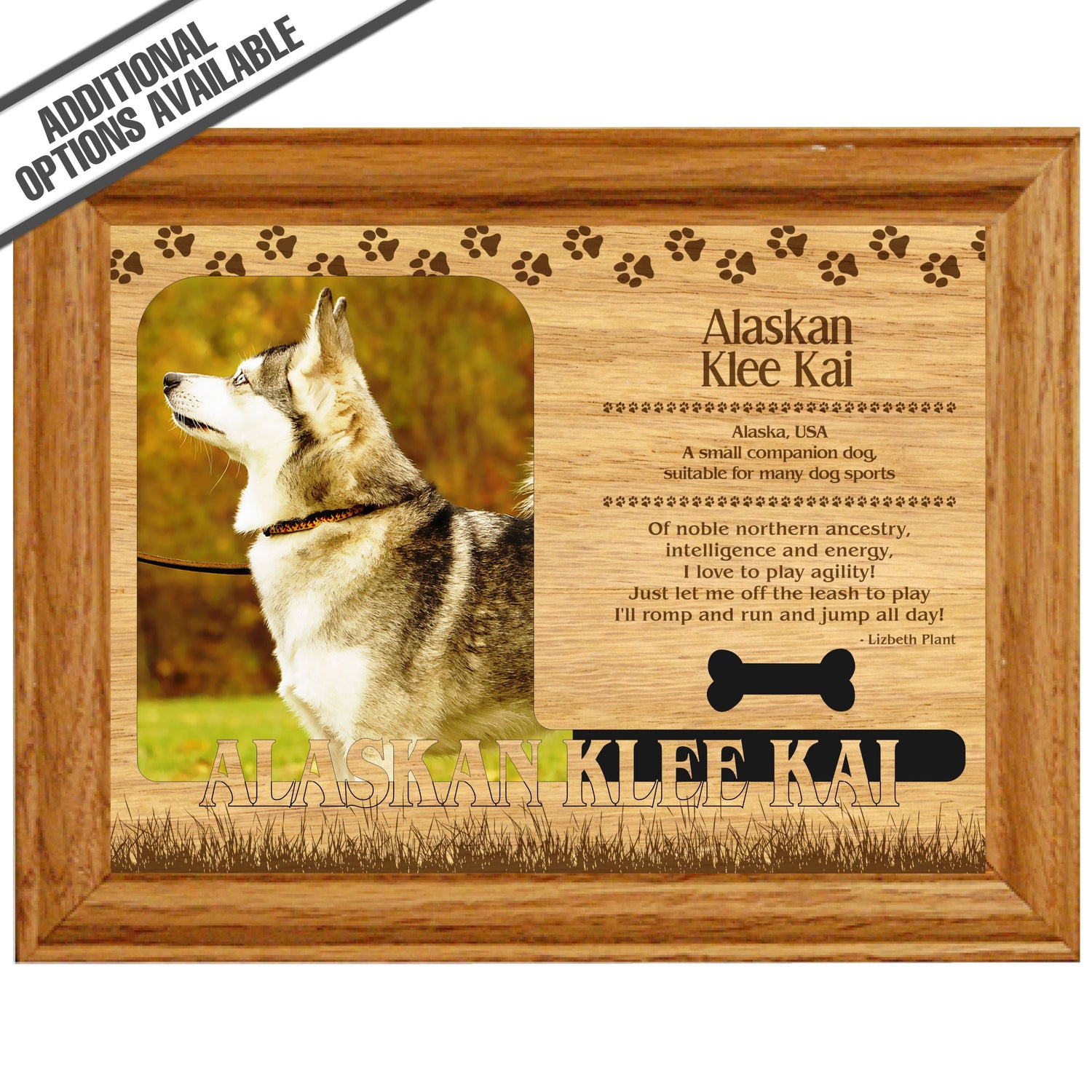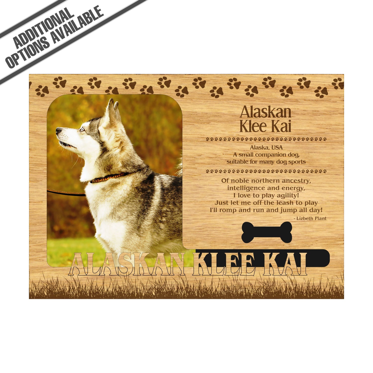 Celebrate the unique bond between you and your dog with our exquisite " Alaskan Klee Kai" wooden photo frame. This beautifully crafted wooden frame showcases engraved paw print, capturing the essence of your furry friend in a stylish and heartwarming way. Perfect for displaying your favorite photo, this frame not only serves as a cherished keepsake but also highlights the playful and loyal personality traits of the Alaskan Klee Kai. A thoughtful gift for dog lovers, it adds a personal touch to any home decor while honoring the love and companionship of your pet. Our FrameWorks magnetic mattes are the best way to accentuate any picture. Prefect for a fridge, locker, file cabinet and more, with a strong magnetic backing. Our FrameWorks material is lightweight making it a great souvenir to pack or mail.