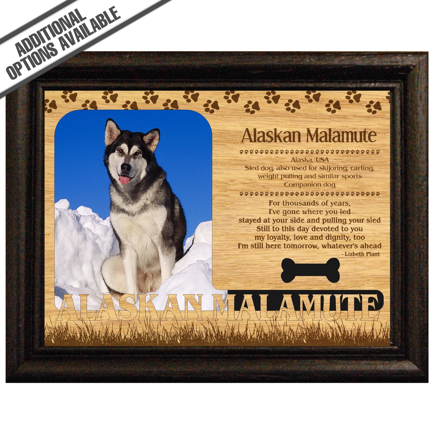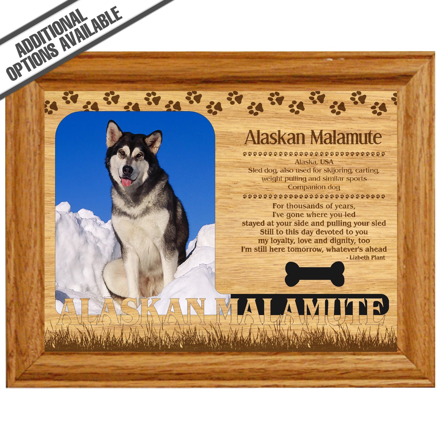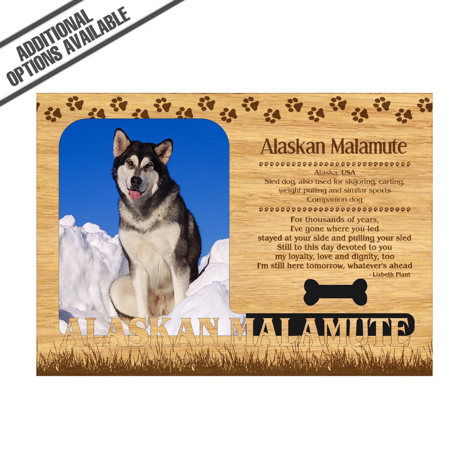 Celebrate the unique bond between you and your dog with our exquisite "Alaskan Malamute" wooden photo frame. This beautifully crafted wooden frame showcases engraved paw print, capturing the essence of your furry friend in a stylish and heartwarming way. Perfect for displaying your favorite photo, this frame not only serves as a cherished keepsake but also highlights the playful and loyal personality traits of the Alaskan Malamute. A thoughtful gift for dog lovers, it adds a personal touch to any home decor while honoring the love and companionship of your pet. Our FrameWorks magnetic mattes are the best way to accentuate any picture. Prefect for a fridge, locker, file cabinet and more, with a strong magnetic backing. Our FrameWorks material is lightweight making it a great souvenir to pack or mail.