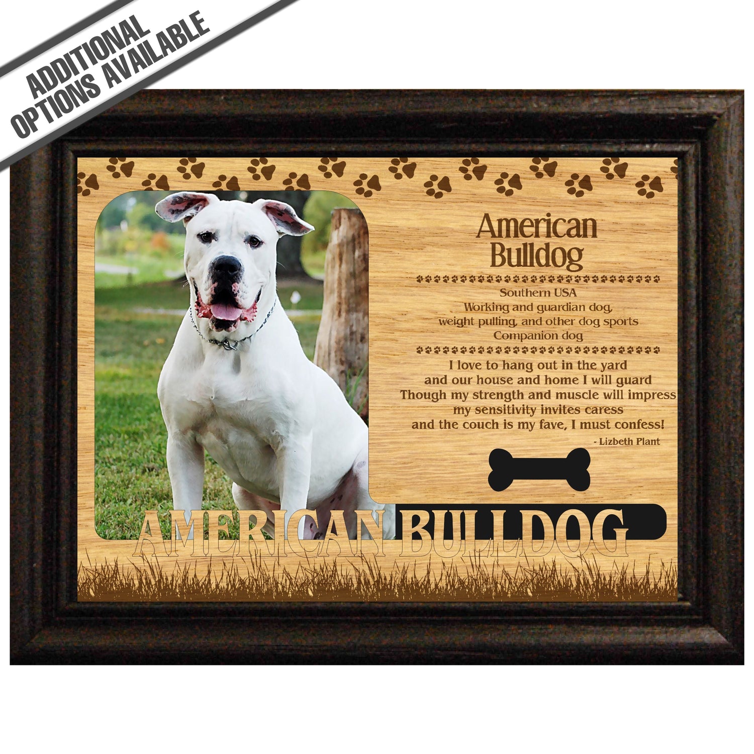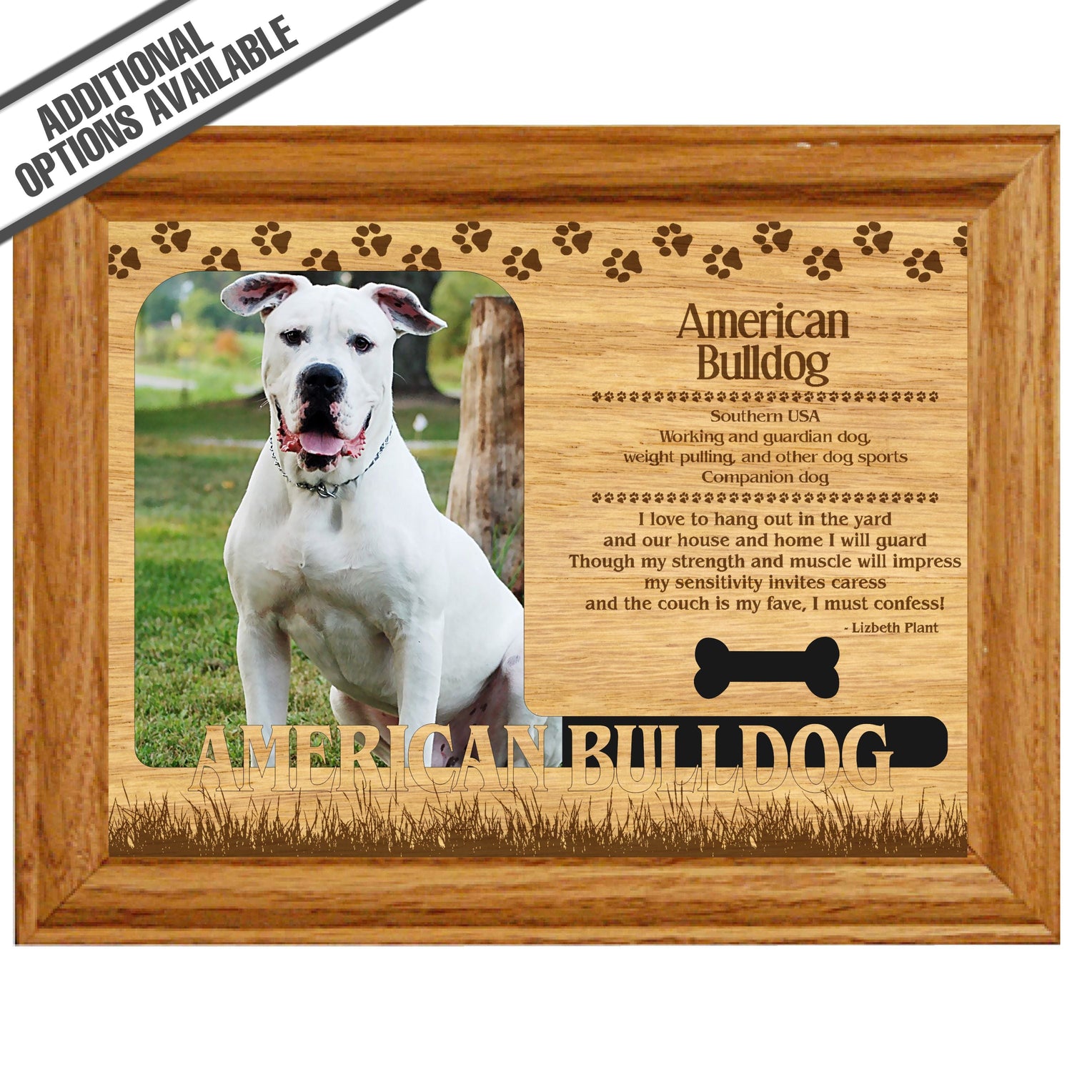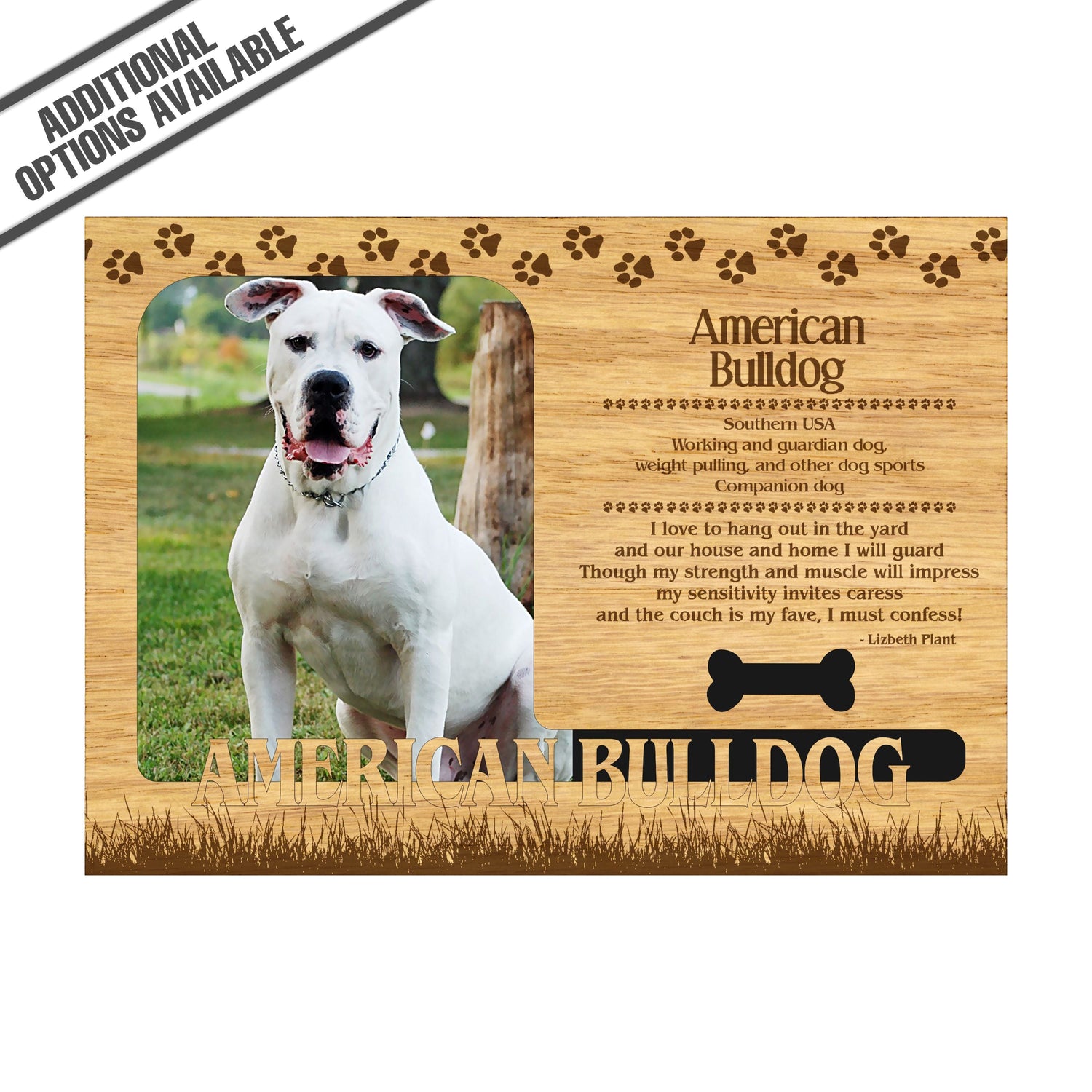 Celebrate the unique bond between you and your dog with our exquisite "American Bulldog" wooden photo frame. This beautifully crafted wooden frame showcases engraved paw print, capturing the essence of your furry friend in a stylish and heartwarming way. Perfect for displaying your favorite photo, this frame not only serves as a cherished keepsake but also highlights the playful and loyal personality traits of the American Bulldog. A thoughtful gift for dog lovers, it adds a personal touch to any home decor while honoring the love and companionship of your pet. Our FrameWorks magnetic mattes are the best way to accentuate any picture. Prefect for a fridge, locker, file cabinet and more, with a strong magnetic backing. Our FrameWorks material is lightweight making it a great souvenir to pack or mail.