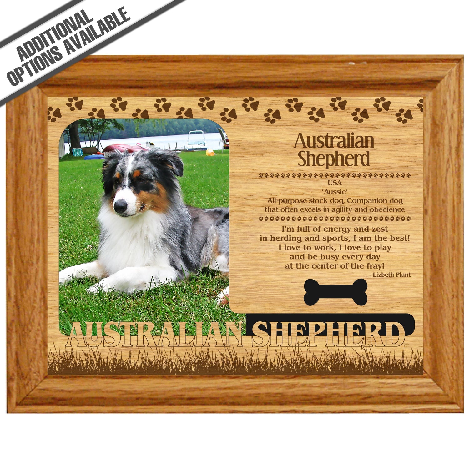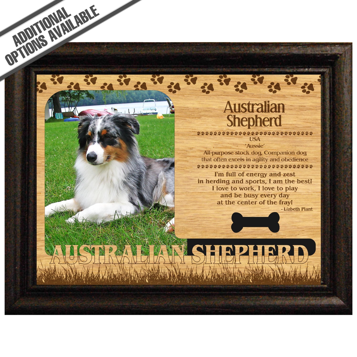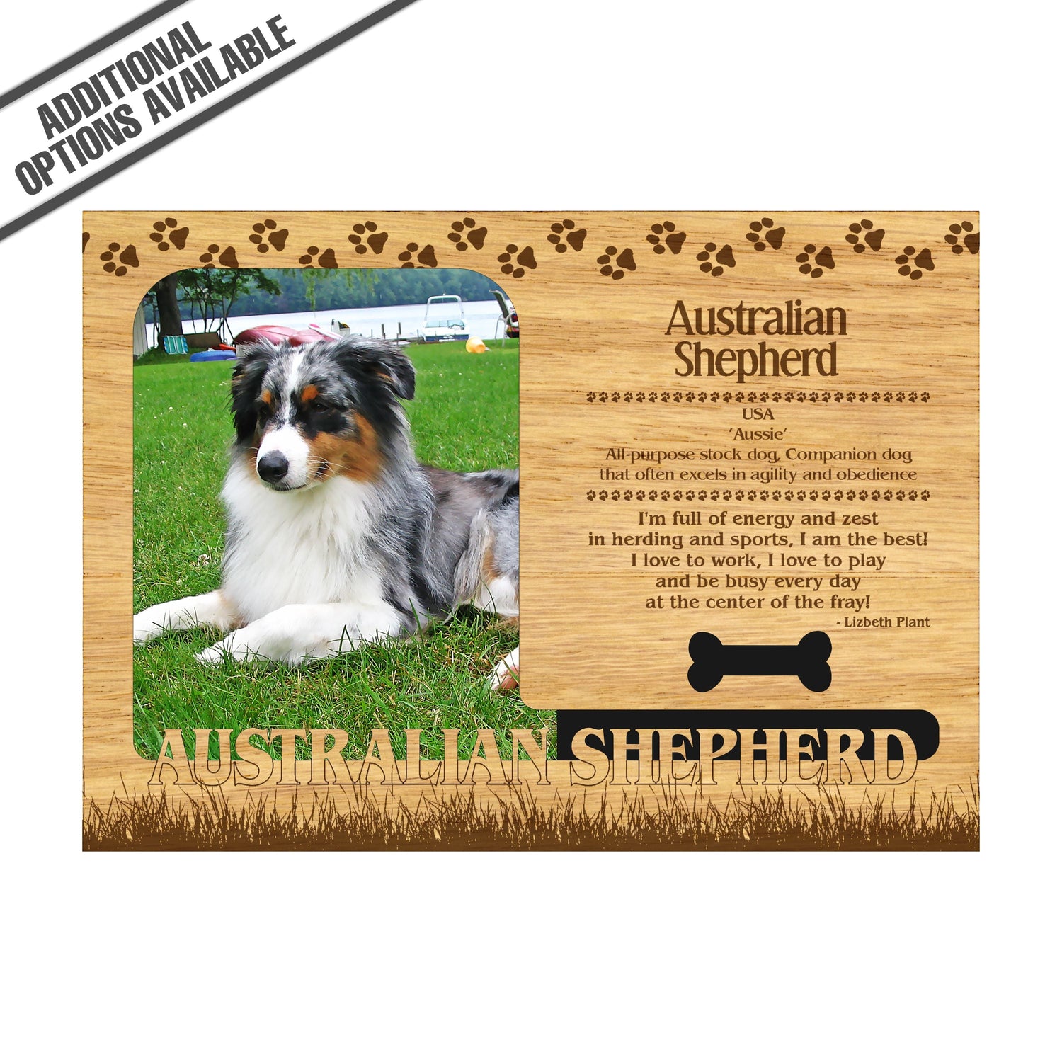 Celebrate the unique bond between you and your dog with our exquisite "Australian Shepherd" wooden photo frame. This beautifully crafted wooden frame showcases engraved paw print, capturing the essence of your furry friend in a stylish and heartwarming way. Perfect for displaying your favorite photo, this frame not only serves as a cherished keepsake but also highlights the playful and loyal personality traits of the Australian Shepherd. A thoughtful gift for dog lovers, it adds a personal touch to any home decor while honoring the love and companionship of your pet. Our FrameWorks magnetic mattes are the best way to accentuate any picture. Prefect for a fridge, locker, file cabinet and more, with a strong magnetic backing. Our FrameWorks material is lightweight making it a great souvenir to pack or mail.