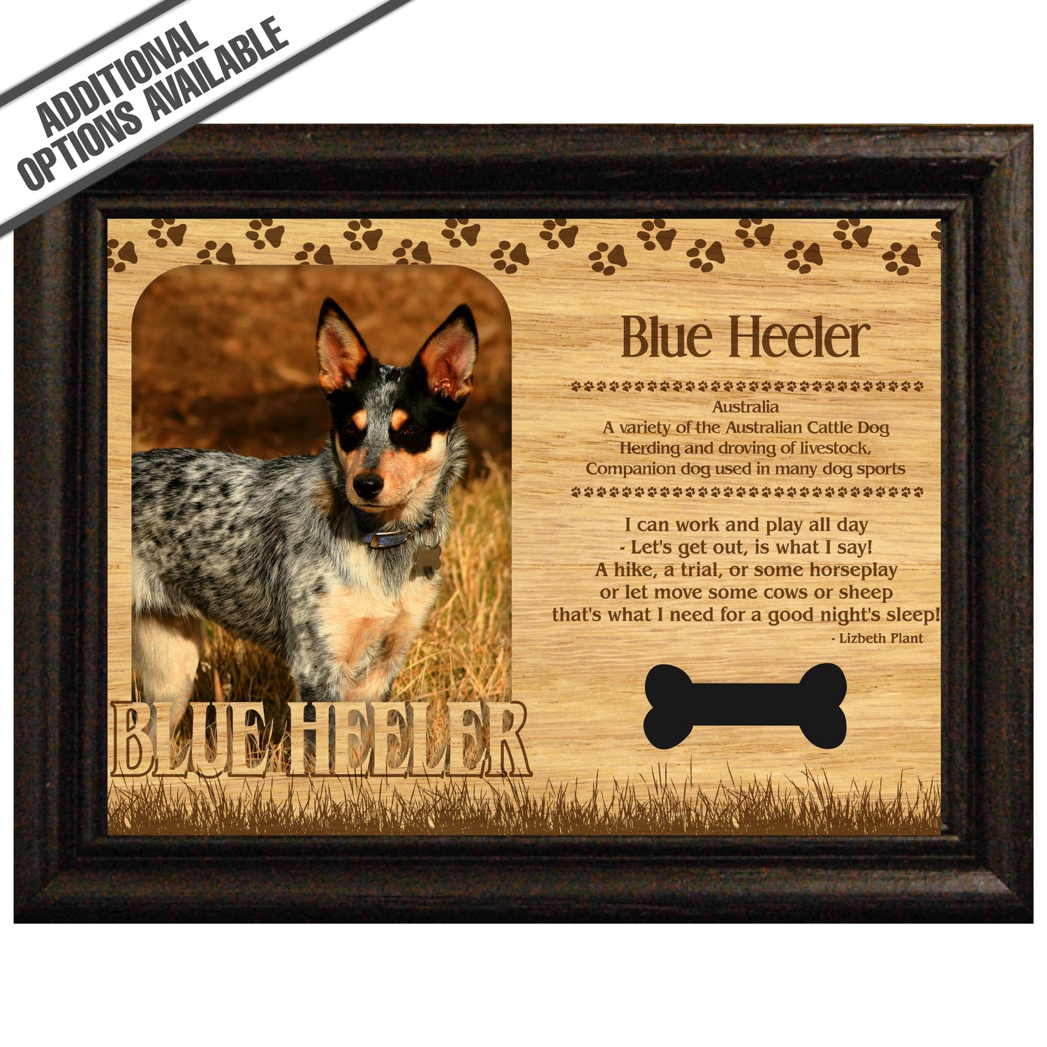 Celebrate the unique bond between you and your dog with our exquisite "Blue Heeler" wooden photo frame. This beautifully crafted wooden frame showcases engraved paw print, capturing the essence of your furry friend in a stylish and heartwarming way. Perfect for displaying your favorite photo, this frame not only serves as a cherished keepsake but also highlights the playful and loyal personality traits of the Blue Heeler. A thoughtful gift for dog lovers, it adds a personal touch to any home decor while honoring the love and companionship of your pet. Our FrameWorks magnetic mattes are the best way to accentuate any picture. Prefect for a fridge, locker, file cabinet and more, with a strong magnetic backing. Our FrameWorks material is lightweight making it a great souvenir to pack or mail.