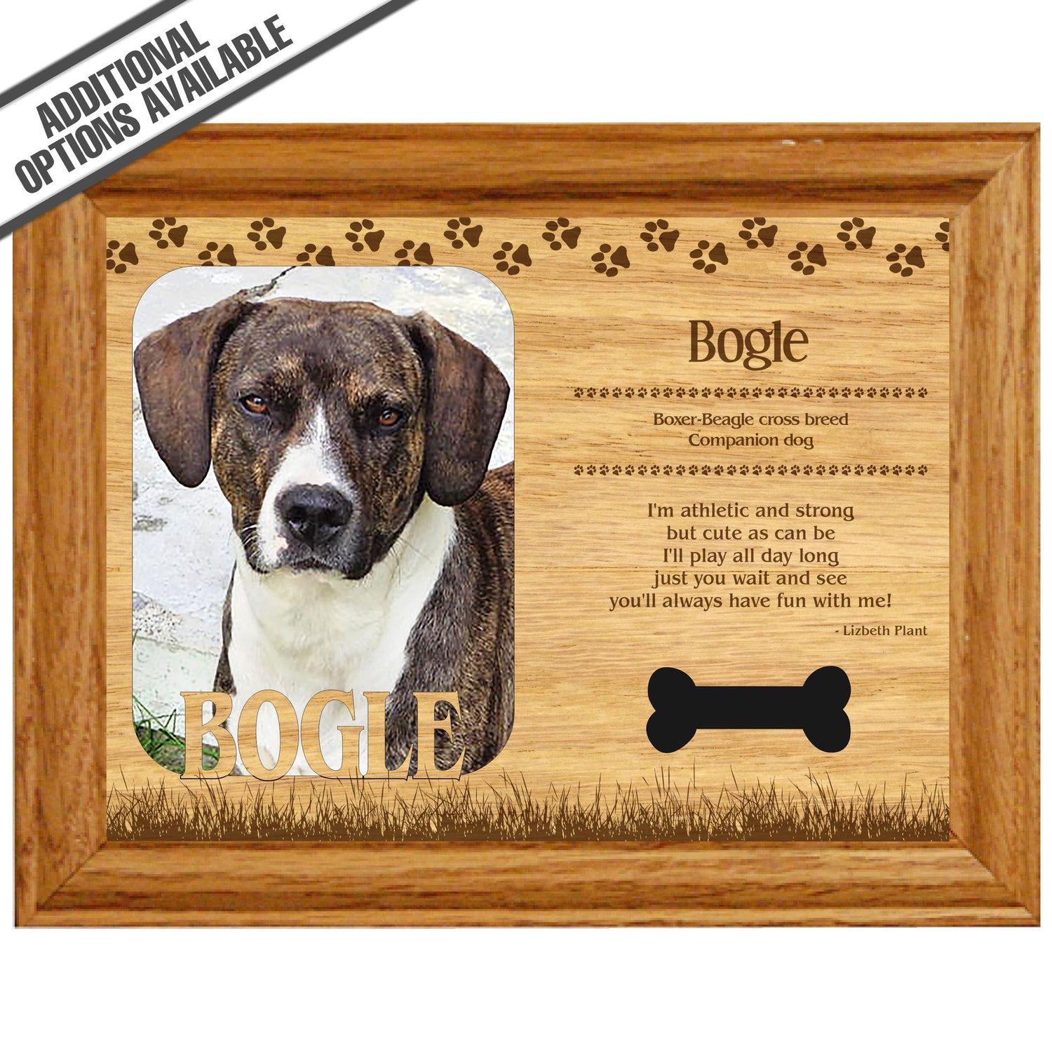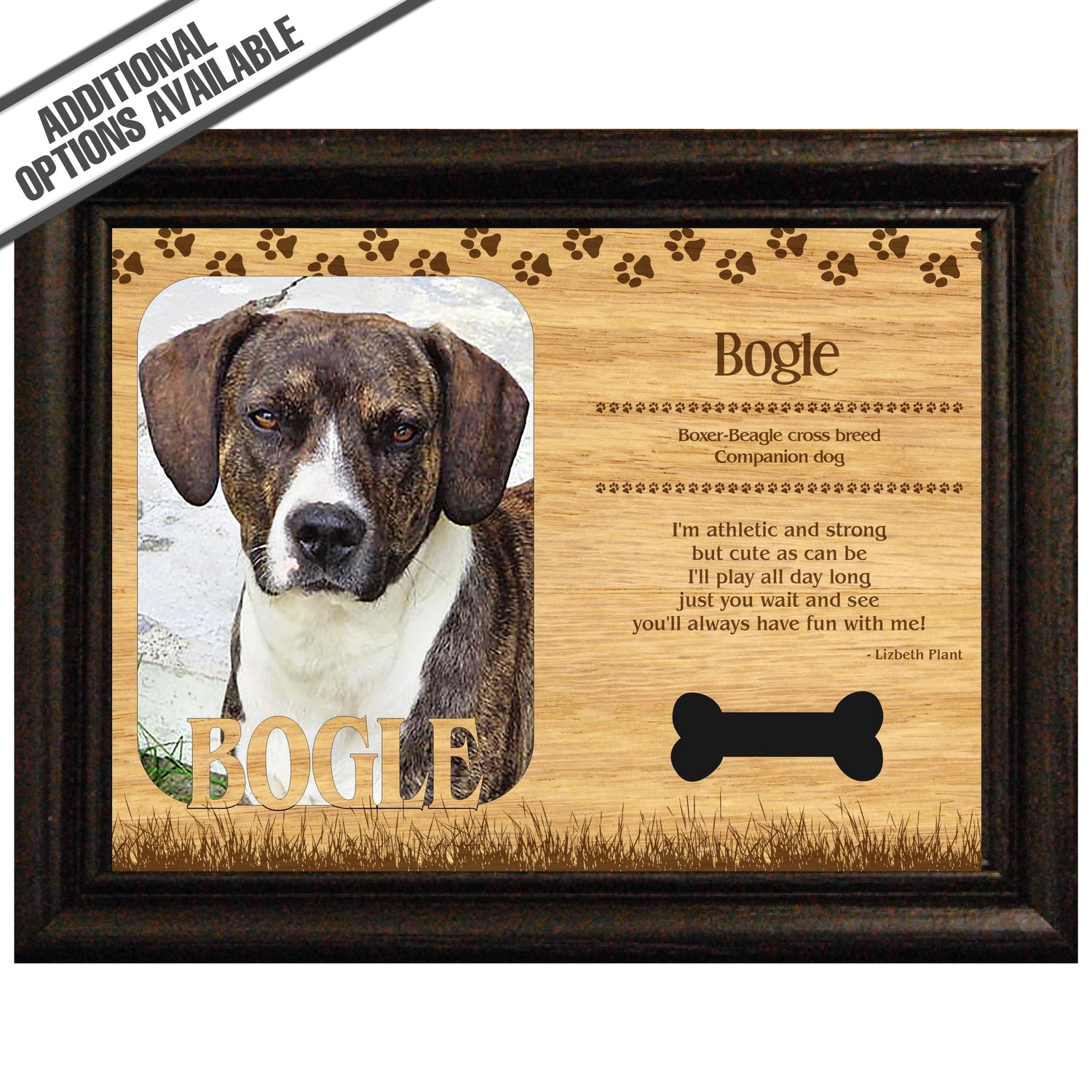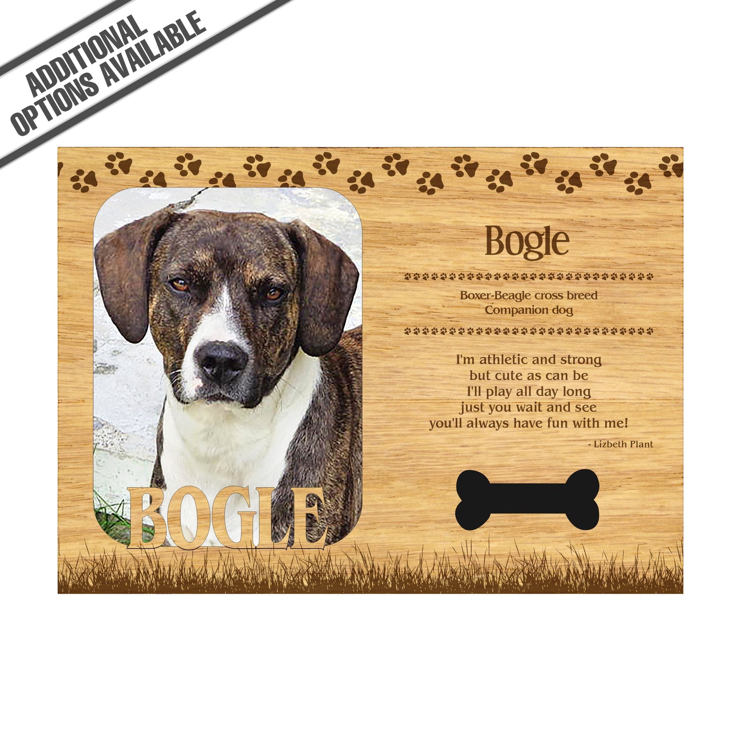Celebrate the unique bond between you and your dog with our exquisite "Bogle" wooden photo frame. This beautifully crafted wooden frame showcases engraved paw print, capturing the essence of your furry friend in a stylish and heartwarming way. Perfect for displaying your favorite photo, this frame not only serves as a cherished keepsake but also highlights the playful and loyal personality traits of the Bogle. A thoughtful gift for dog lovers, it adds a personal touch to any home decor while honoring the love and companionship of your pet. Our FrameWorks magnetic mattes are the best way to accentuate any picture. Prefect for a fridge, locker, file cabinet and more, with a strong magnetic backing. Our FrameWorks material is lightweight making it a great souvenir to pack or mail.