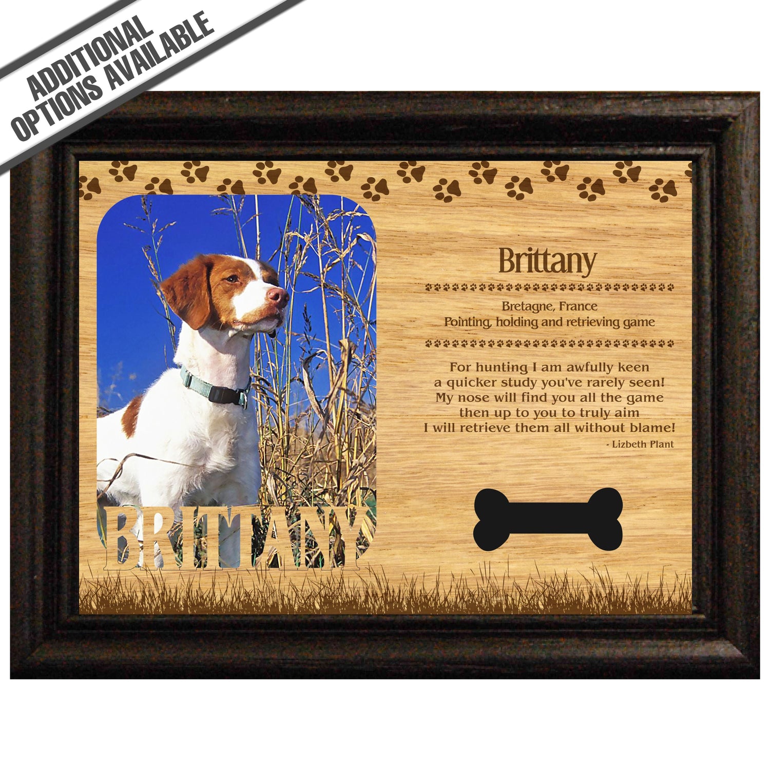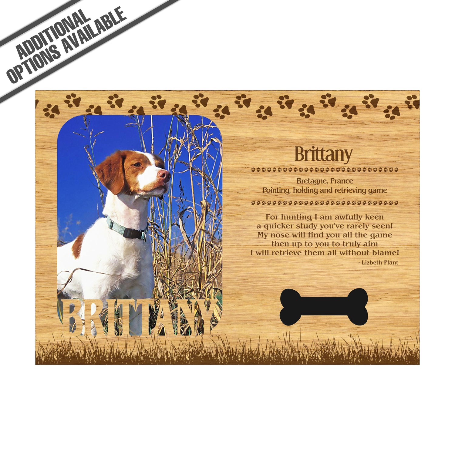 Celebrate the unique bond between you and your dog with our exquisite "Brittany Spaniel" wooden photo frame. This beautifully crafted wooden frame showcases engraved paw print, capturing the essence of your furry friend in a stylish and heartwarming way. Perfect for displaying your favorite photo, this frame not only serves as a cherished keepsake but also highlights the playful and loyal personality traits of the Brittany Spaniel. A thoughtful gift for dog lovers, it adds a personal touch to any home decor while honoring the love and companionship of your pet. Our FrameWorks magnetic mattes are the best way to accentuate any picture. Prefect for a fridge, locker, file cabinet and more, with a strong magnetic backing. Our FrameWorks material is lightweight making it a great souvenir to pack or mail.