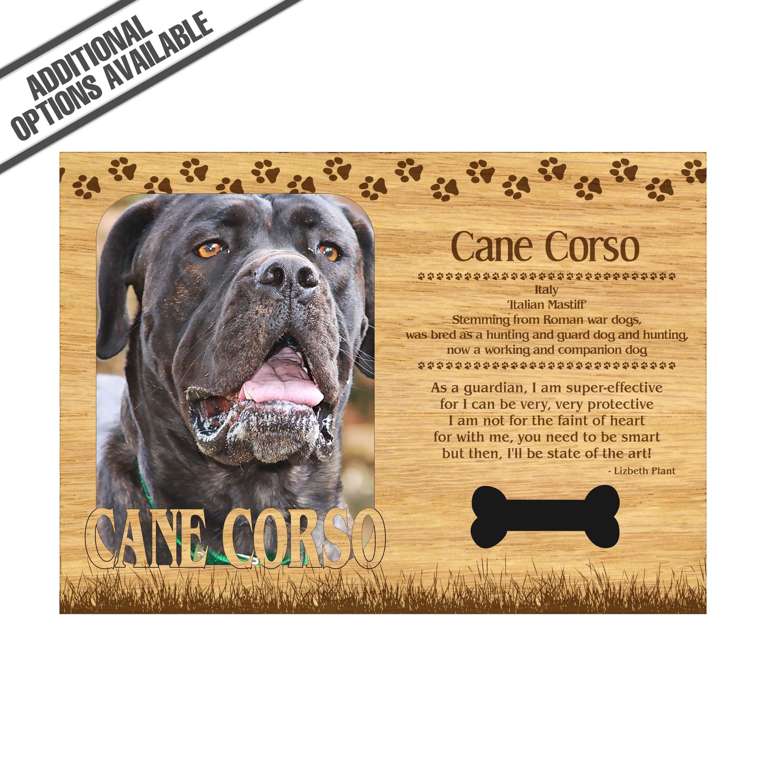 Celebrate the unique bond between you and your dog with our exquisite "Cane Corso" wooden photo frame. This beautifully crafted wooden frame showcases engraved paw print, capturing the essence of your furry friend in a stylish and heartwarming way. Perfect for displaying your favorite photo, this frame not only serves as a cherished keepsake but also highlights the playful and loyal personality traits of the Cane Corso. A thoughtful gift for dog lovers, it adds a personal touch to any home decor while honoring the love and companionship of your pet. Our FrameWorks magnetic mattes are the best way to accentuate any picture. Prefect for a fridge, locker, file cabinet and more, with a strong magnetic backing. Our FrameWorks material is lightweight making it a great souvenir to pack or mail.