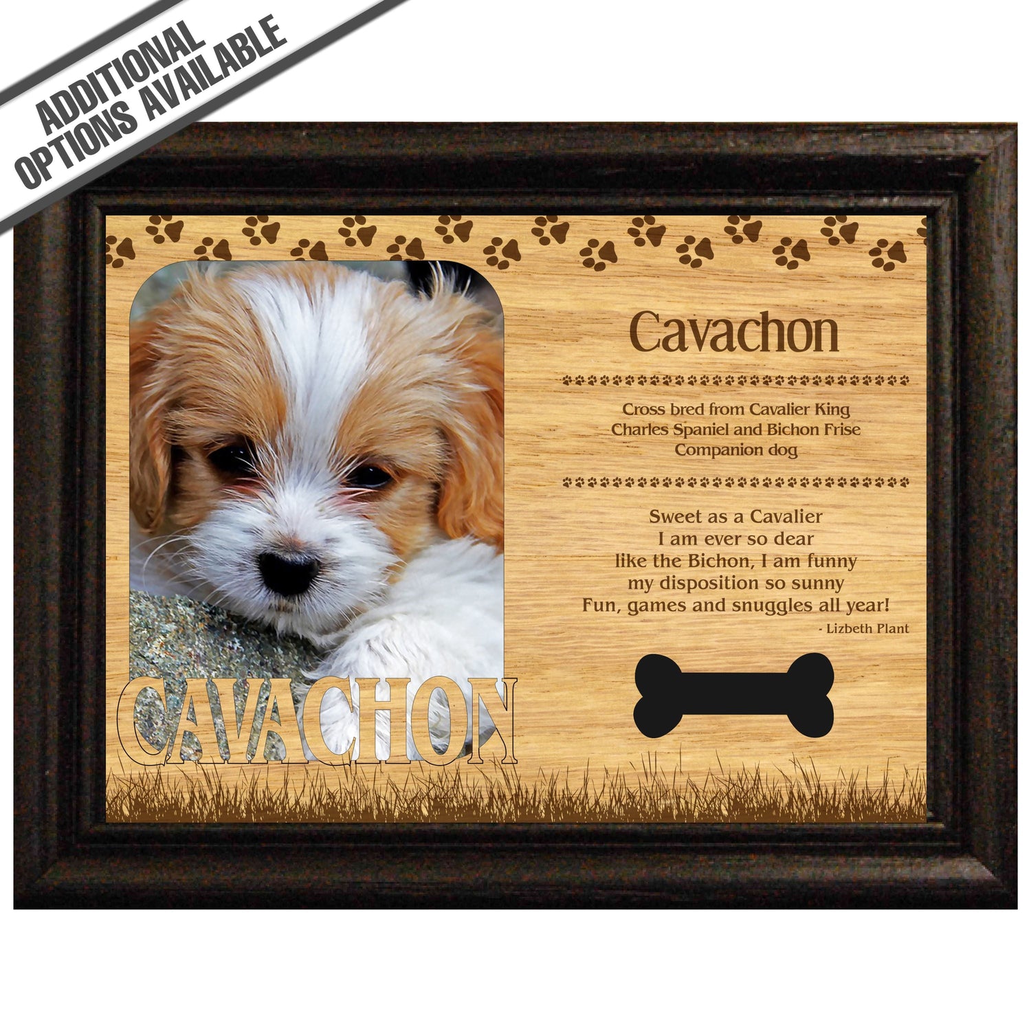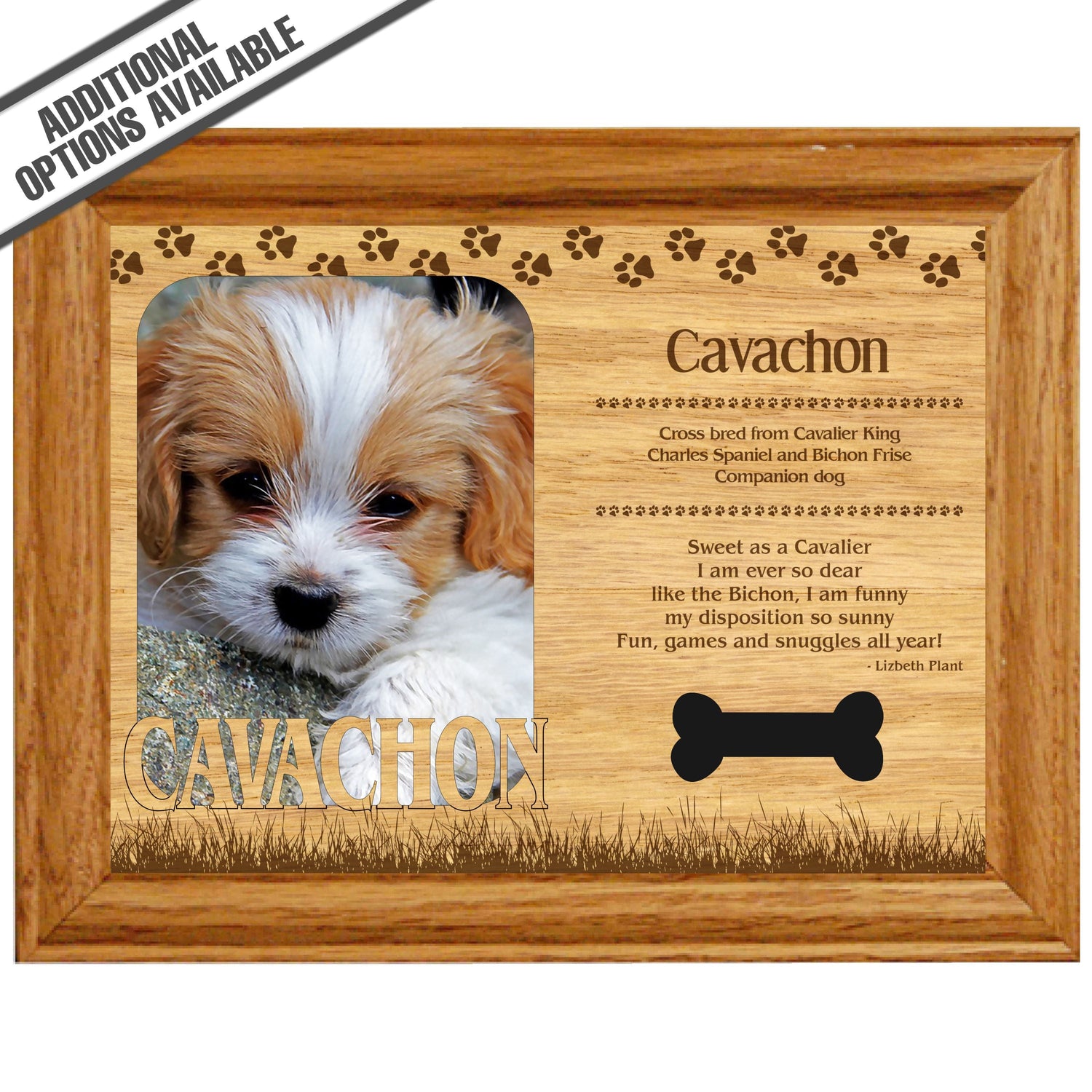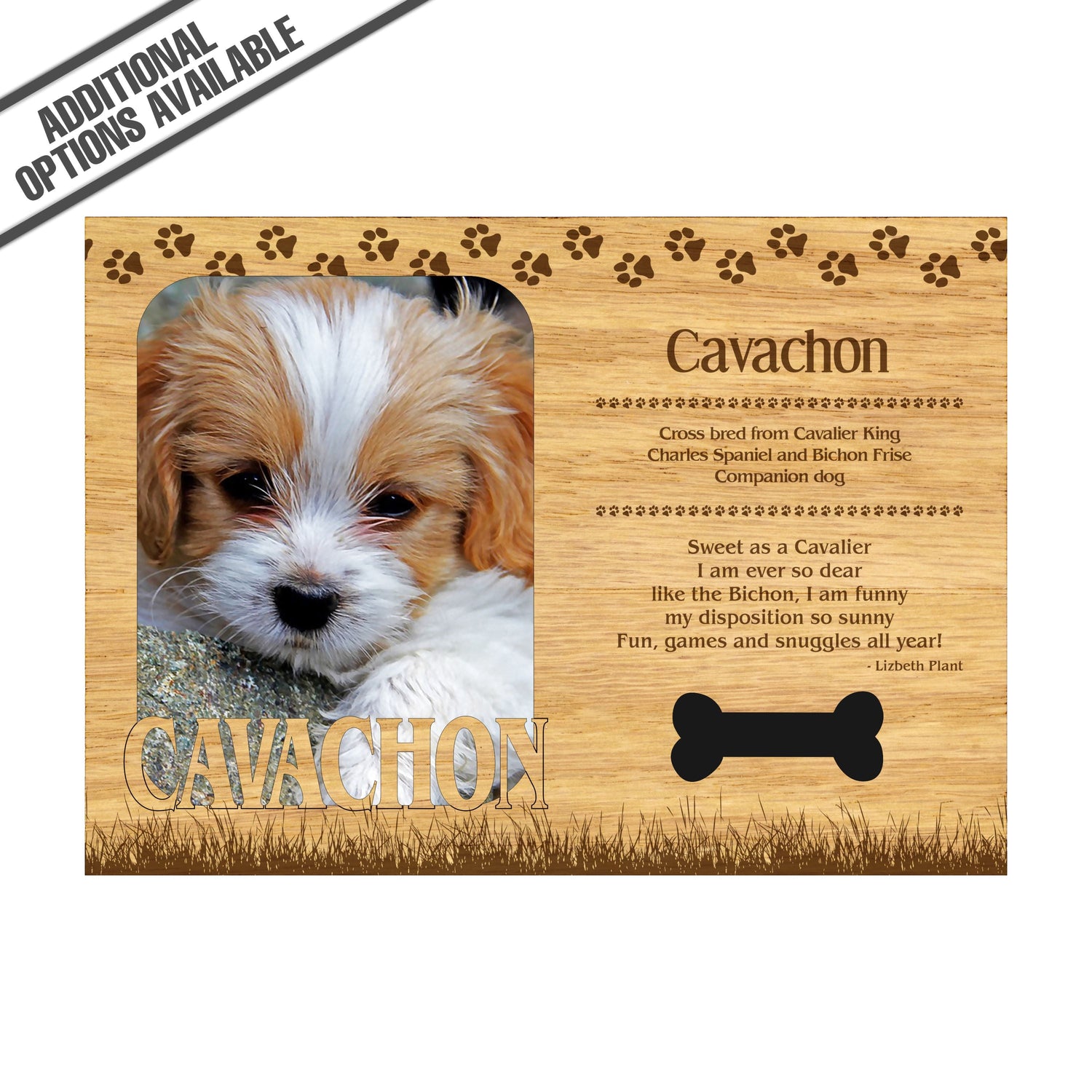 Celebrate the unique bond between you and your dog with our exquisite "Cavachon" wooden photo frame. This beautifully crafted wooden frame showcases engraved paw print, capturing the essence of your furry friend in a stylish and heartwarming way. Perfect for displaying your favorite photo, this frame not only serves as a cherished keepsake but also highlights the playful and loyal personality traits of the Cavachon. A thoughtful gift for dog lovers, it adds a personal touch to any home decor while honoring the love and companionship of your pet. Our FrameWorks magnetic mattes are the best way to accentuate any picture. Prefect for a fridge, locker, file cabinet and more, with a strong magnetic backing. Our FrameWorks material is lightweight making it a great souvenir to pack or mail.