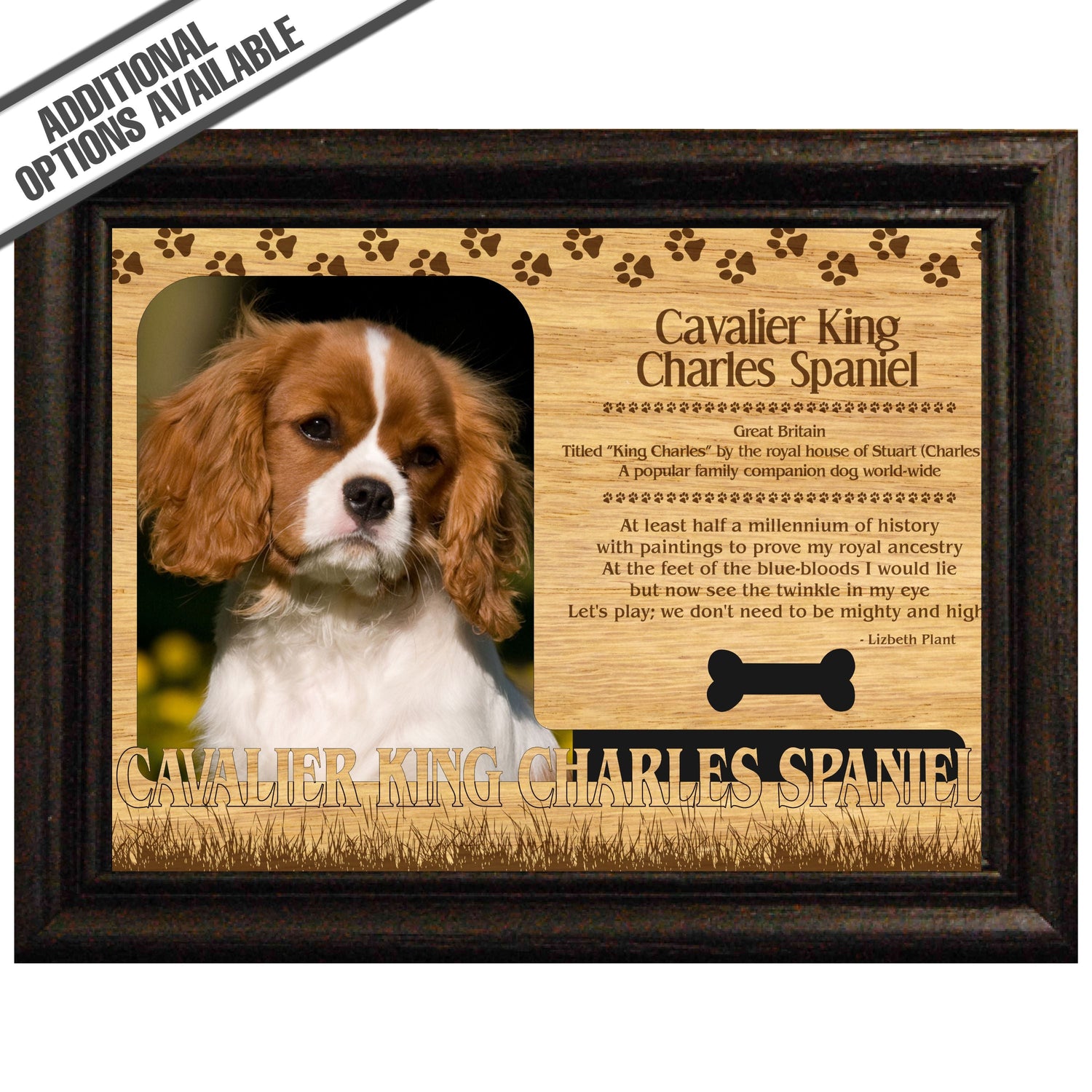 Celebrate the unique bond between you and your dog with our exquisite "Cavalier King Charles Spaniel" wooden photo frame. This beautifully crafted wooden frame showcases engraved paw print, capturing the essence of your furry friend in a stylish and heartwarming way. Perfect for displaying your favorite photo, this frame not only serves as a cherished keepsake but also highlights the playful and loyal personality traits of the Cavalier King Charles Spaniel. A thoughtful gift for dog lovers, it adds a personal touch to any home decor while honoring the love and companionship of your pet. Our FrameWorks magnetic mattes are the best way to accentuate any picture. Prefect for a fridge, locker, file cabinet and more, with a strong magnetic backing. Our FrameWorks material is lightweight making it a great souvenir to pack or mail.