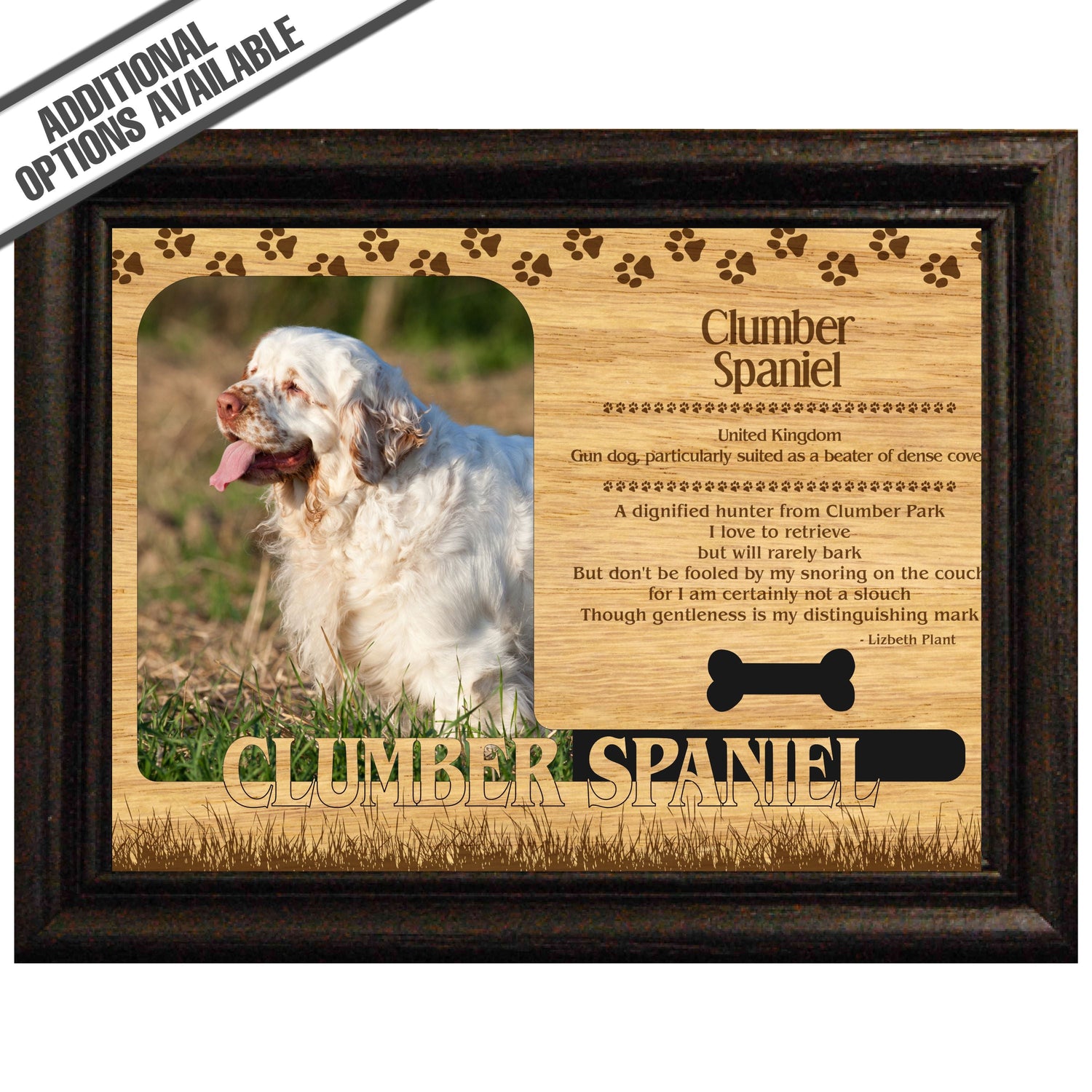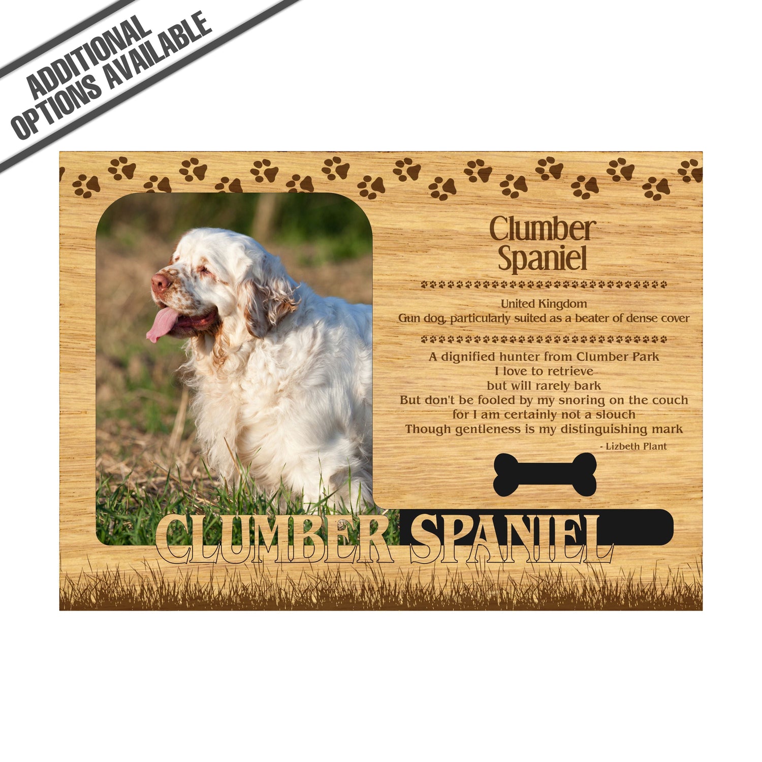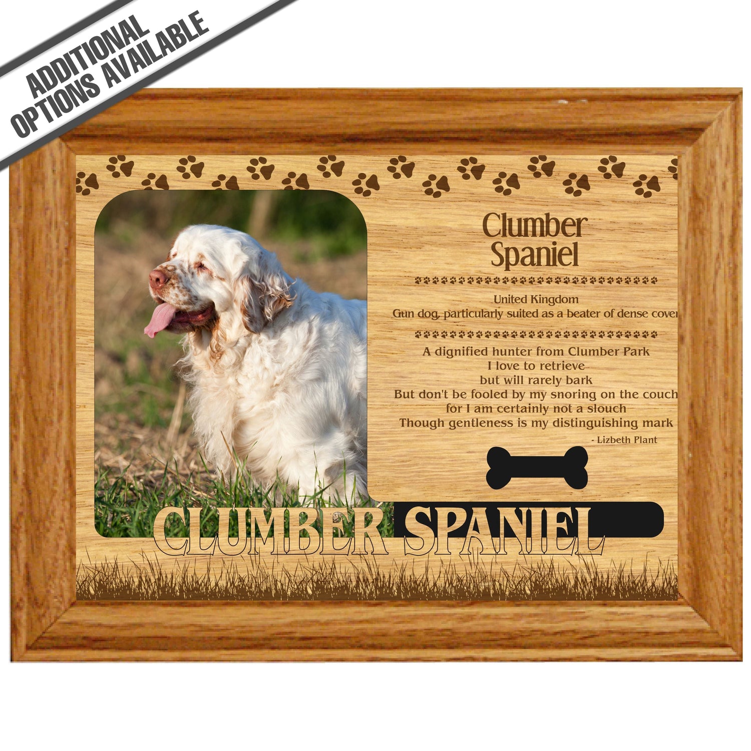 Celebrate the unique bond between you and your dog with our exquisite "Clumber Spaniel" wooden photo frame. This beautifully crafted wooden frame showcases engraved paw print, capturing the essence of your furry friend in a stylish and heartwarming way. Perfect for displaying your favorite photo, this frame not only serves as a cherished keepsake but also highlights the playful and loyal personality traits of the Clumber Spaniel. A thoughtful gift for dog lovers, it adds a personal touch to any home decor while honoring the love and companionship of your pet. Our FrameWorks magnetic mattes are the best way to accentuate any picture. Prefect for a fridge, locker, file cabinet and more, with a strong magnetic backing. Our FrameWorks material is lightweight making it a great souvenir to pack or mail.