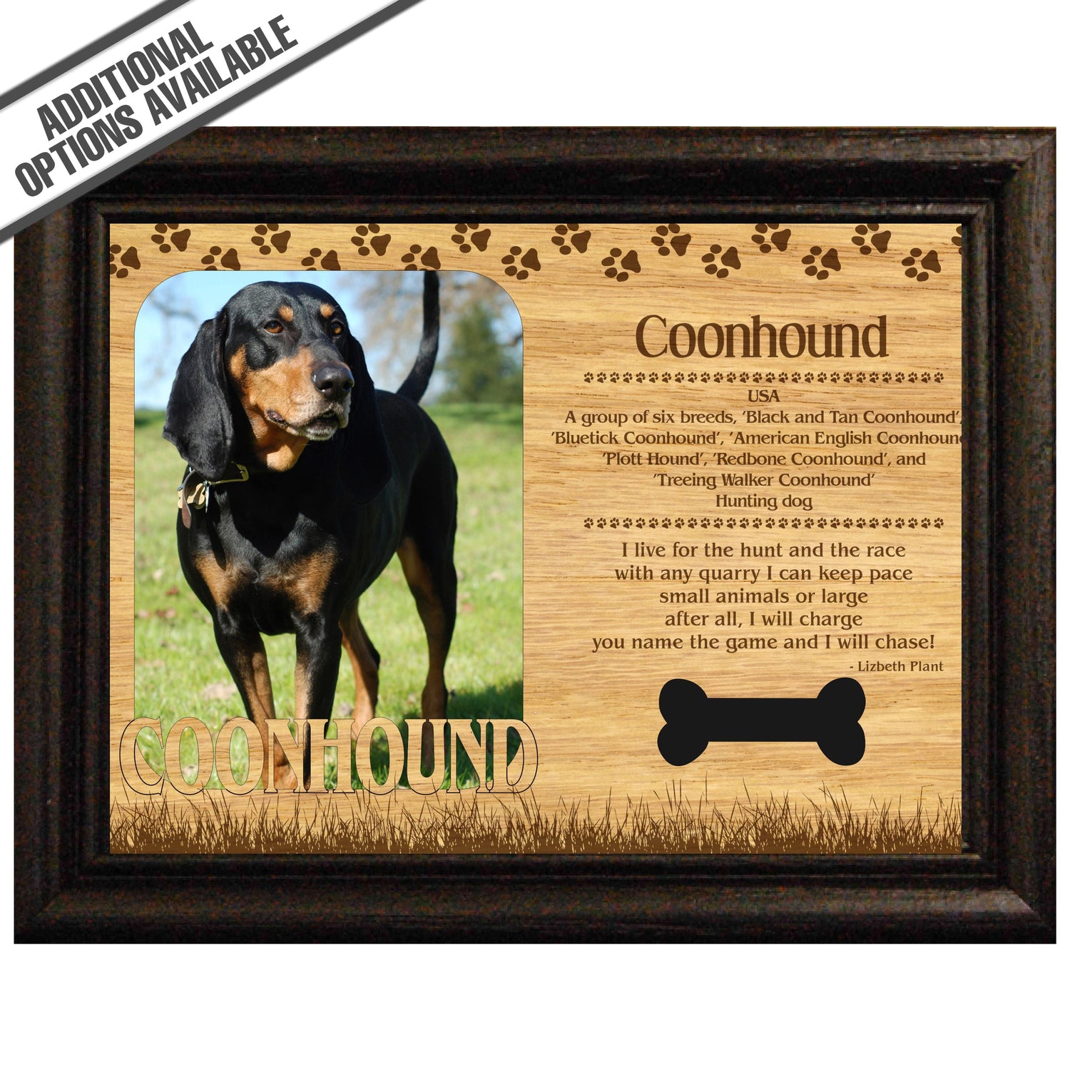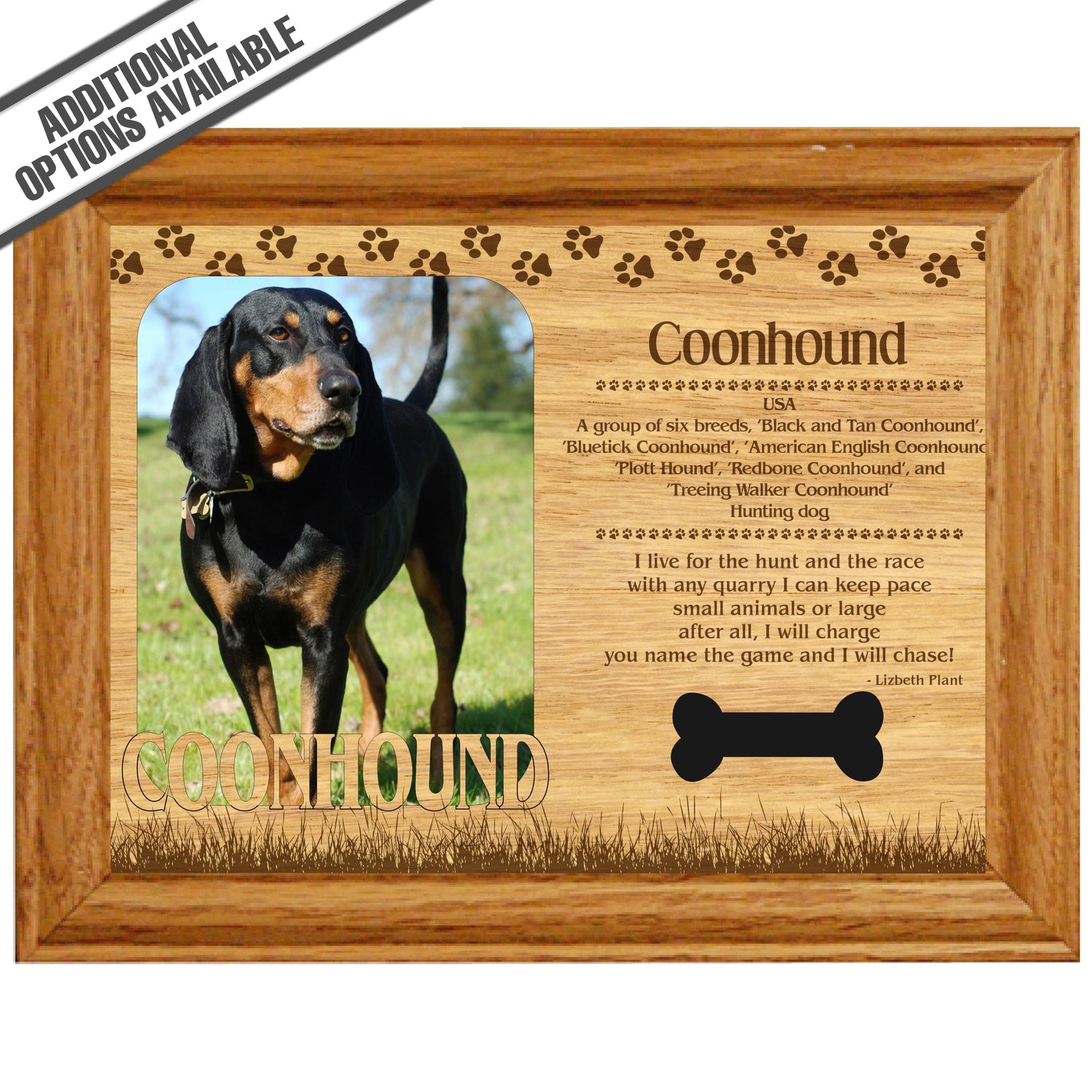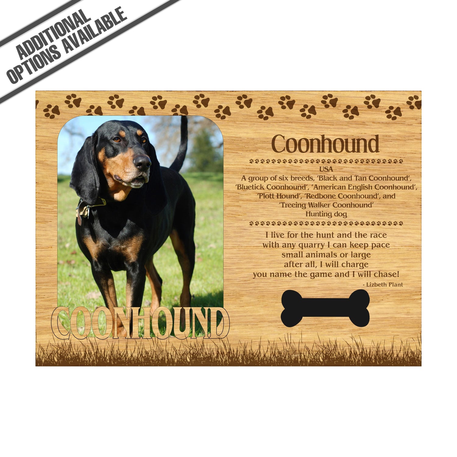 Celebrate the unique bond between you and your dog with our exquisite "Coonhound" wooden photo frame. This beautifully crafted wooden frame showcases engraved paw print, capturing the essence of your furry friend in a stylish and heartwarming way. Perfect for displaying your favorite photo, this frame not only serves as a cherished keepsake but also highlights the playful and loyal personality traits of the Coonhound. A thoughtful gift for dog lovers, it adds a personal touch to any home decor while honoring the love and companionship of your pet. Our FrameWorks magnetic mattes are the best way to accentuate any picture. Prefect for a fridge, locker, file cabinet and more, with a strong magnetic backing. Our FrameWorks material is lightweight making it a great souvenir to pack or mail.