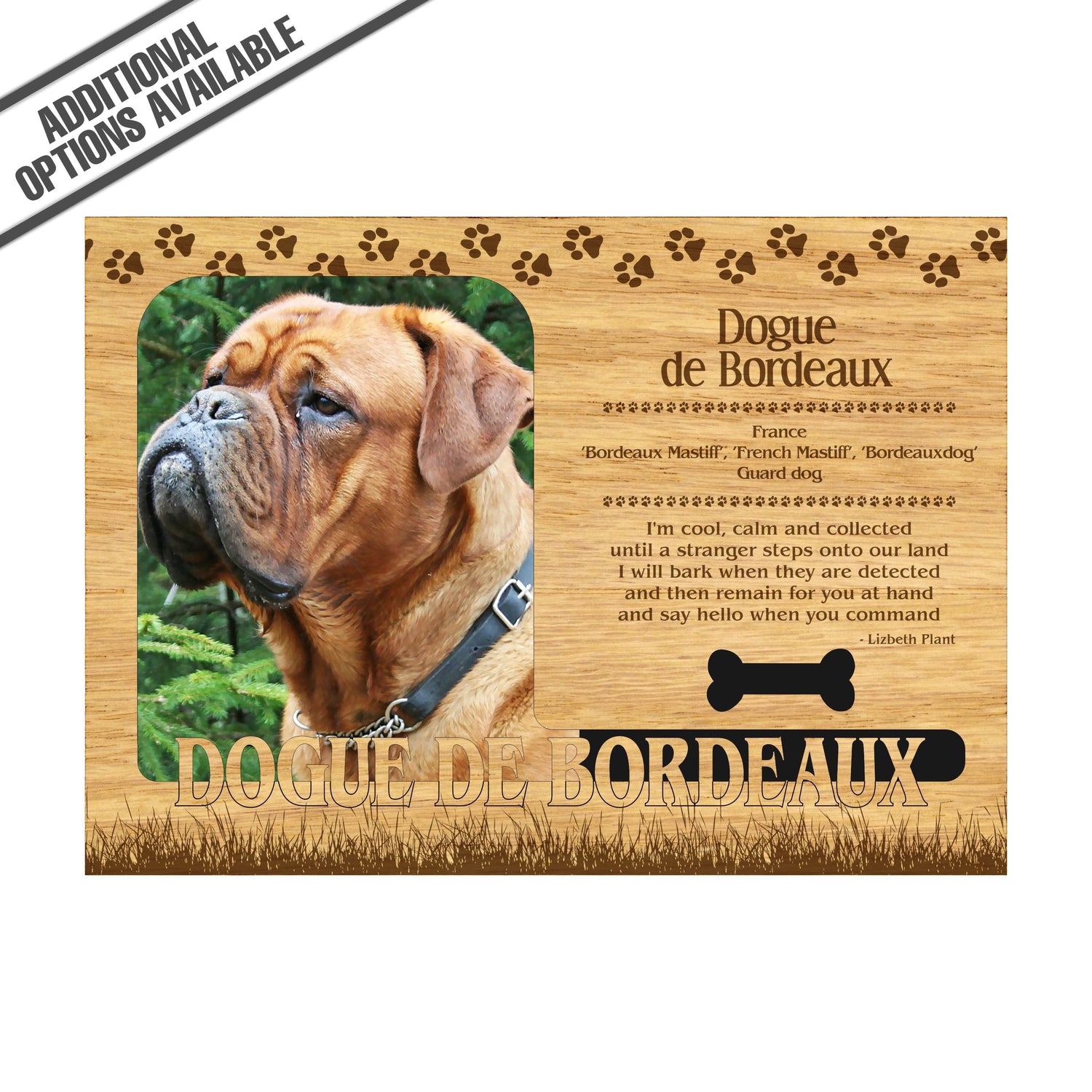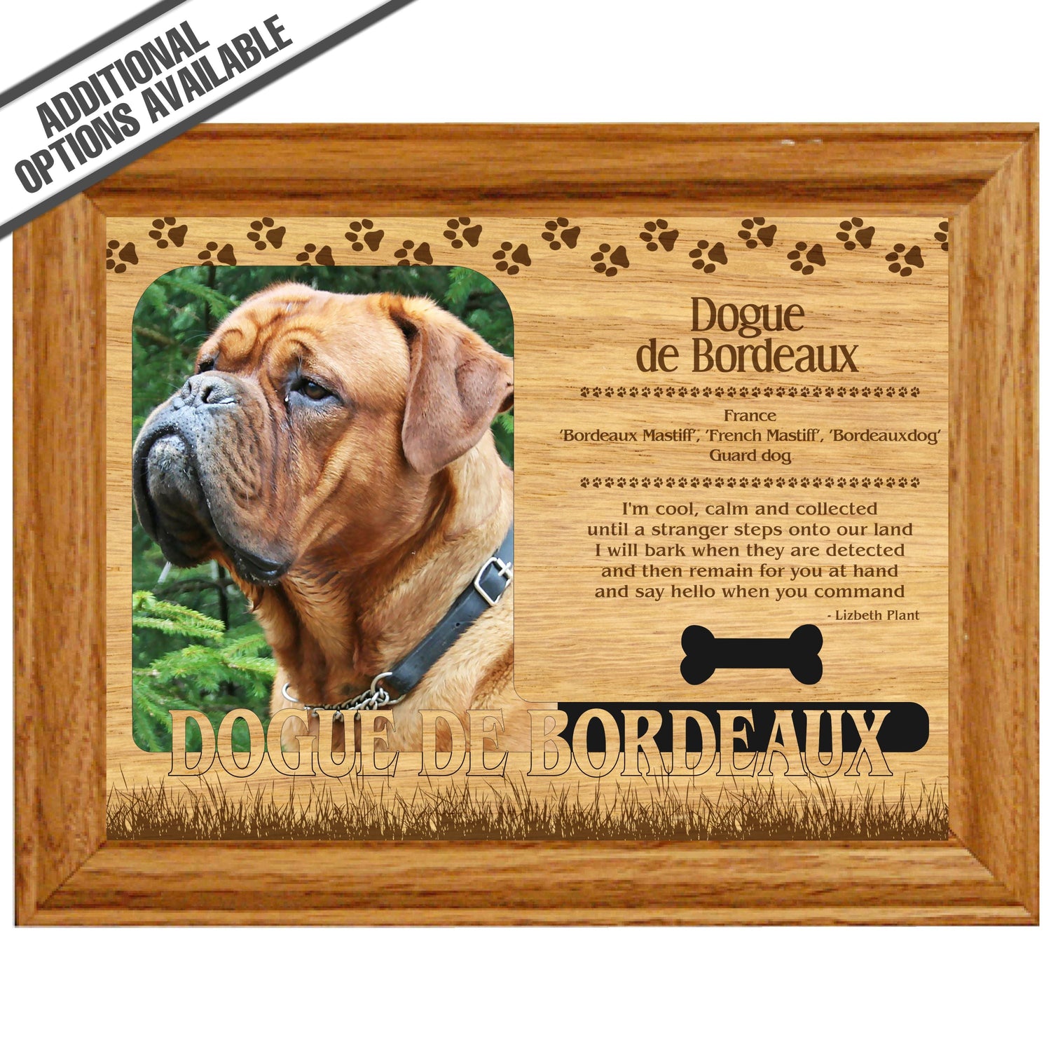 Celebrate the unique bond between you and your dog with our exquisite "Dogue de Bordeaux" wooden photo frame. This beautifully crafted wooden frame showcases engraved paw print, capturing the essence of your furry friend in a stylish and heartwarming way. Perfect for displaying your favorite photo, this frame not only serves as a cherished keepsake but also highlights the playful and loyal personality traits of the Dogue de Bordeaux. A thoughtful gift for dog lovers, it adds a personal touch to any home decor while honoring the love and companionship of your pet. Our FrameWorks magnetic mattes are the best way to accentuate any picture. Prefect for a fridge, locker, file cabinet and more, with a strong magnetic backing. Our FrameWorks material is lightweight making it a great souvenir to pack or mail.