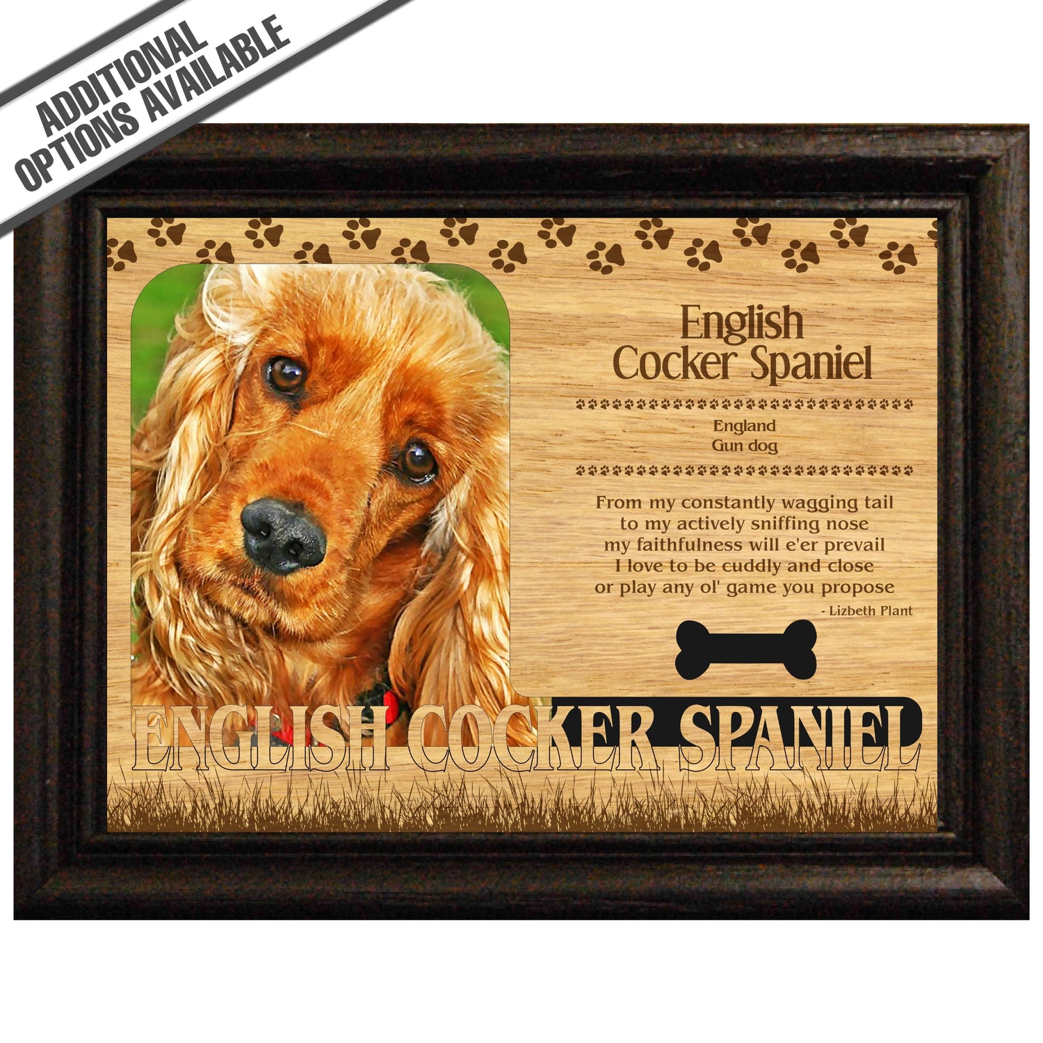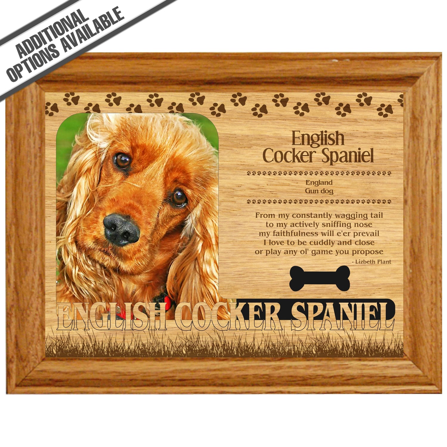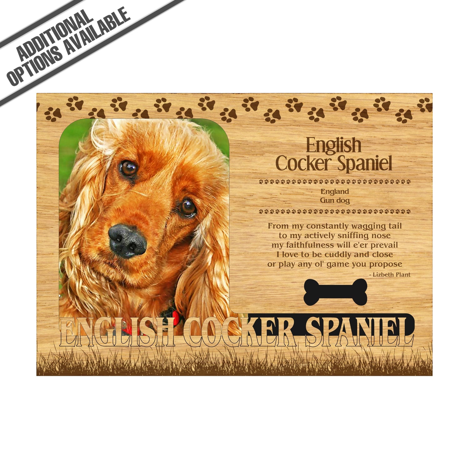 Celebrate the unique bond between you and your dog with our exquisite "English Cocker Spaniel" wooden photo frame. This beautifully crafted wooden frame showcases engraved paw print, capturing the essence of your furry friend in a stylish and heartwarming way. Perfect for displaying your favorite photo, this frame not only serves as a cherished keepsake but also highlights the playful and loyal personality traits of the English Cocker Spaniel. A thoughtful gift for dog lovers, it adds a personal touch to any home decor while honoring the love and companionship of your pet. Our FrameWorks magnetic mattes are the best way to accentuate any picture. Prefect for a fridge, locker, file cabinet and more, with a strong magnetic backing. Our FrameWorks material is lightweight making it a great souvenir to pack or mail.
