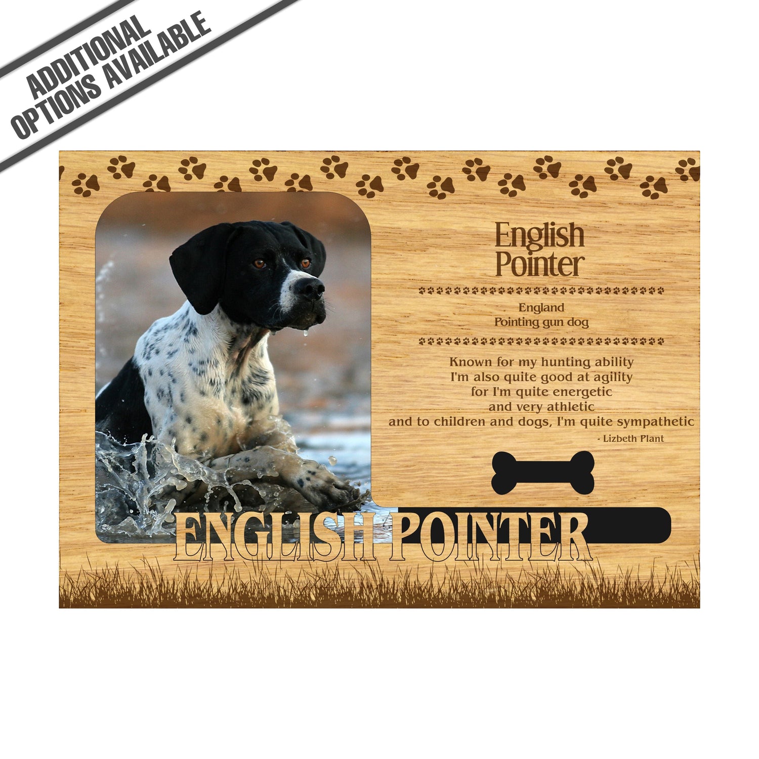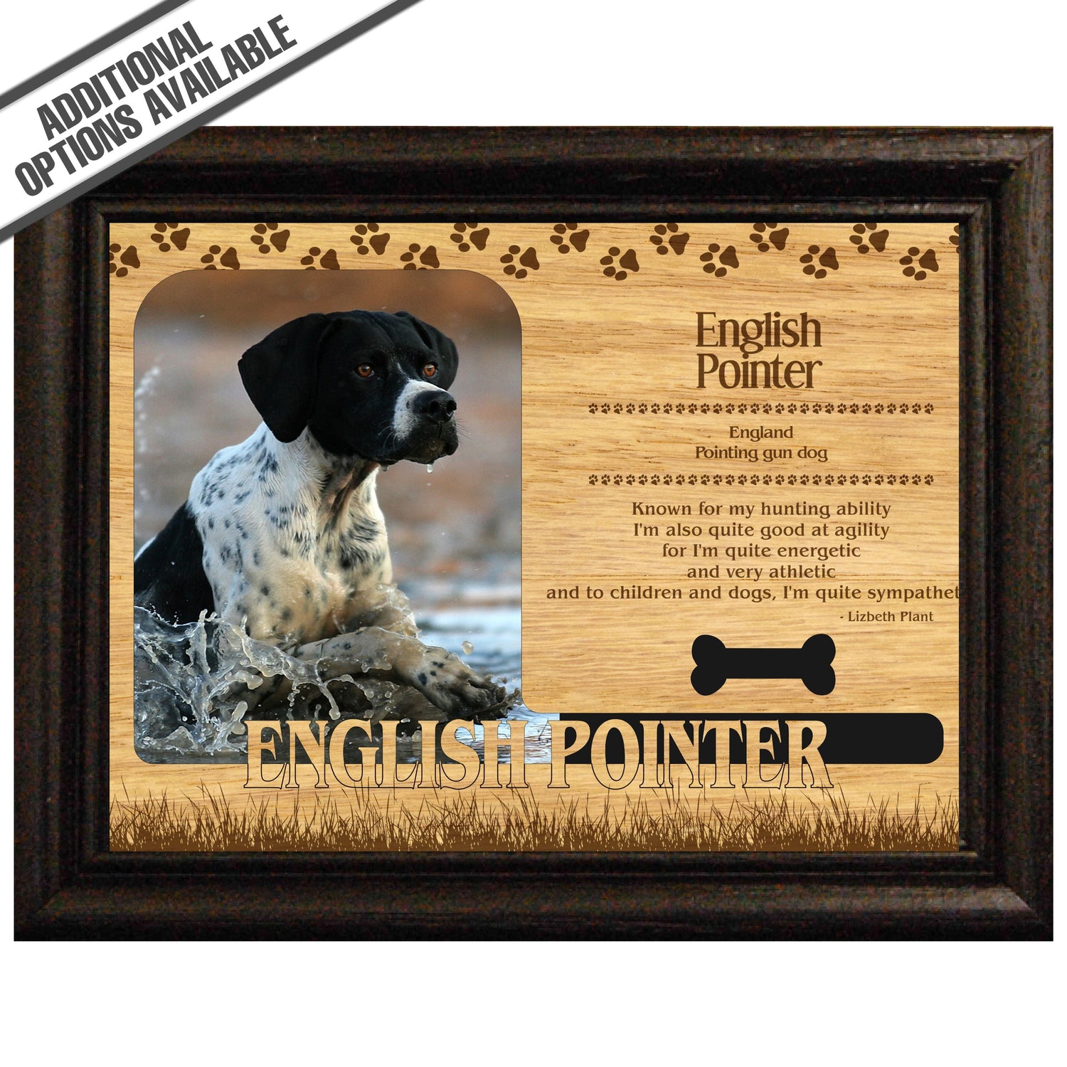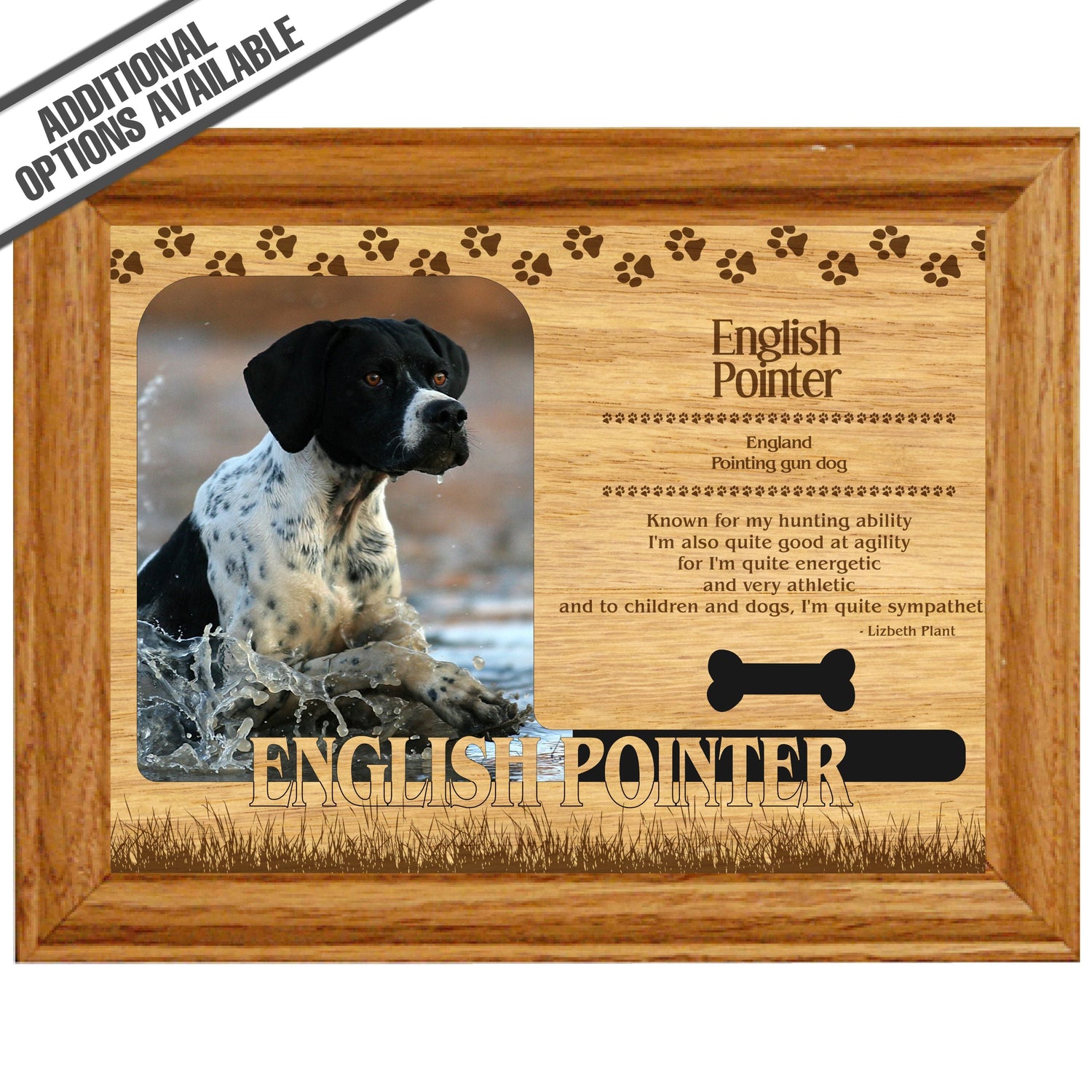 Celebrate the unique bond between you and your dog with our exquisite "English Pointer" wooden photo frame. This beautifully crafted wooden frame showcases engraved paw print, capturing the essence of your furry friend in a stylish and heartwarming way. Perfect for displaying your favorite photo, this frame not only serves as a cherished keepsake but also highlights the playful and loyal personality traits of the English Pointer. A thoughtful gift for dog lovers, it adds a personal touch to any home decor while honoring the love and companionship of your pet. Our FrameWorks magnetic mattes are the best way to accentuate any picture. Prefect for a fridge, locker, file cabinet and more, with a strong magnetic backing. Our FrameWorks material is lightweight making it a great souvenir to pack or mail.