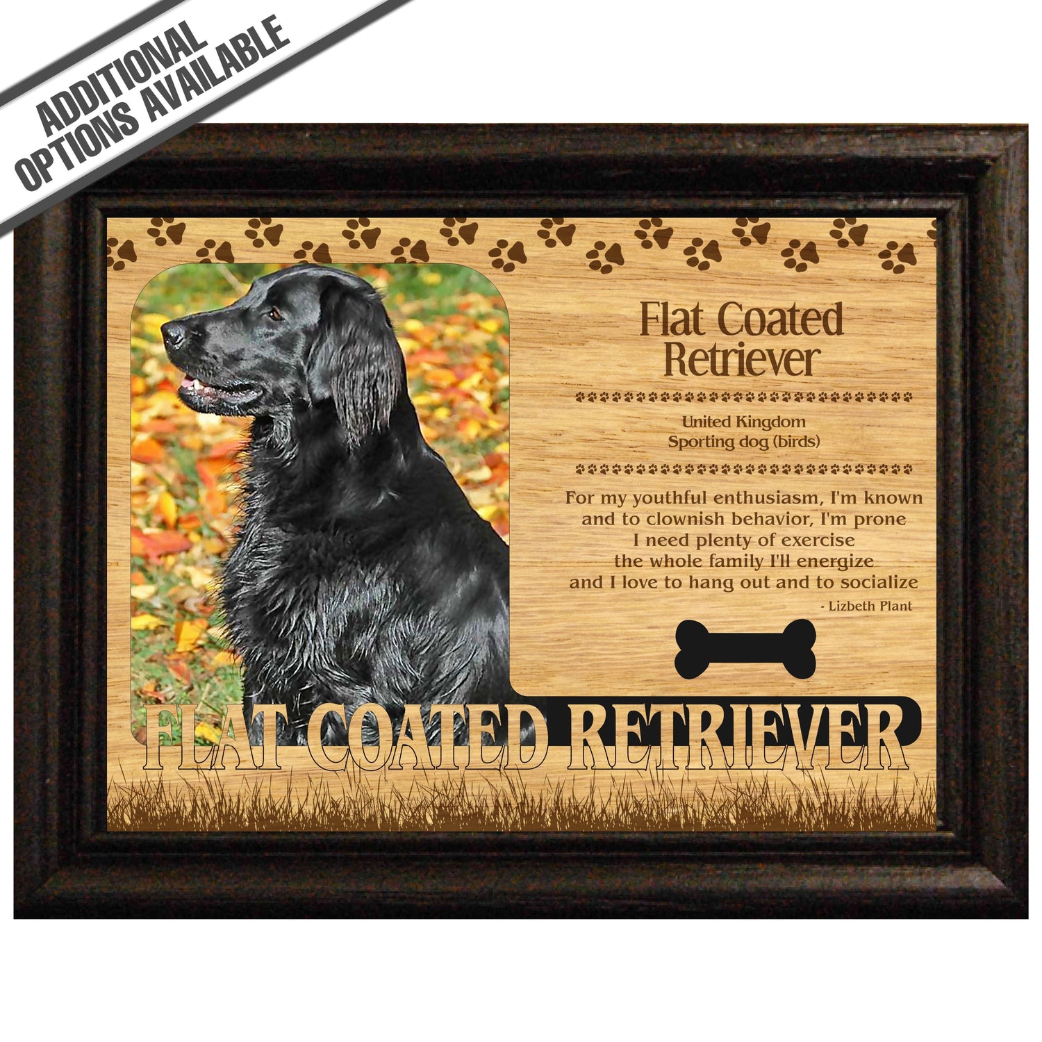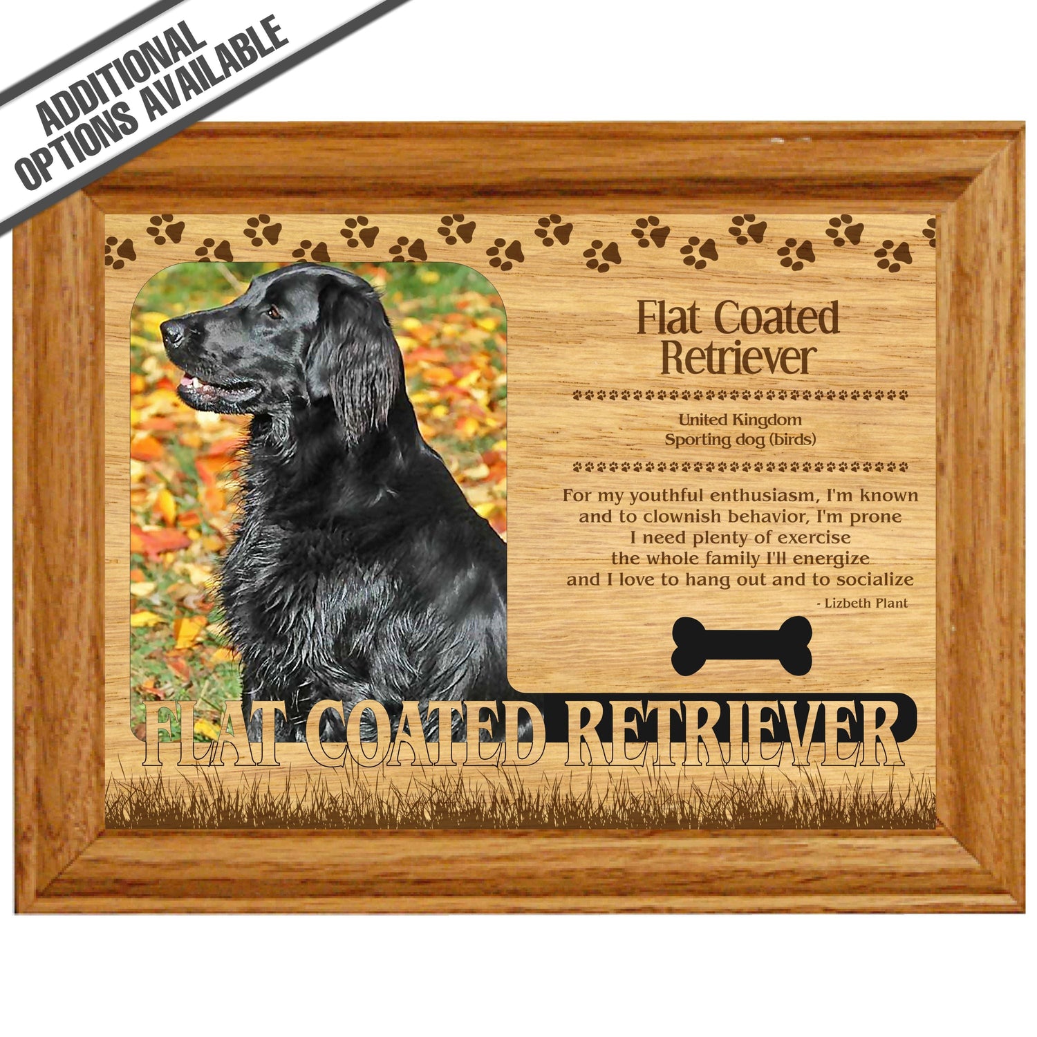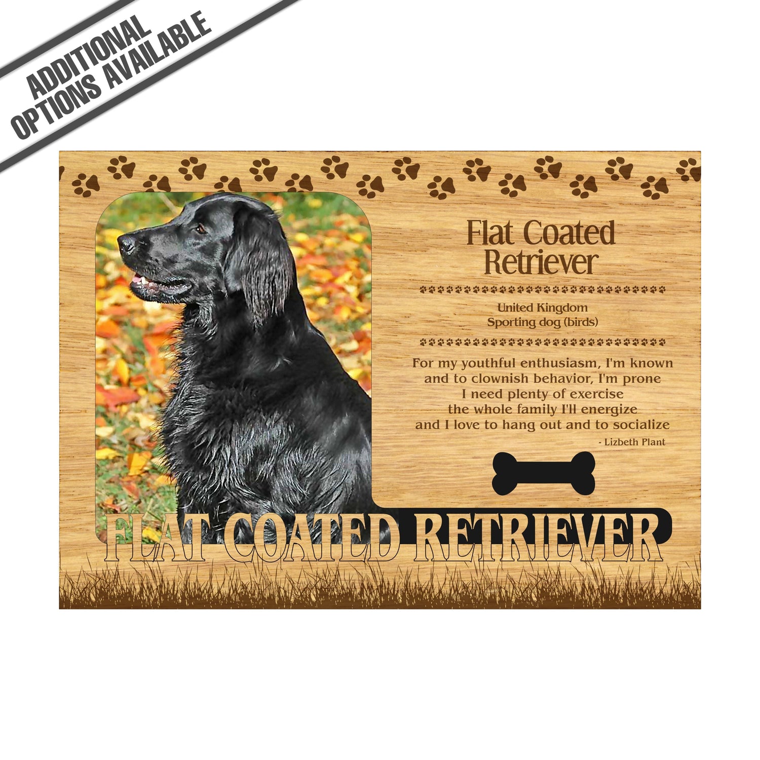 Celebrate the unique bond between you and your dog with our exquisite "Flat Coated Retriever" wooden photo frame. This beautifully crafted wooden frame showcases engraved paw print, capturing the essence of your furry friend in a stylish and heartwarming way. Perfect for displaying your favorite photo, this frame not only serves as a cherished keepsake but also highlights the playful and loyal personality traits of the Flat Coated Retriever. A thoughtful gift for dog lovers, it adds a personal touch to any home decor while honoring the love and companionship of your pet. Our FrameWorks magnetic mattes are the best way to accentuate any picture. Prefect for a fridge, locker, file cabinet and more, with a strong magnetic backing. Our FrameWorks material is lightweight making it a great souvenir to pack or mail.