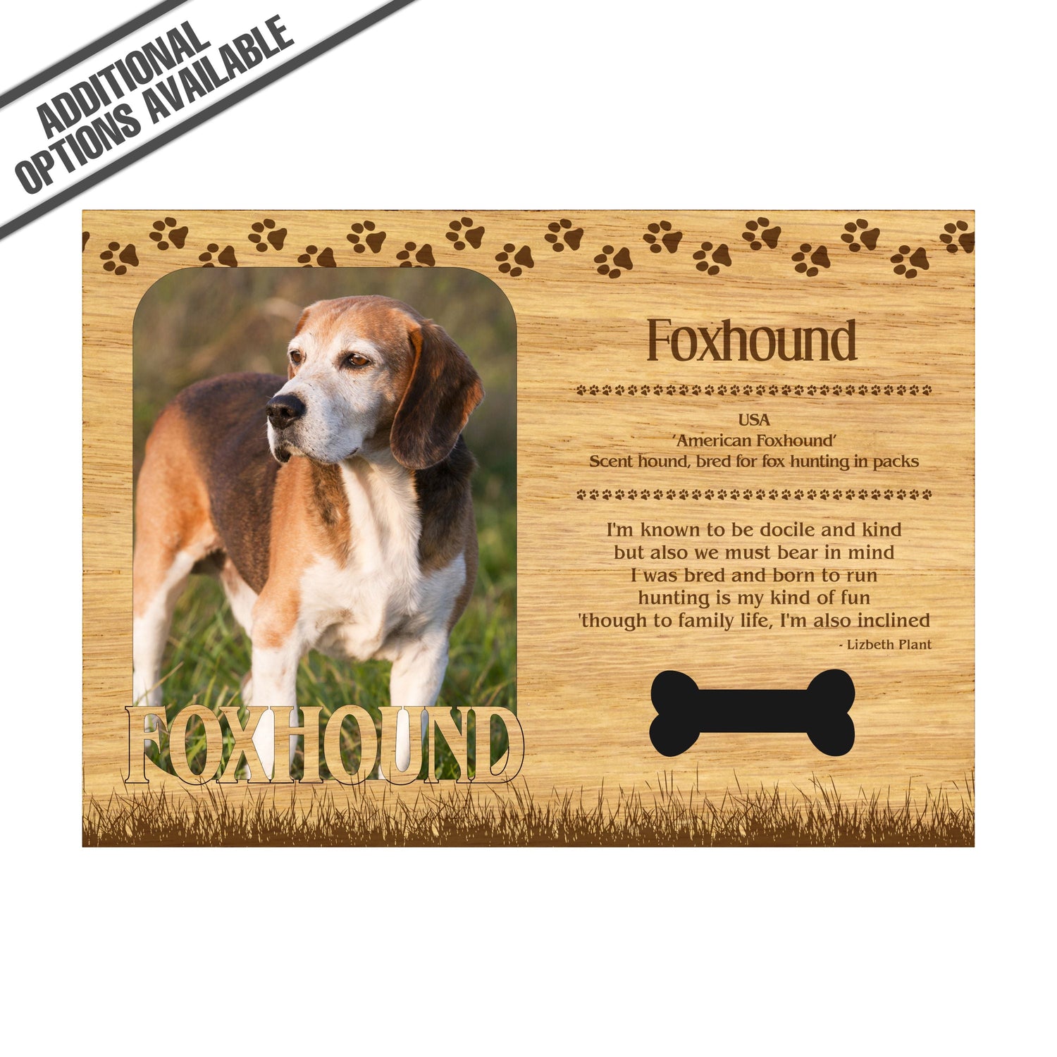 Celebrate the unique bond between you and your dog with our exquisite "Foxhound" wooden photo frame. This beautifully crafted wooden frame showcases engraved paw print, capturing the essence of your furry friend in a stylish and heartwarming way. Perfect for displaying your favorite photo, this frame not only serves as a cherished keepsake but also highlights the playful and loyal personality traits of the Foxhound. A thoughtful gift for dog lovers, it adds a personal touch to any home decor while honoring the love and companionship of your pet. Our FrameWorks magnetic mattes are the best way to accentuate any picture. Prefect for a fridge, locker, file cabinet and more, with a strong magnetic backing. Our FrameWorks material is lightweight making it a great souvenir to pack or mail.