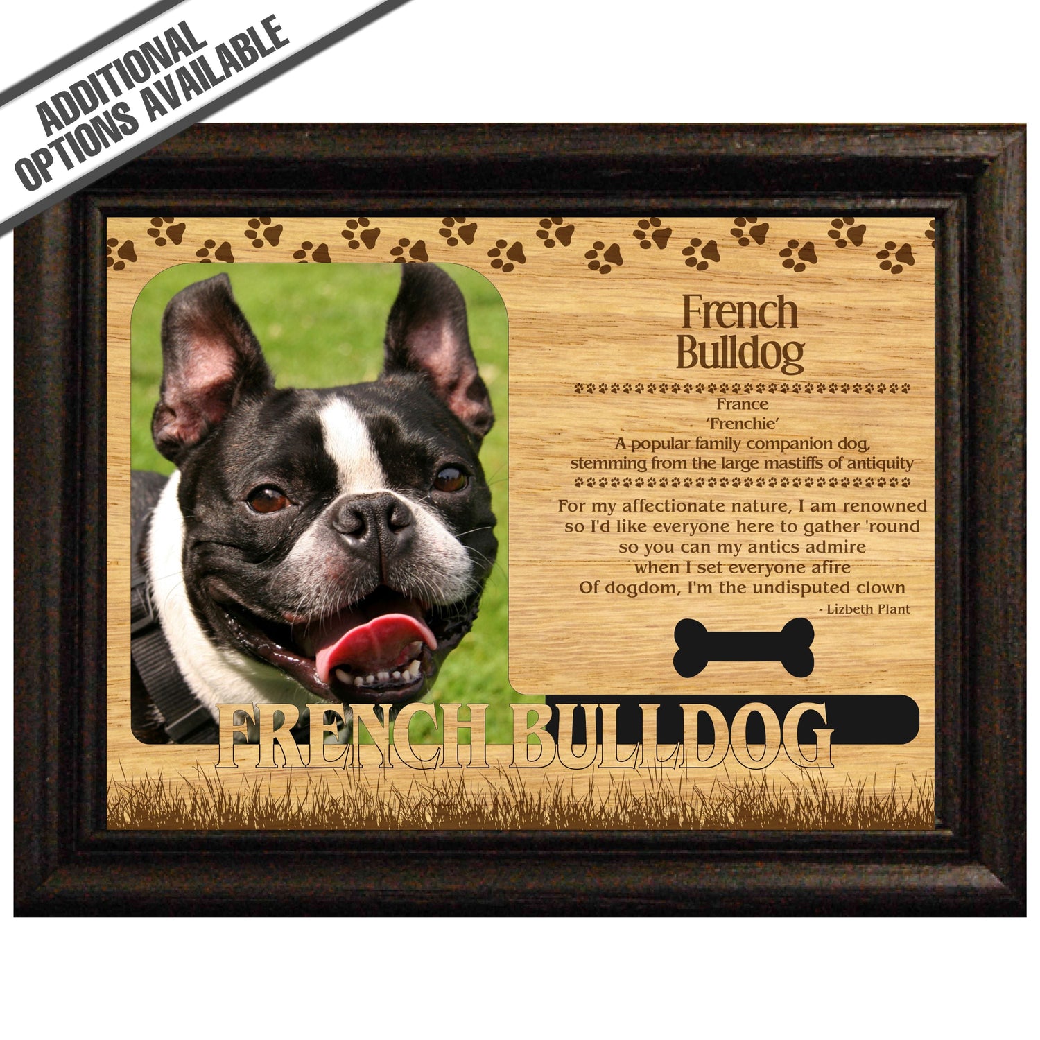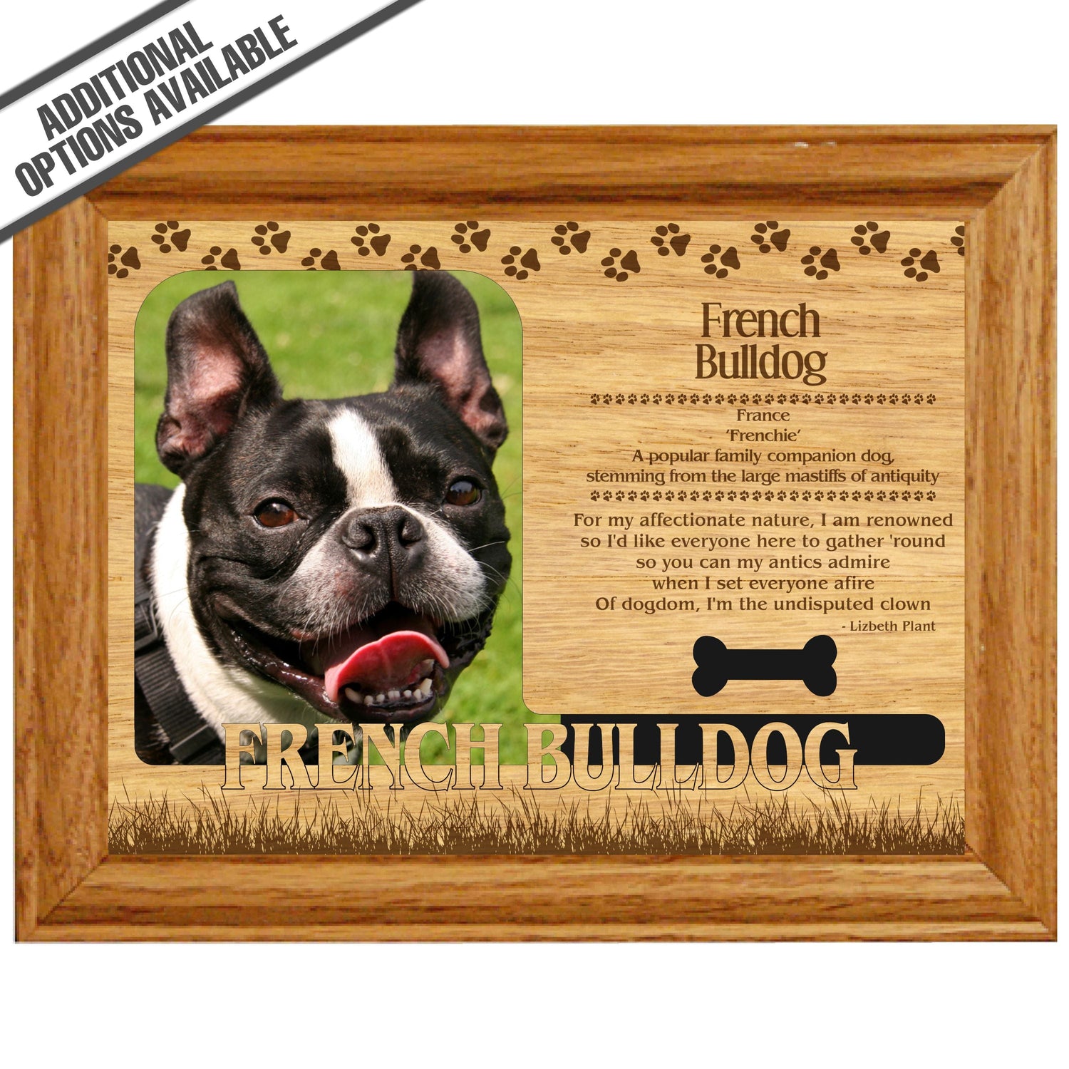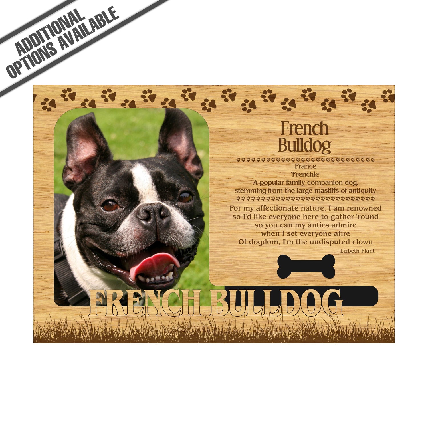 Celebrate the unique bond between you and your dog with our exquisite "French Bulldog" wooden photo frame. This beautifully crafted wooden frame showcases engraved paw print, capturing the essence of your furry friend in a stylish and heartwarming way. Perfect for displaying your favorite photo, this frame not only serves as a cherished keepsake but also highlights the playful and loyal personality traits of the French Bulldog. A thoughtful gift for dog lovers, it adds a personal touch to any home decor while honoring the love and companionship of your pet. Our FrameWorks magnetic mattes are the best way to accentuate any picture. Prefect for a fridge, locker, file cabinet and more, with a strong magnetic backing. Our FrameWorks material is lightweight making it a great souvenir to pack or mail.