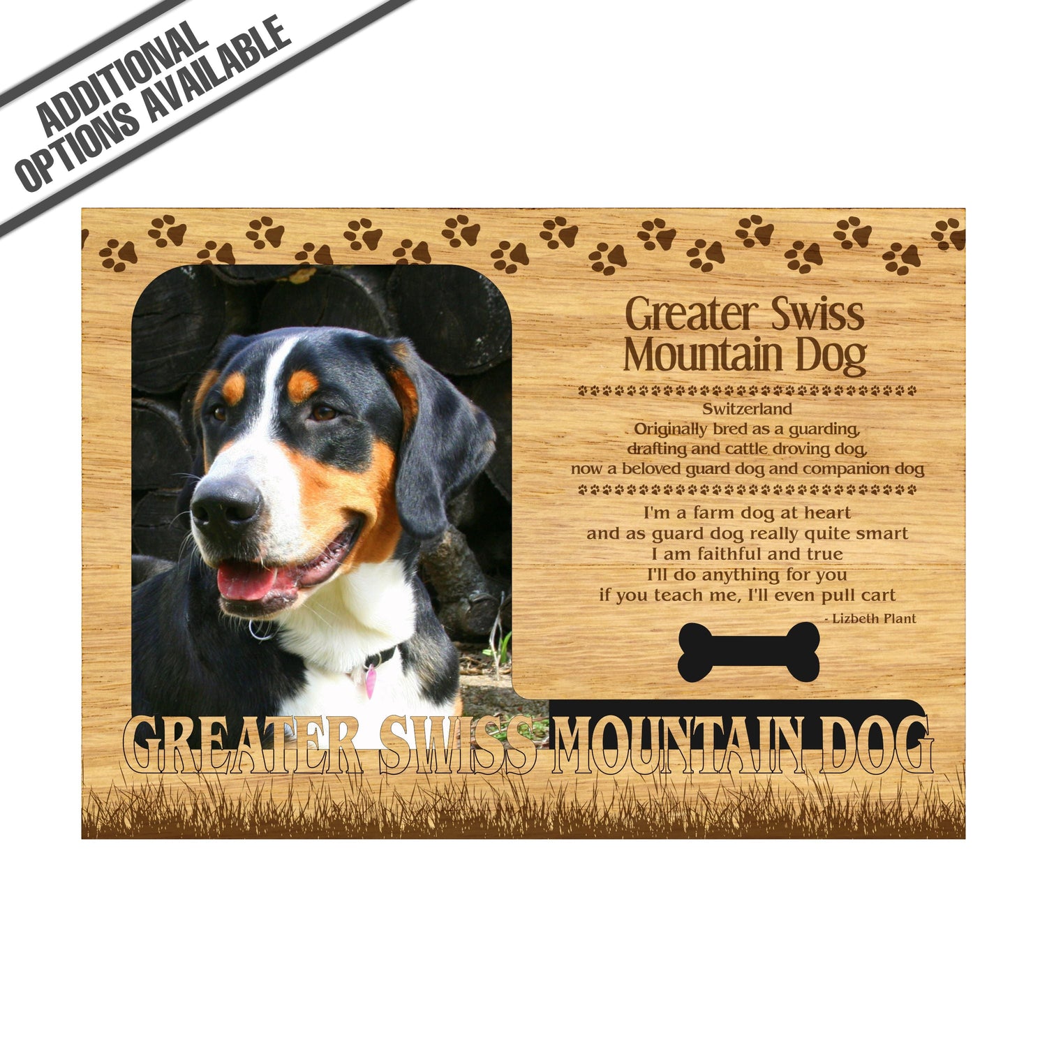 Celebrate the unique bond between you and your dog with our exquisite "Greater Swiss Mountain Dog" wooden photo frame. This beautifully crafted wooden frame showcases engraved paw print, capturing the essence of your furry friend in a stylish and heartwarming way. Perfect for displaying your favorite photo, this frame not only serves as a cherished keepsake but also highlights the playful and loyal personality traits of the Greater Swiss Mountain Dog. A thoughtful gift for dog lovers, it adds a personal touch to any home decor while honoring the love and companionship of your pet. Our FrameWorks magnetic mattes are the best way to accentuate any picture. Prefect for a fridge, locker, file cabinet and more, with a strong magnetic backing. Our FrameWorks material is lightweight making it a great souvenir to pack or mail.