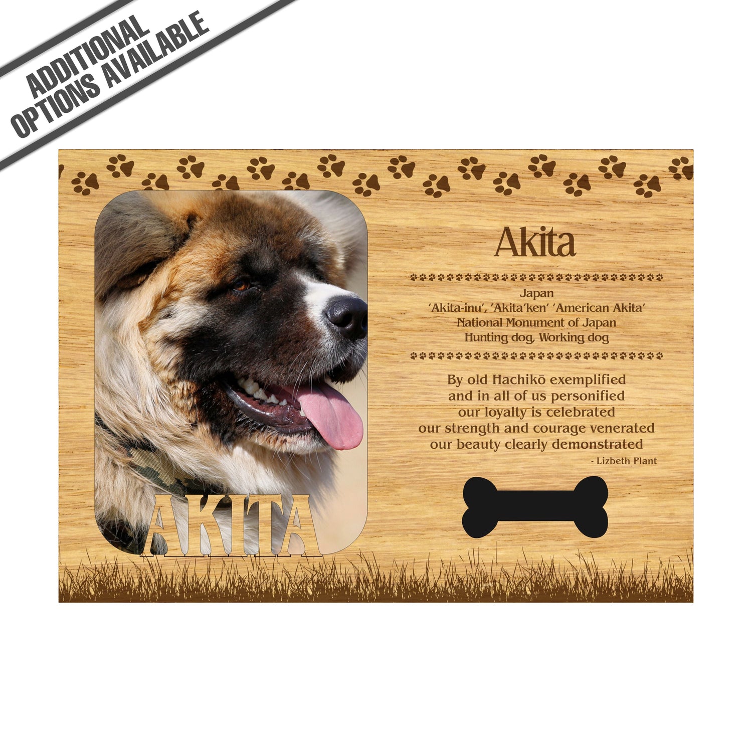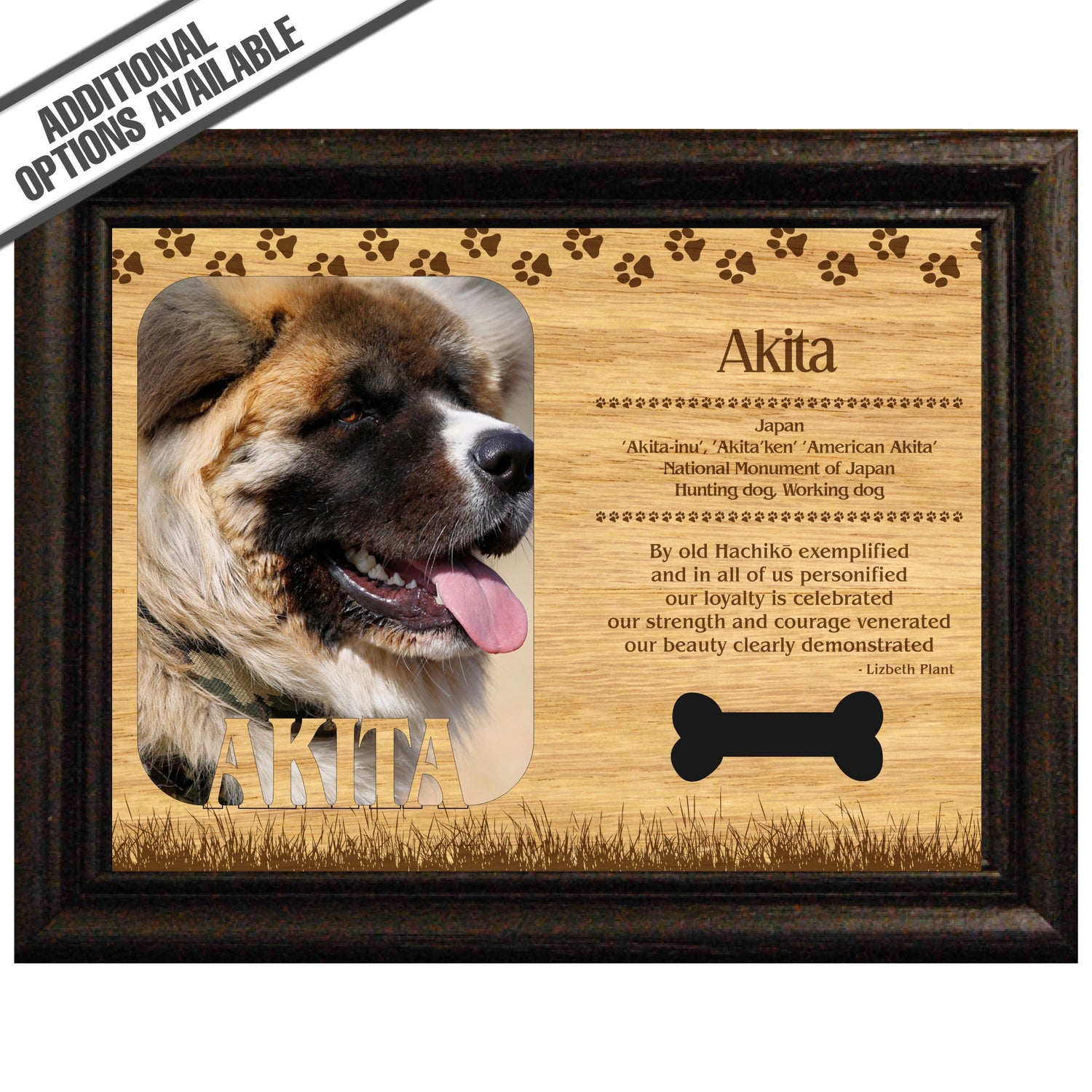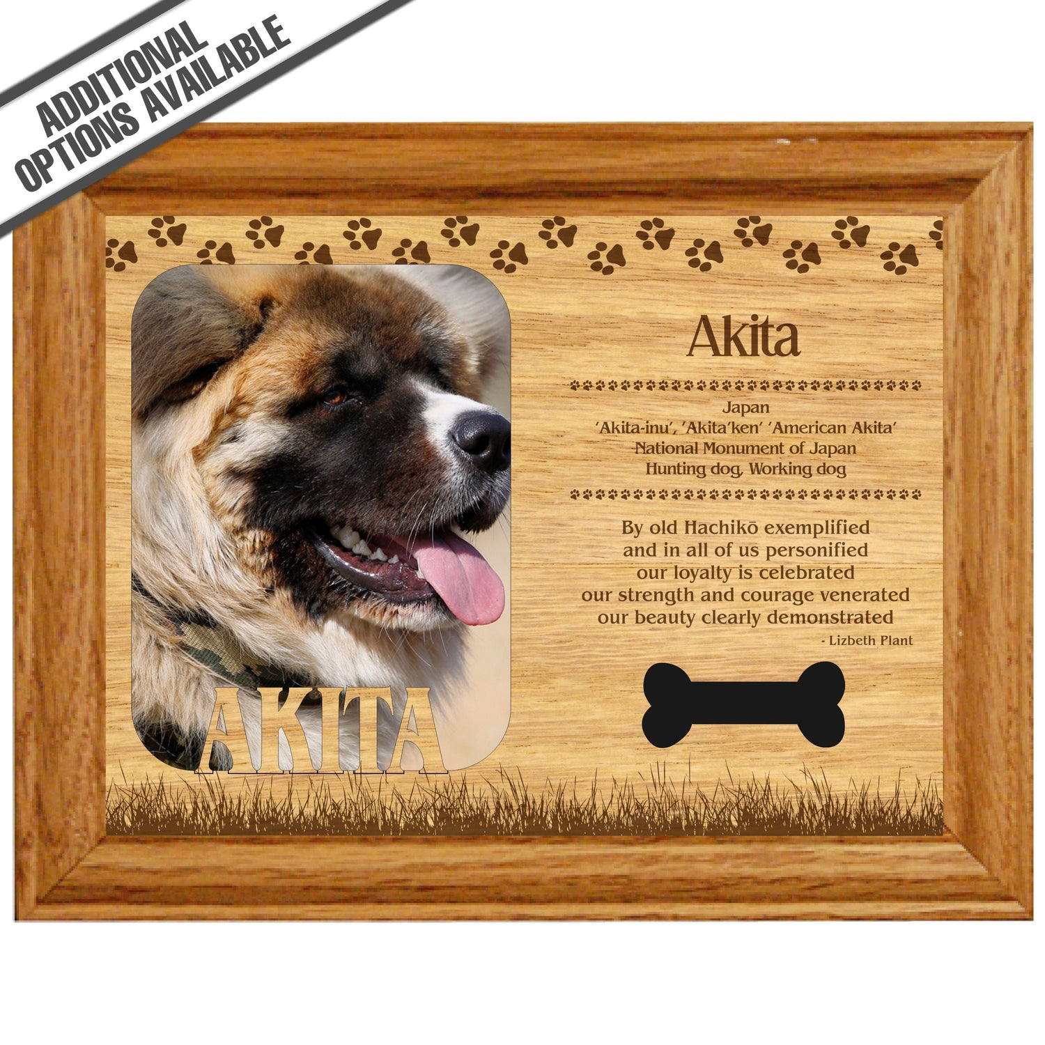 Celebrate the unique bond between you and your dog with our exquisite "Akita" wooden photo frame. This beautifully crafted wooden frame showcases engraved paw print, capturing the essence of your furry friend in a stylish and heartwarming way. Perfect for displaying your favorite photo, this frame not only serves as a cherished keepsake but also highlights the playful and loyal personality traits of the Akita. A thoughtful gift for dog lovers, it adds a personal touch to any home decor while honoring the love and companionship of your pet. Our FrameWorks magnetic mattes are the best way to accentuate any picture. Prefect for a fridge, locker, file cabinet and more, with a strong magnetic backing. Our FrameWorks material is lightweight making it a great souvenir to pack or mail.