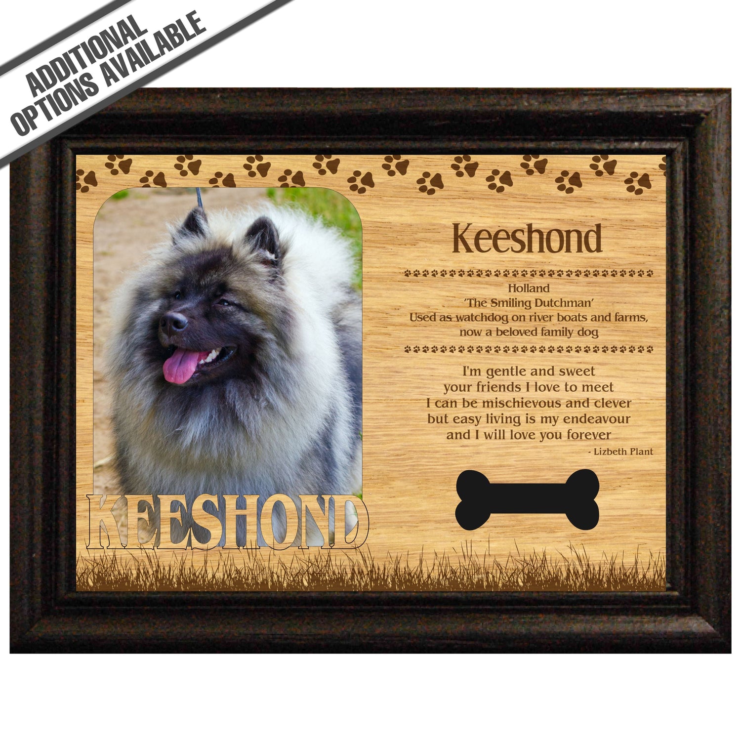 Celebrate the unique bond between you and your dog with our exquisite "Keeshond" wooden photo frame. This beautifully crafted wooden frame showcases engraved paw print, capturing the essence of your furry friend in a stylish and heartwarming way. Perfect for displaying your favorite photo, this frame not only serves as a cherished keepsake but also highlights the playful and loyal personality traits of the Keeshond. A thoughtful gift for dog lovers, it adds a personal touch to any home decor while honoring the love and companionship of your pet. Our FrameWorks magnetic mattes are the best way to accentuate any picture. Prefect for a fridge, locker, file cabinet and more, with a strong magnetic backing. Our FrameWorks material is lightweight making it a great souvenir to pack or mail.
